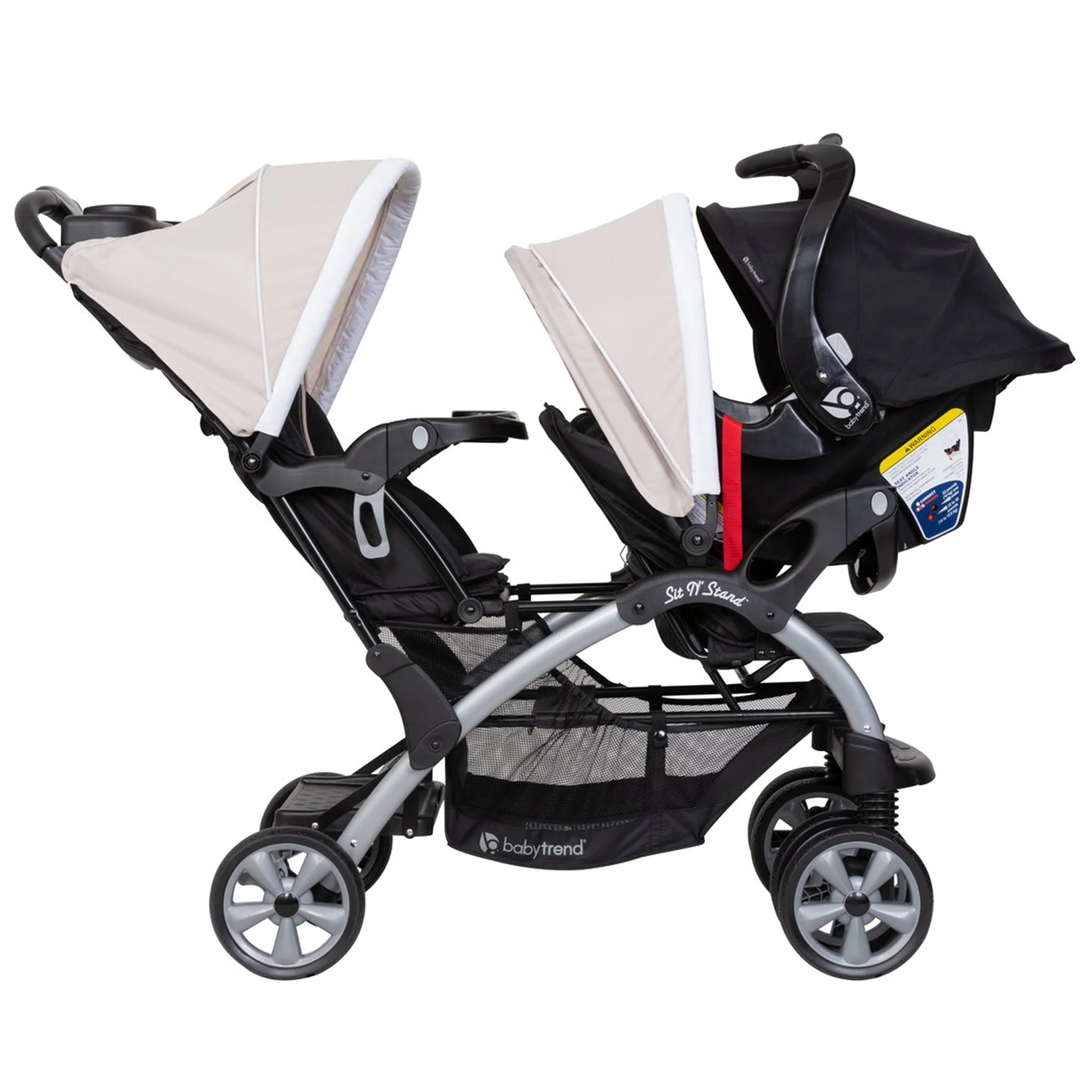 • Baby Trend Sit N Stand Baby Double Stroller and 2 Infant Car Seat Combo, Khaki