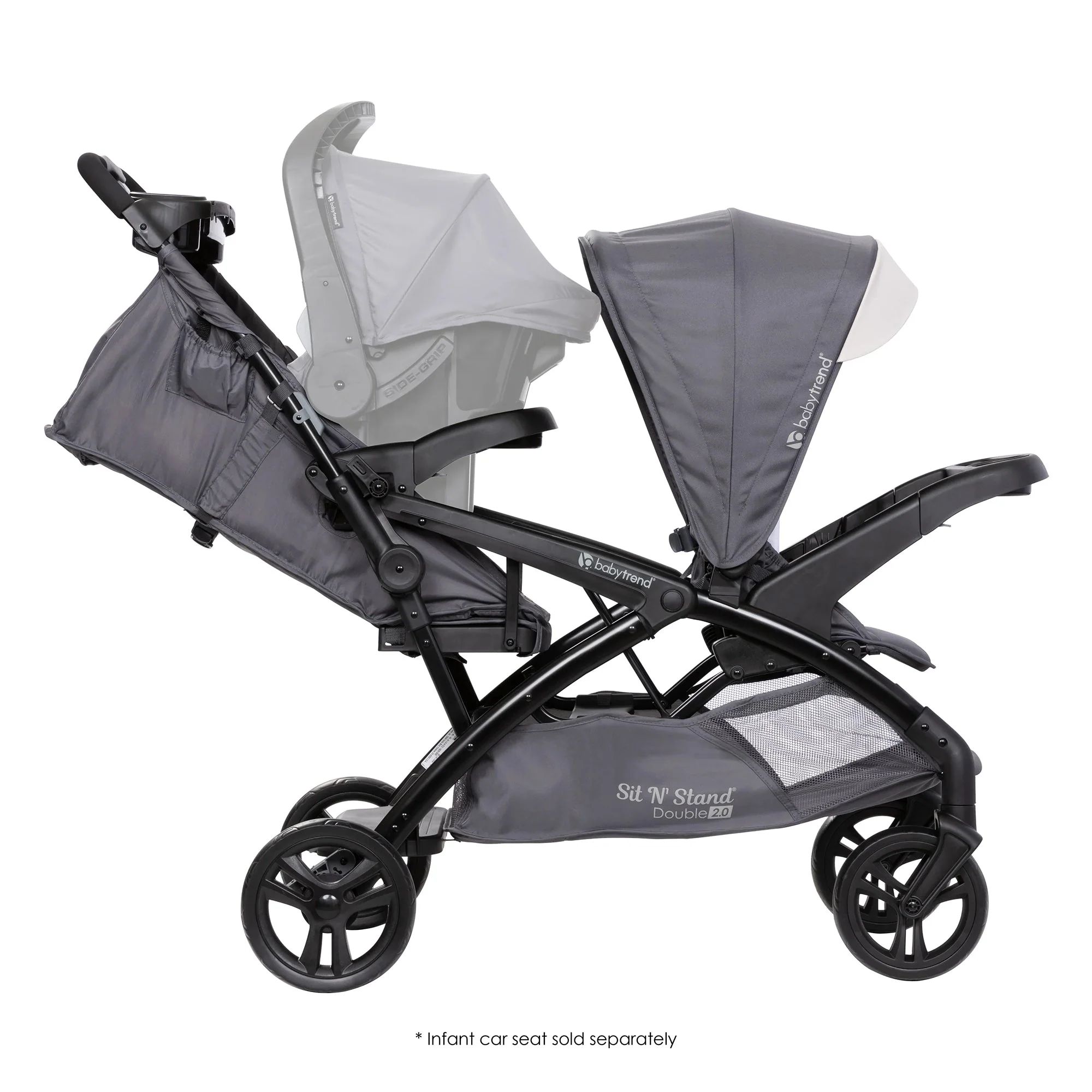 • Children can sit in the front and rear seats of the stroller or stand on the rear platform; Compatible baby trend car seats