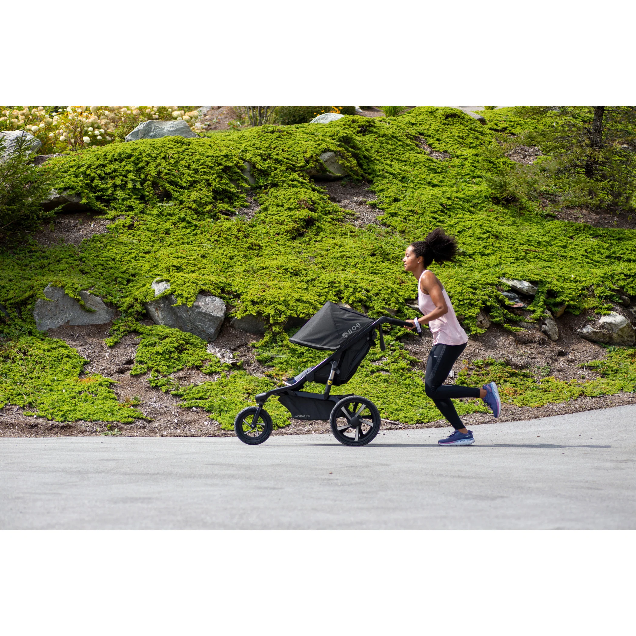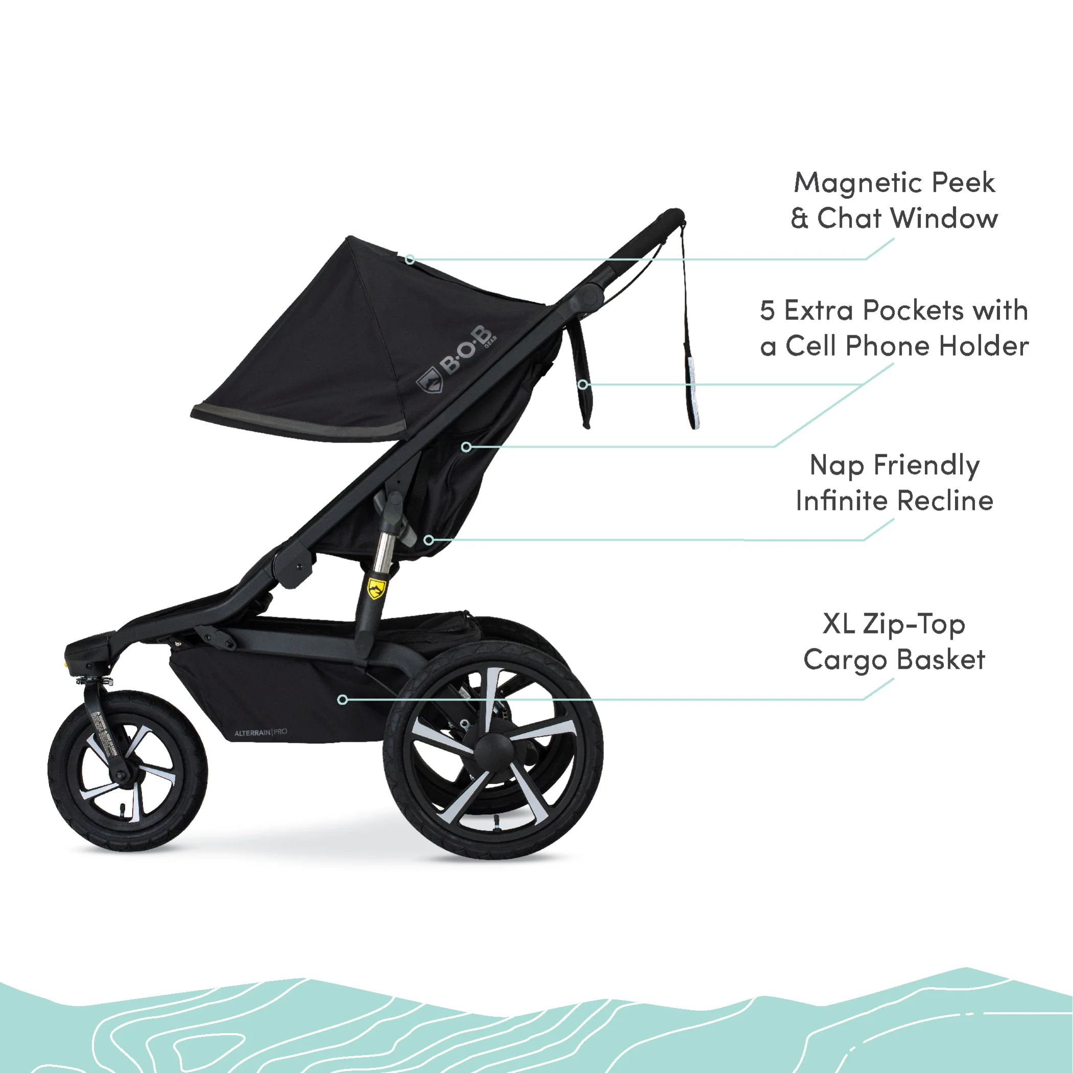The BOB Gear Alterrain Pro Jogging Stroller is ready to hit the ground running. With its sleek, sturdy frame featuring SmoothShoxâ„¢ suspension, ergonomic handbrake, and one-hand quick fold, you're ready for any adventure.