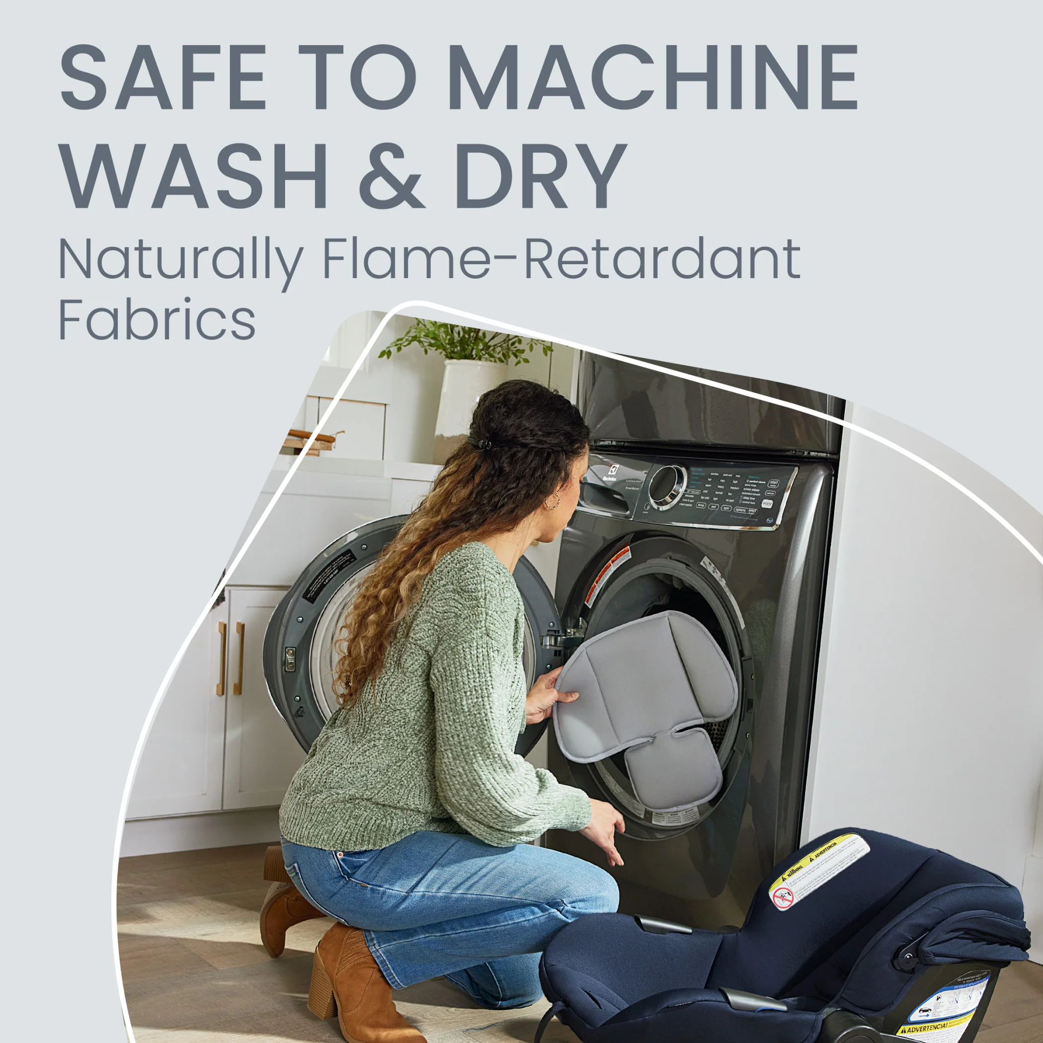 • MACHINE WASHABLE CAR SEAT COVER: The car seat features naturally flame-retardant fabrics with no added FR chemicals and comes with a washer and dryer-friendly cover for quick and easy cleanup