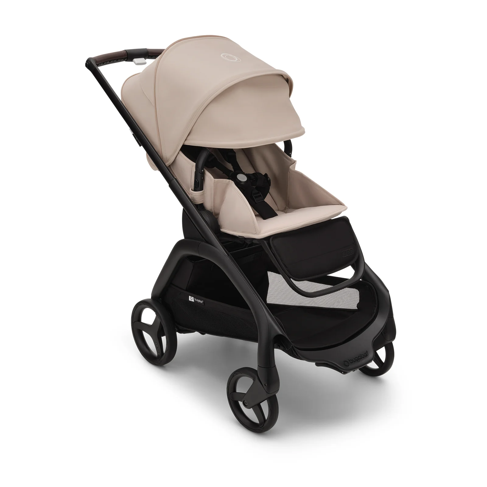 This full featured stroller was designed for practicality, with a flexible storage system to meet all your needs. The Bugaboo Dragonfly has an XL underseat basket that can hold up to 22 lbs. It also includes an expandable rear pocket that can attach to wherever you need it most on your stroller— rear, front or handlebar. When attached to the rear side of the stroller, you can even keep belongings inside when folded!