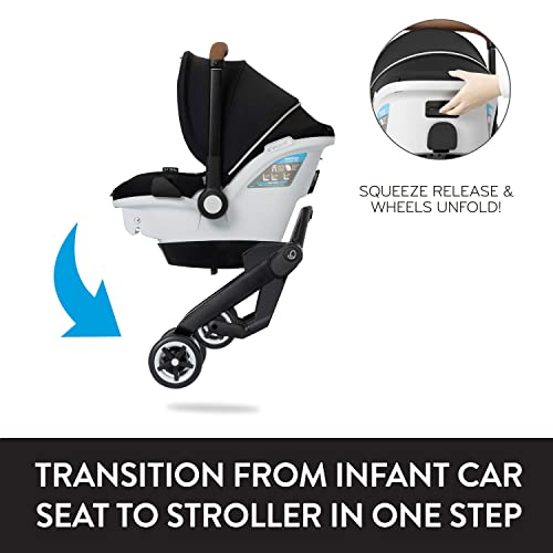 - TRANSITION FROM INFANT CAR SEAT TO STROLLER IN ONE STEP: Moves little one from backseat to street in a heartbeat — this single piece of baby gear transforms from infant car seat to stroller and back again with ease; leave wheels in base for a lighter infant carrier