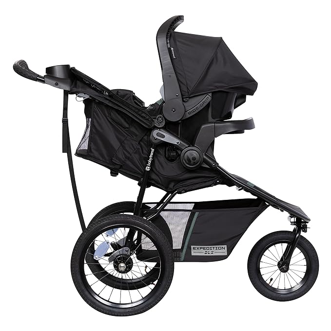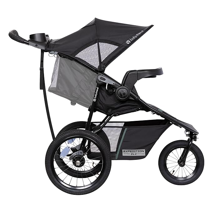 Jog in style with the Baby Trend Expedition DLX Jogger Travel System. Designed with style, safety features, and ease-of-use functions, this sporty jogger guarantees a smooth ride for you and your little one, no matter the destination. Equipped with an adjustable canopy and a peek-a-boo window, this jogger also boasts a large storage basket for essential travel items, a parent tray with 2 cup holders, and a swing away child’s tray with 2 cup holders for drinks and snacks.