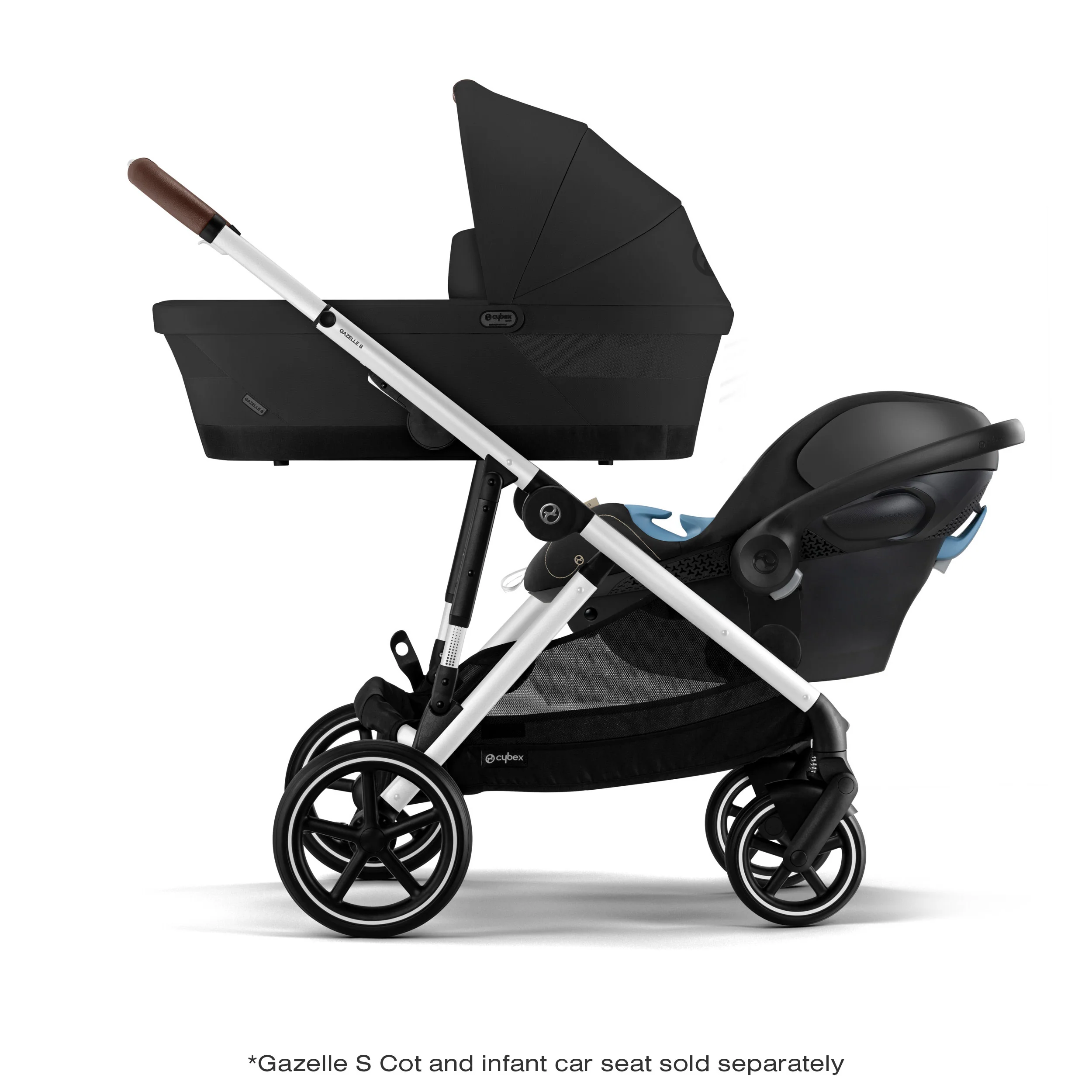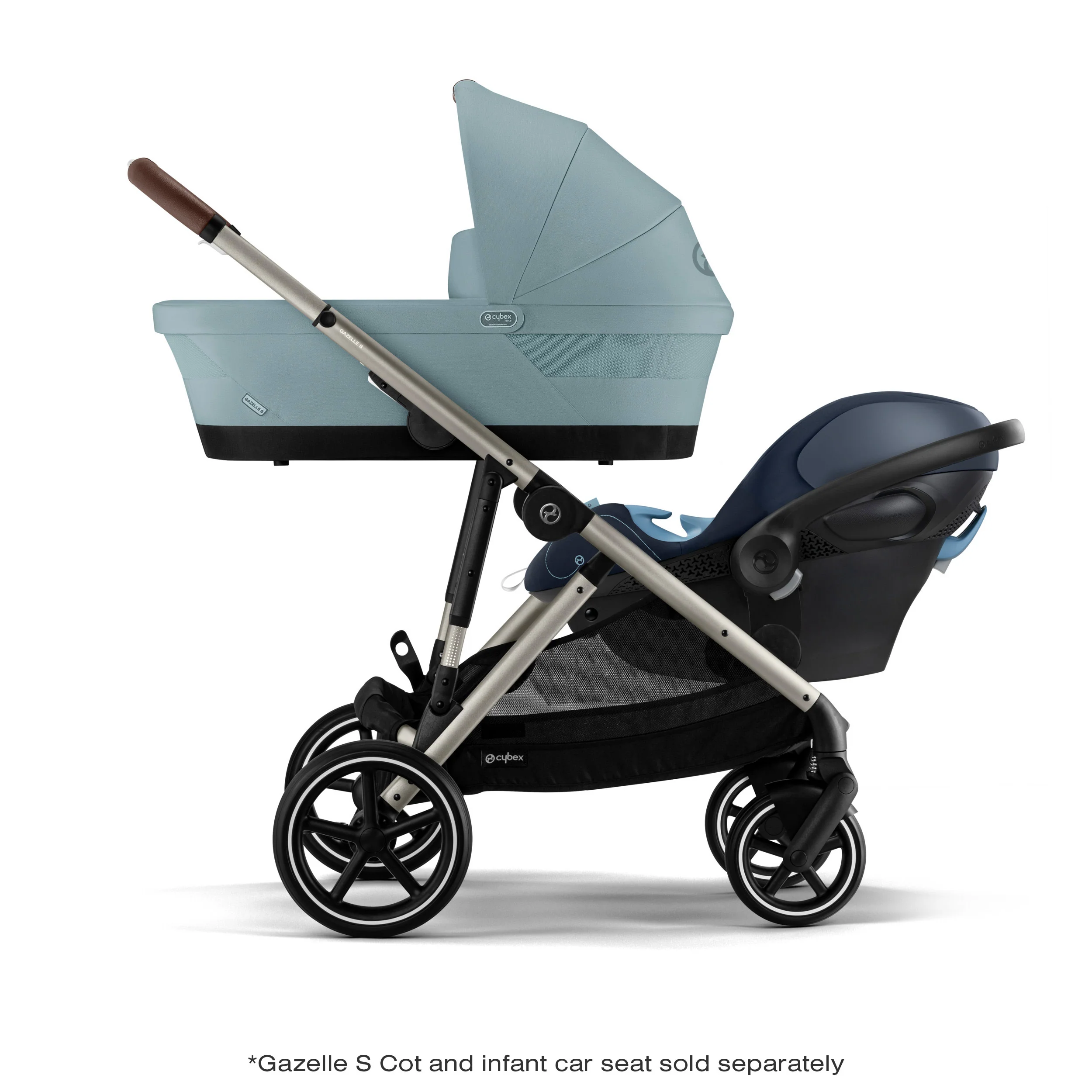 - Supports 20+ configurations using Gazelle S Seat units, Gazelle S Cots, CYBEX infant car seats or the removable Shopping Basket