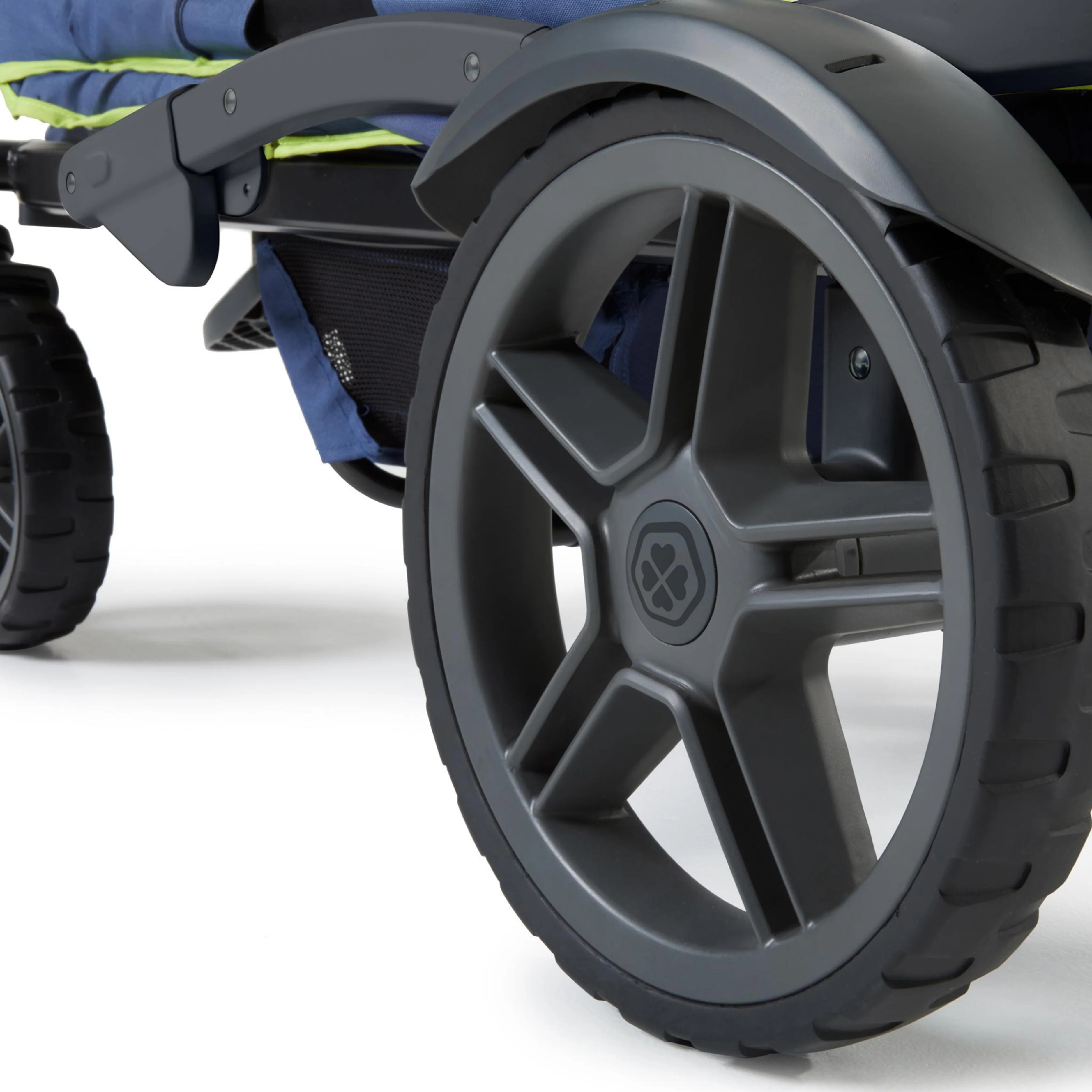 • Rugged all-terrain wheels & suspension for a smooth push & comfy ride