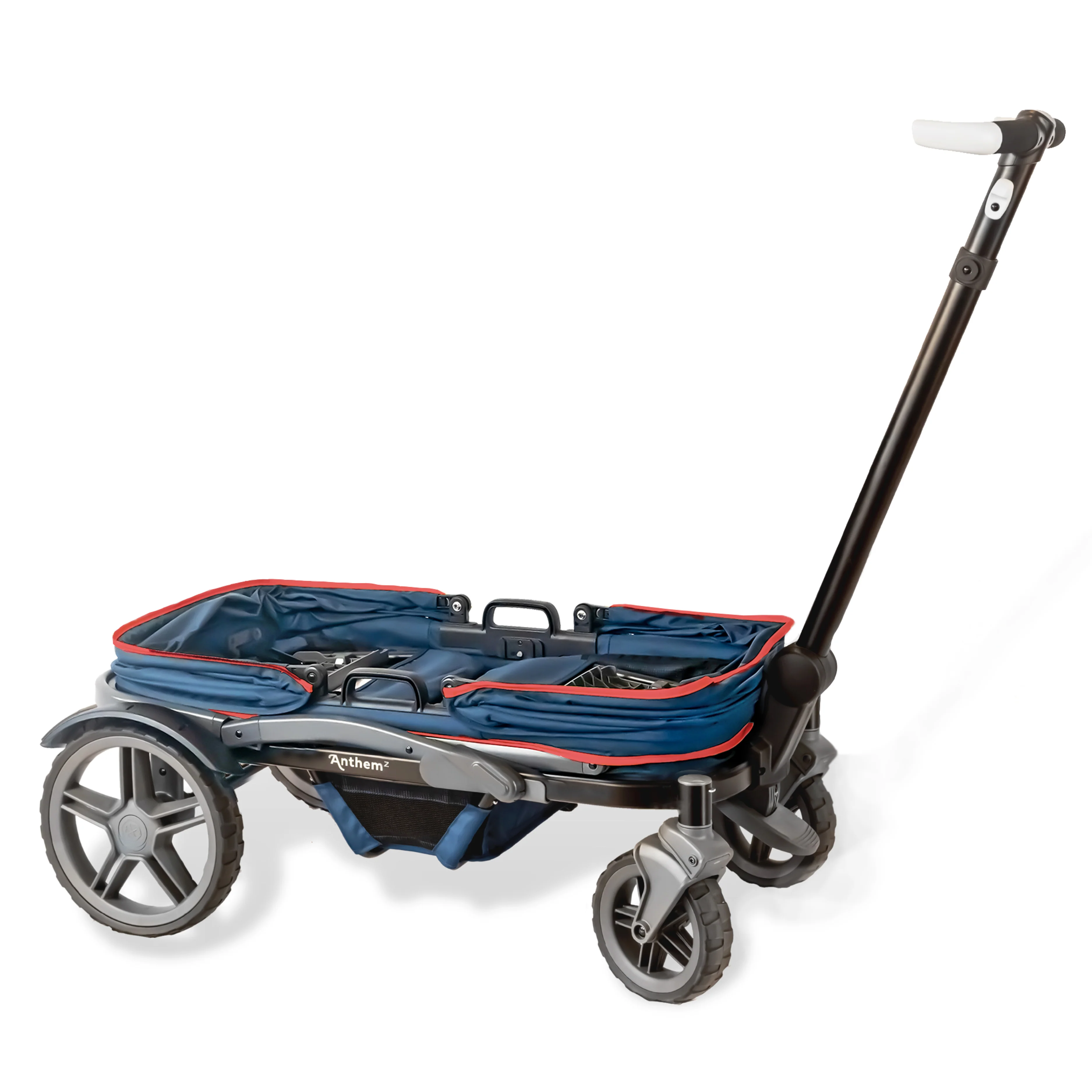 The essentials you need, and nothing you don't. It's the new Anthem Z™ All-Terrain Stroller Wagon. This stroller wagon is a practical option for getting around with your little ones. It's equipped with rugged wheels and a sturdy frame for tackling all types of terrain and comes with two XL canopies. The Anthem Z also folds flat for easy storage. Add on only the accessories that make sense for your family - sold separately. Easy to maneuver either pushing or pulling.