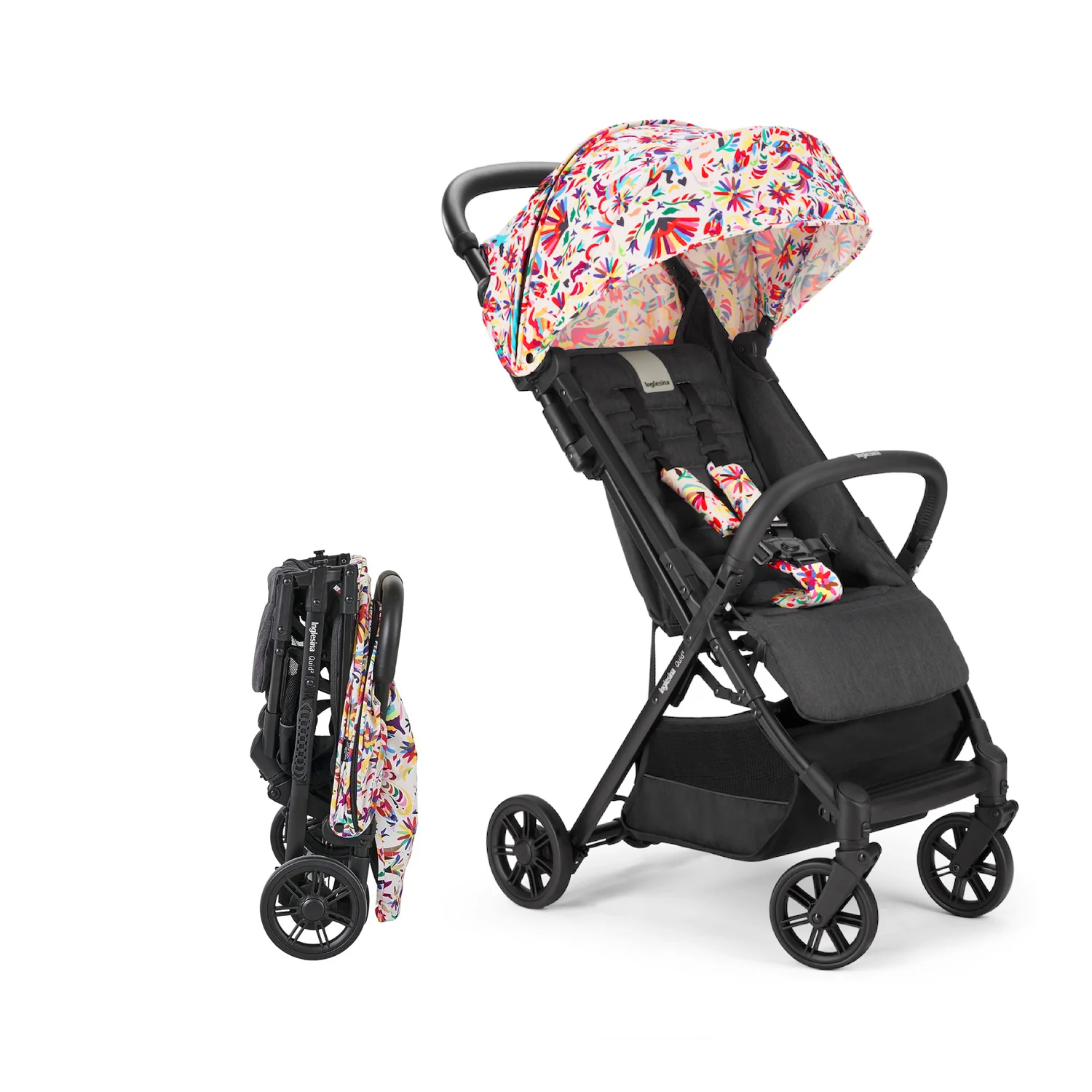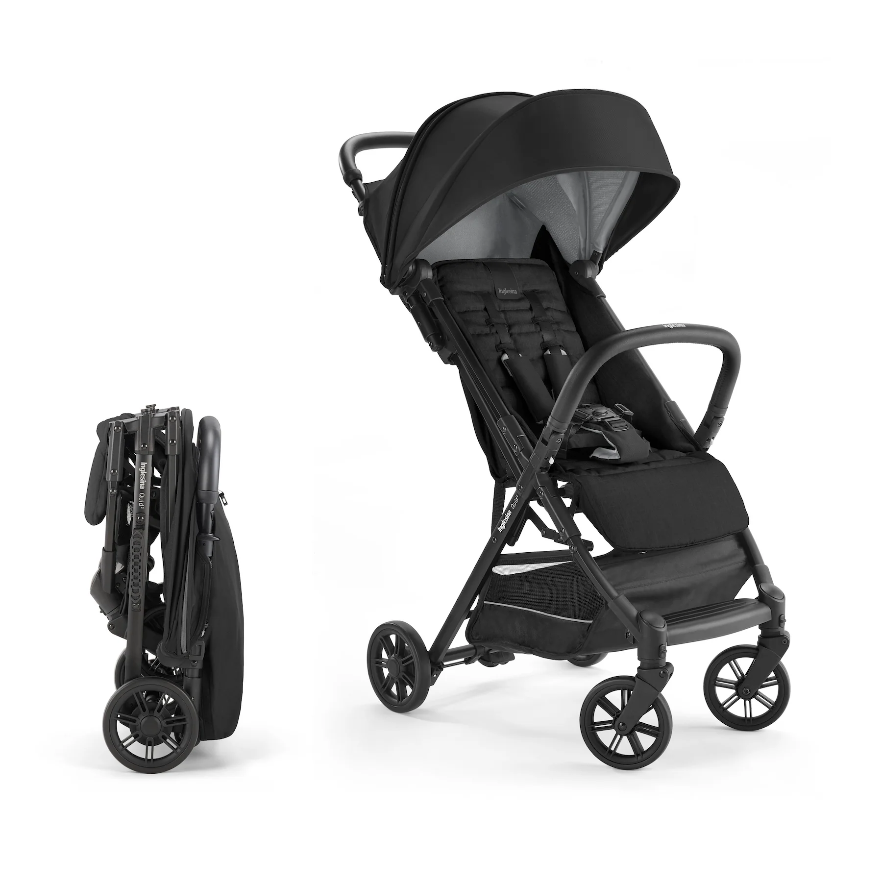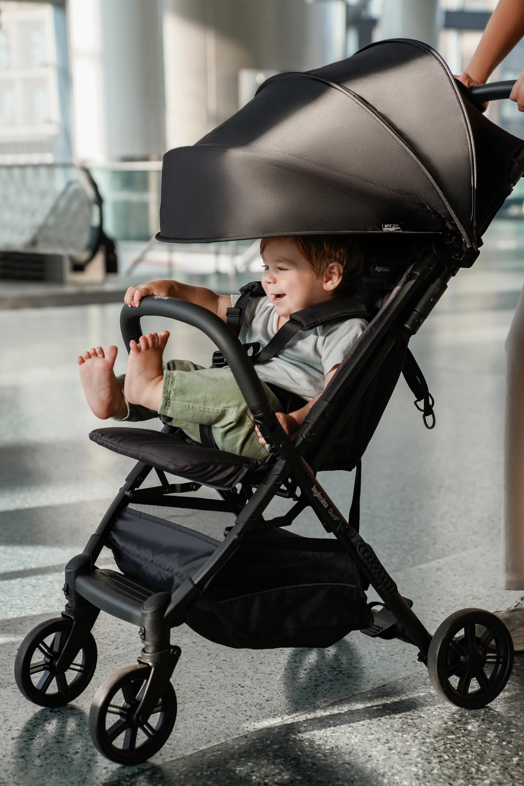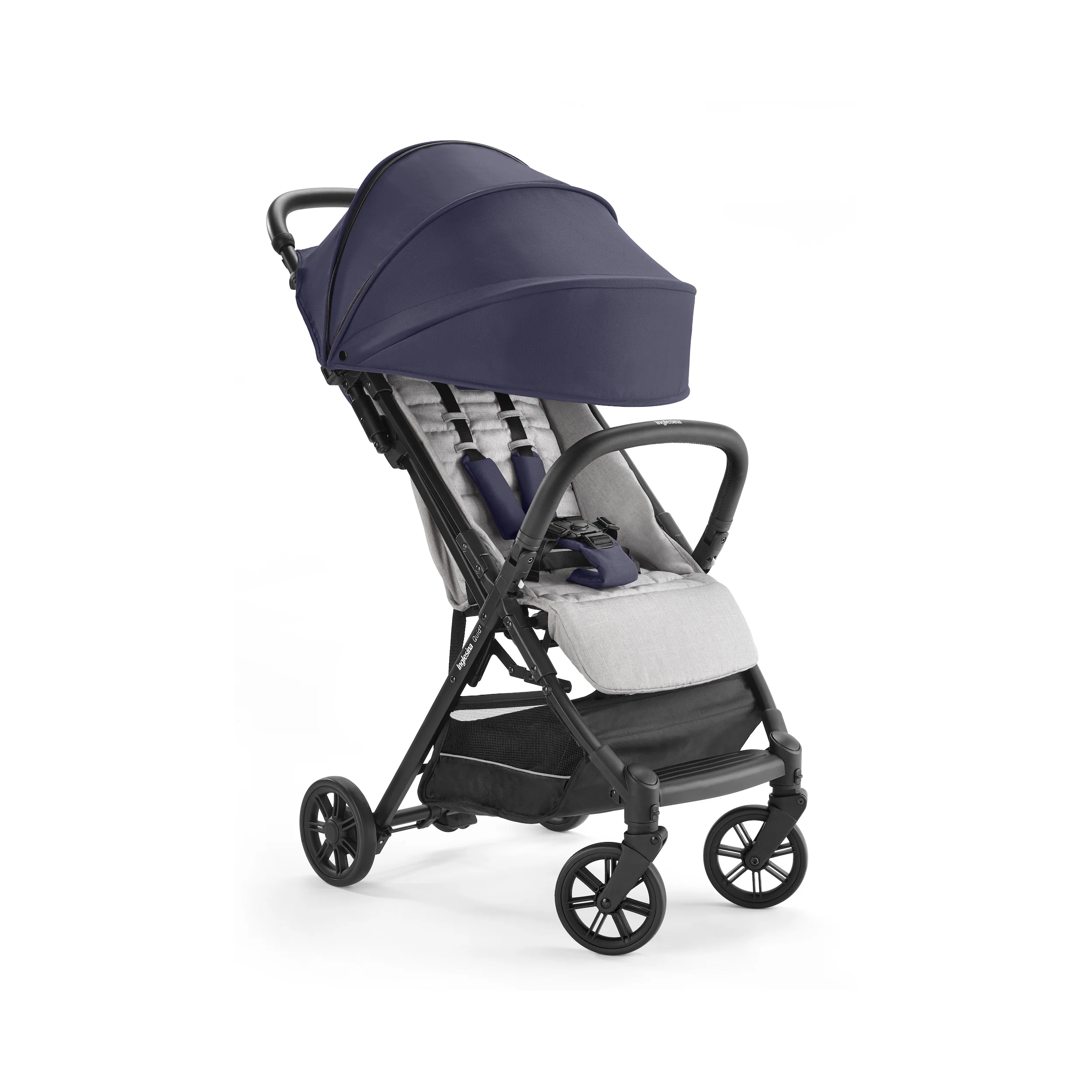Ready for boarding. The Quid stroller is the ultimate stroller for families on the go (at just 13lbs!). Maneuver city streets, local neighborhoods, or even airplane travel with an ultra-compact design. Quid stroller doesn’t compromise your baby’s comfort, thanks to multi-position recline, padded cushions and adjustable leg rest. Additional features include a large, extendable hood with Anti-UV treated fabric (UPF 50+); roll-up ventilation window, and peek-a-boo window in hood for added visibility; generous storage basket with reflective material for added safety; swivel, lockable front wheels suspensions for a smooth ride, and one-foot brake; 5-point safety harness; self-standing kickstand function for maximum hygiene. As all Inglesina products, the Quid stroller is free of harmful chemicals, such as regulated BPA, PFAs, lead, flame retardants, phthalates and others.