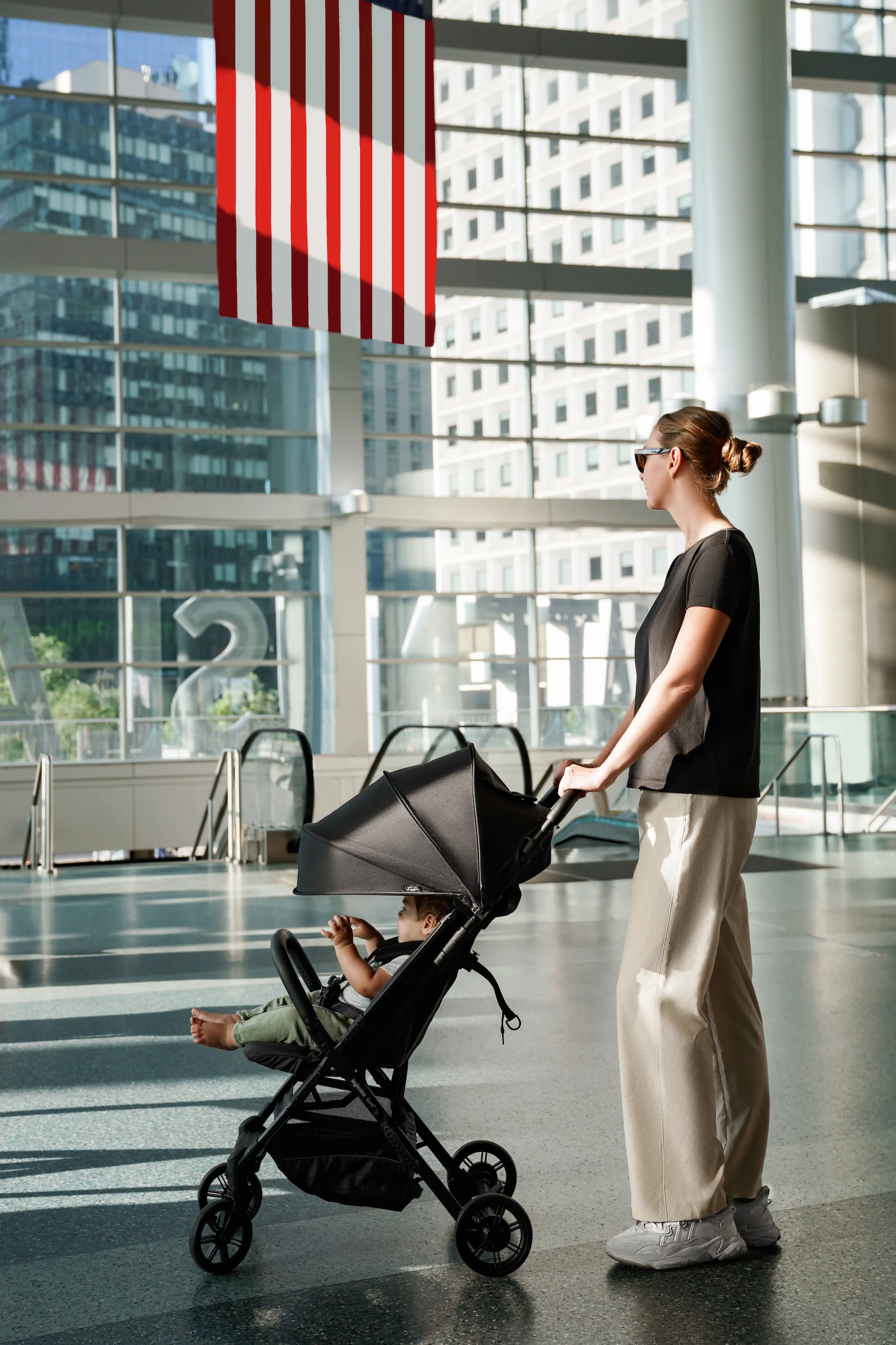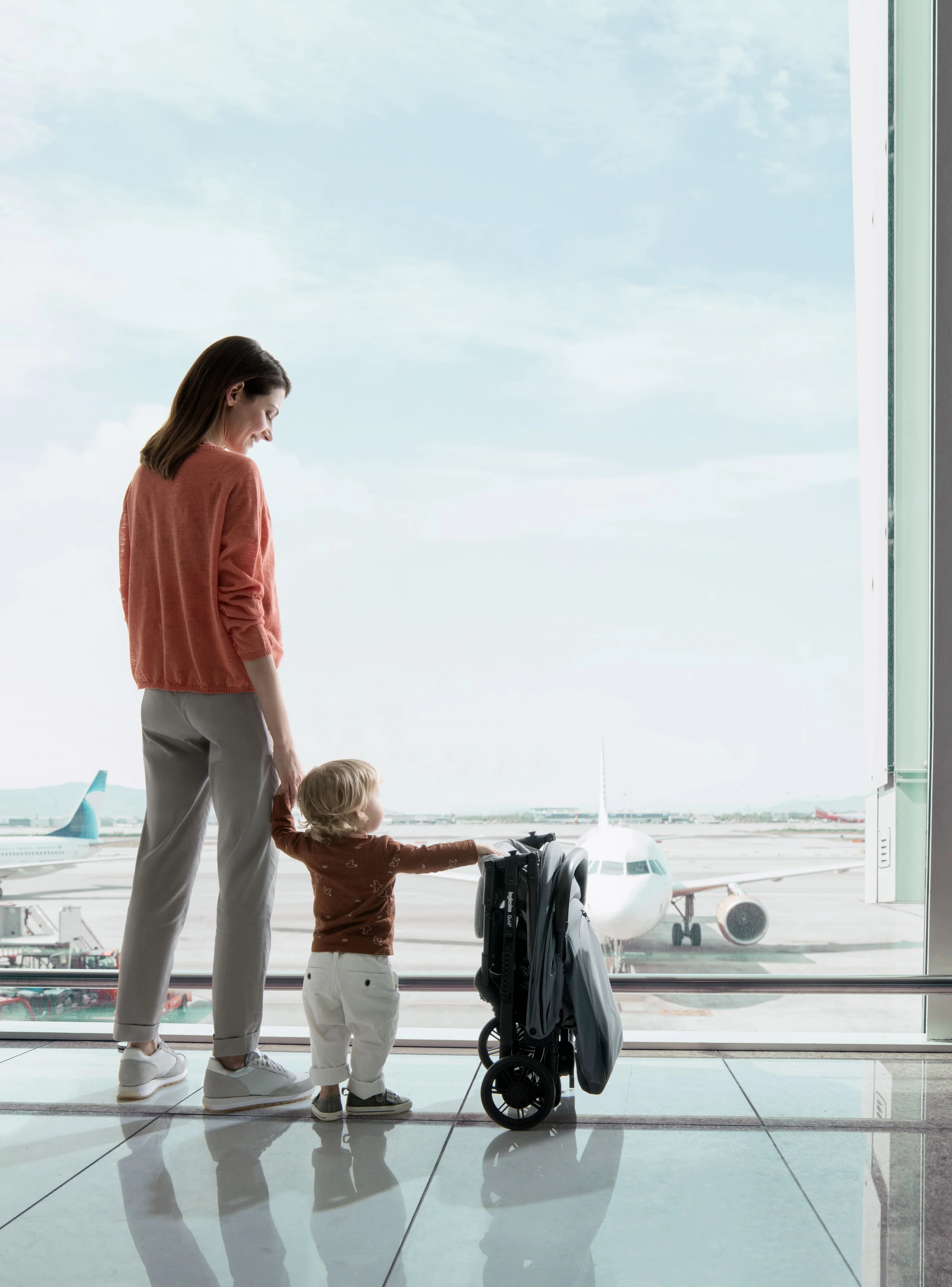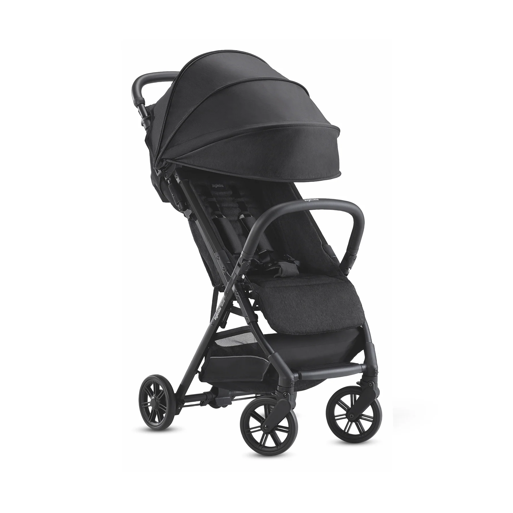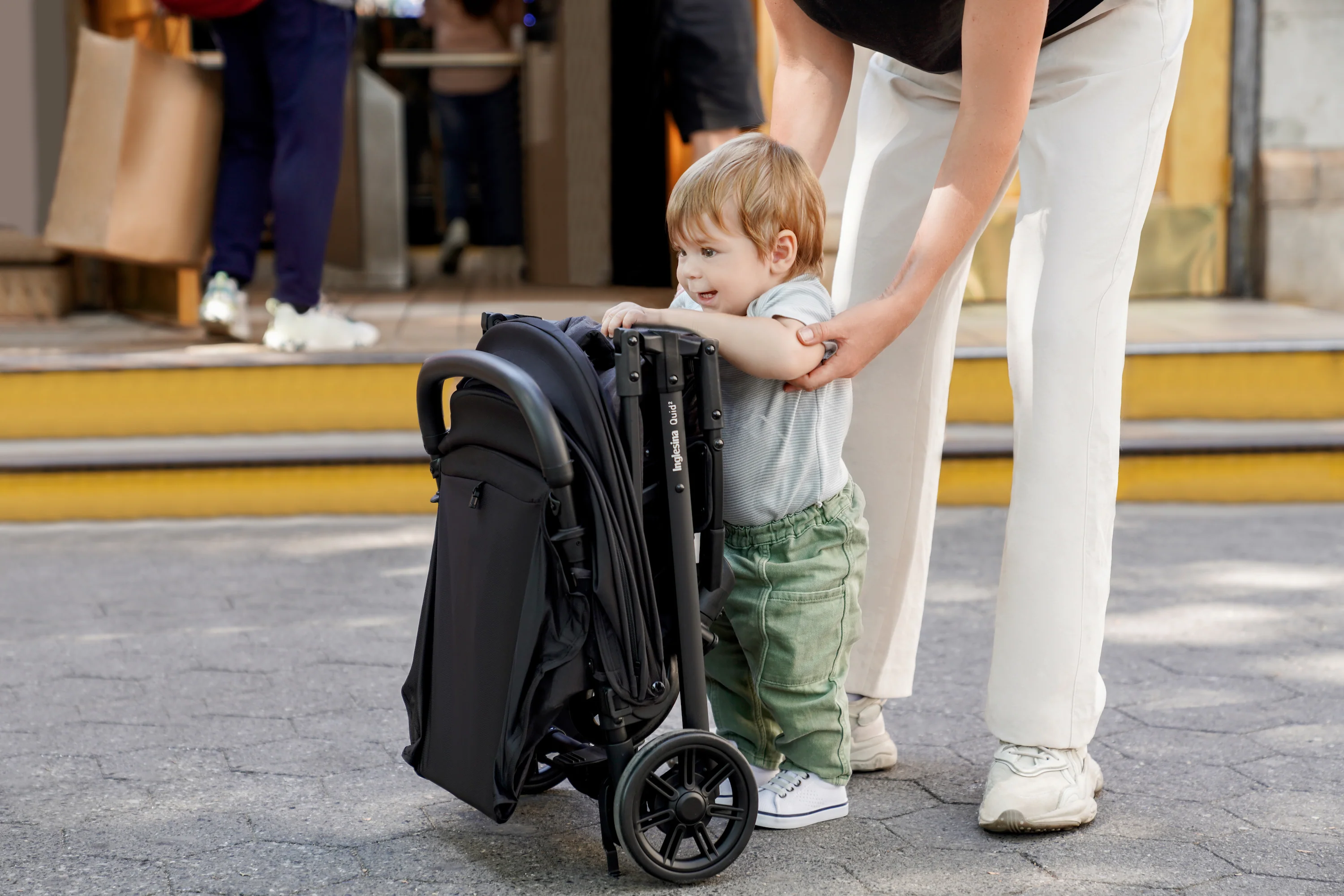 Ready for boarding. The Quid stroller is the ultimate stroller for families on the go (at just 13lbs!). Maneuver city streets, local neighborhoods, or even airplane travel with an ultra-compact design. Quid stroller doesn’t compromise your baby’s comfort, thanks to multi-position recline, padded cushions and adjustable leg rest. Additional features include a large, extendable hood with Anti-UV treated fabric (UPF 50+); roll-up ventilation window, and peek-a-boo window in hood for added visibility; generous storage basket with reflective material for added safety; swivel, lockable front wheels suspensions for a smooth ride, and one-foot brake; 5-point safety harness; self-standing kickstand function for maximum hygiene. As all Inglesina products, the Quid stroller is free of harmful chemicals, such as regulated BPA, PFAs, lead, flame retardants, phthalates and others.