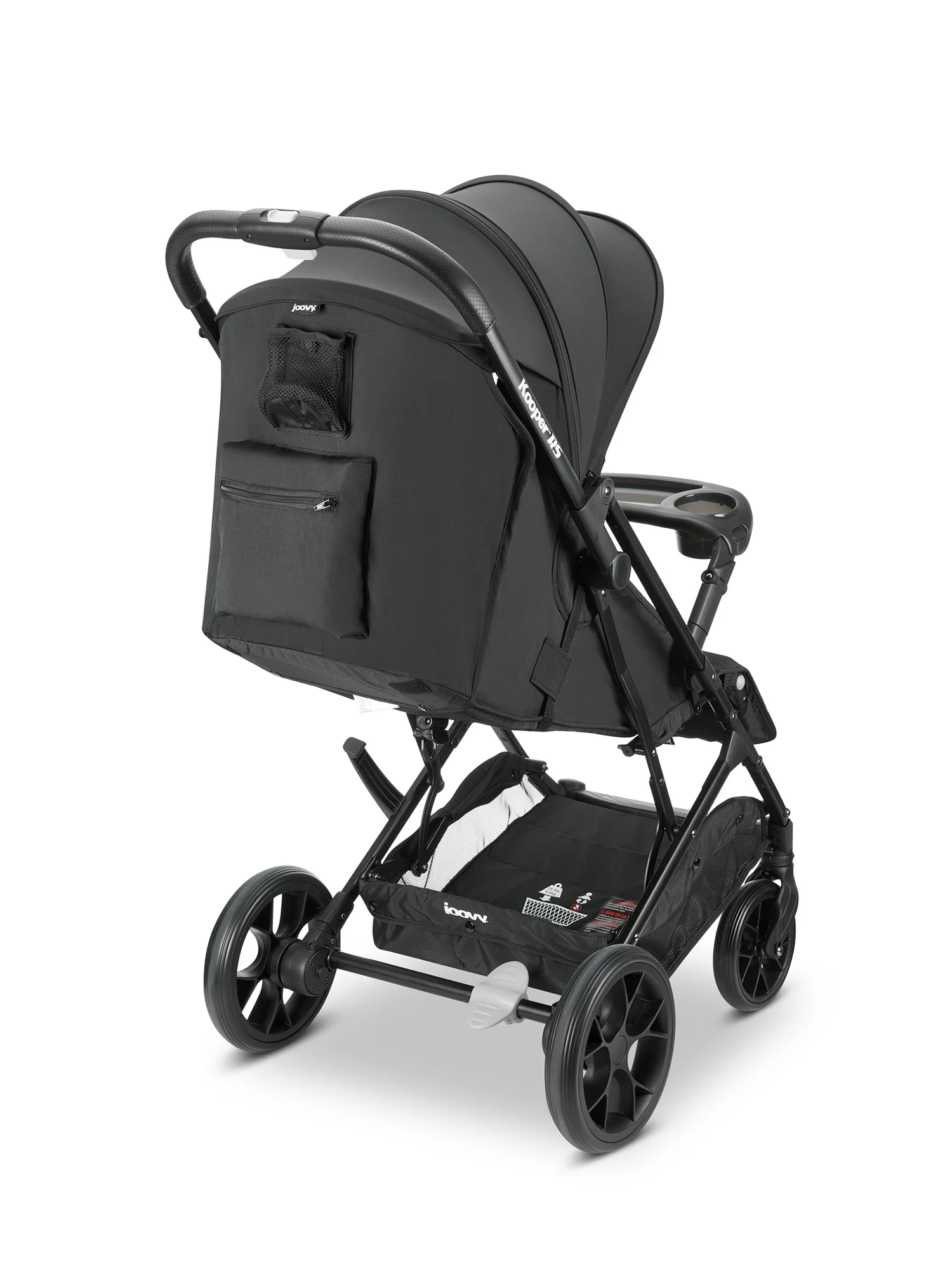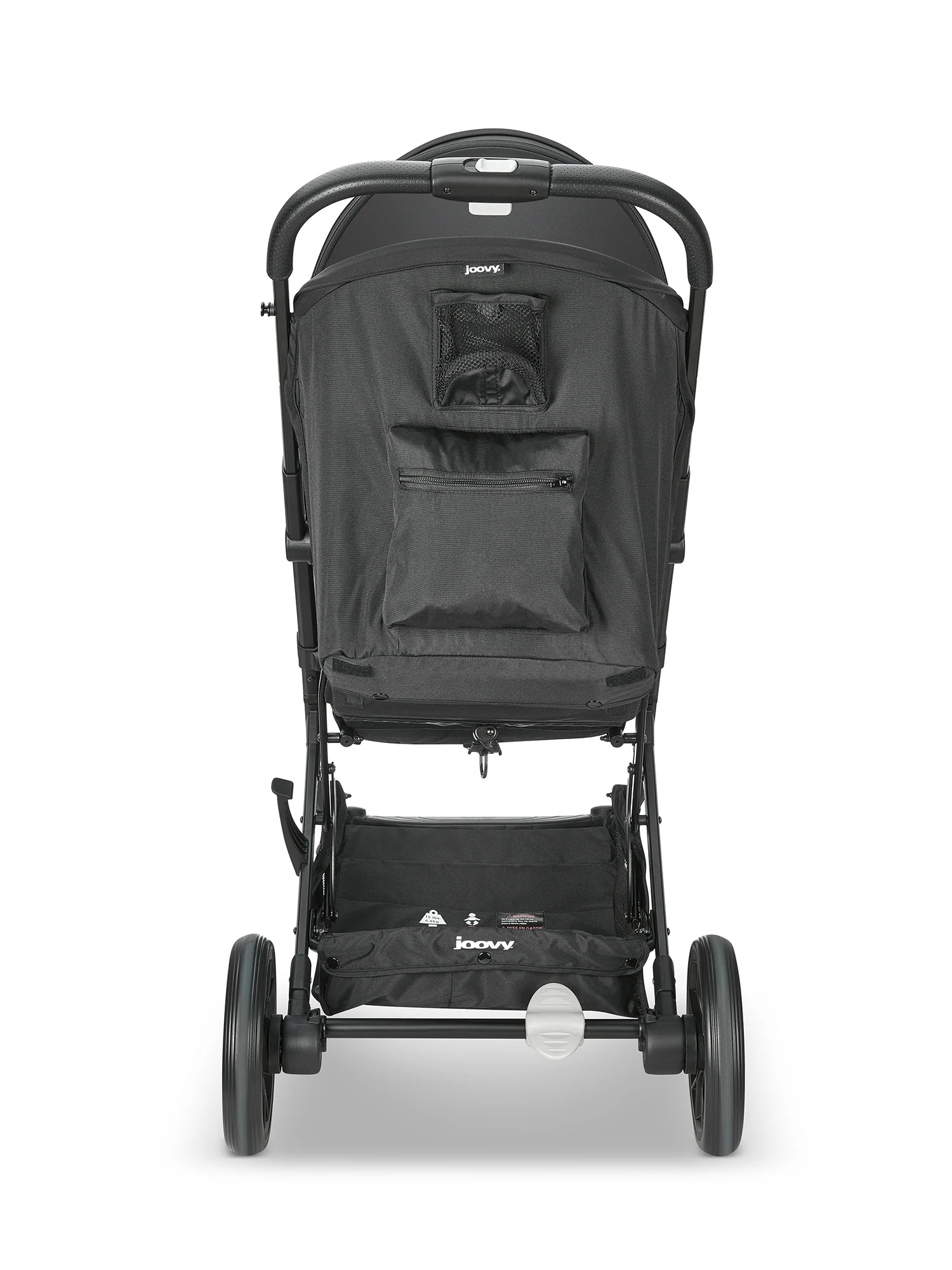 - Mesh cup holder and zippered pocket built into the back of the stroller for the parent