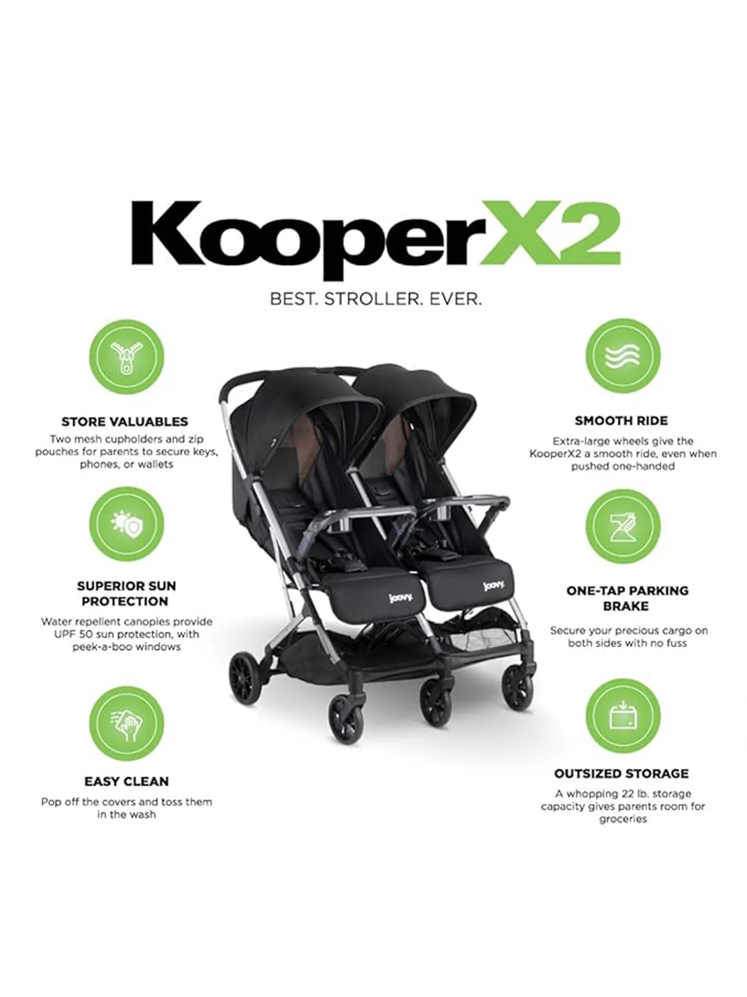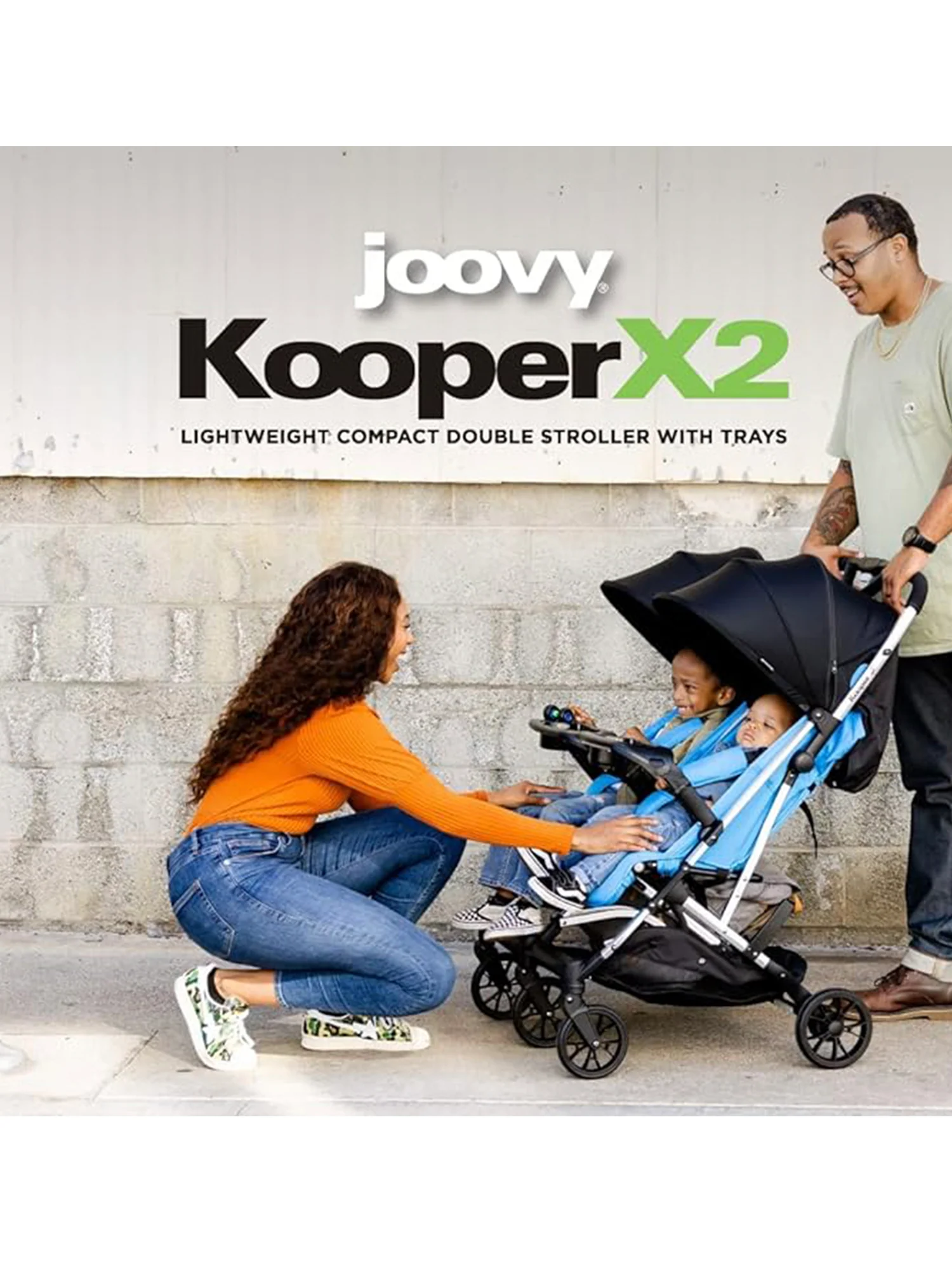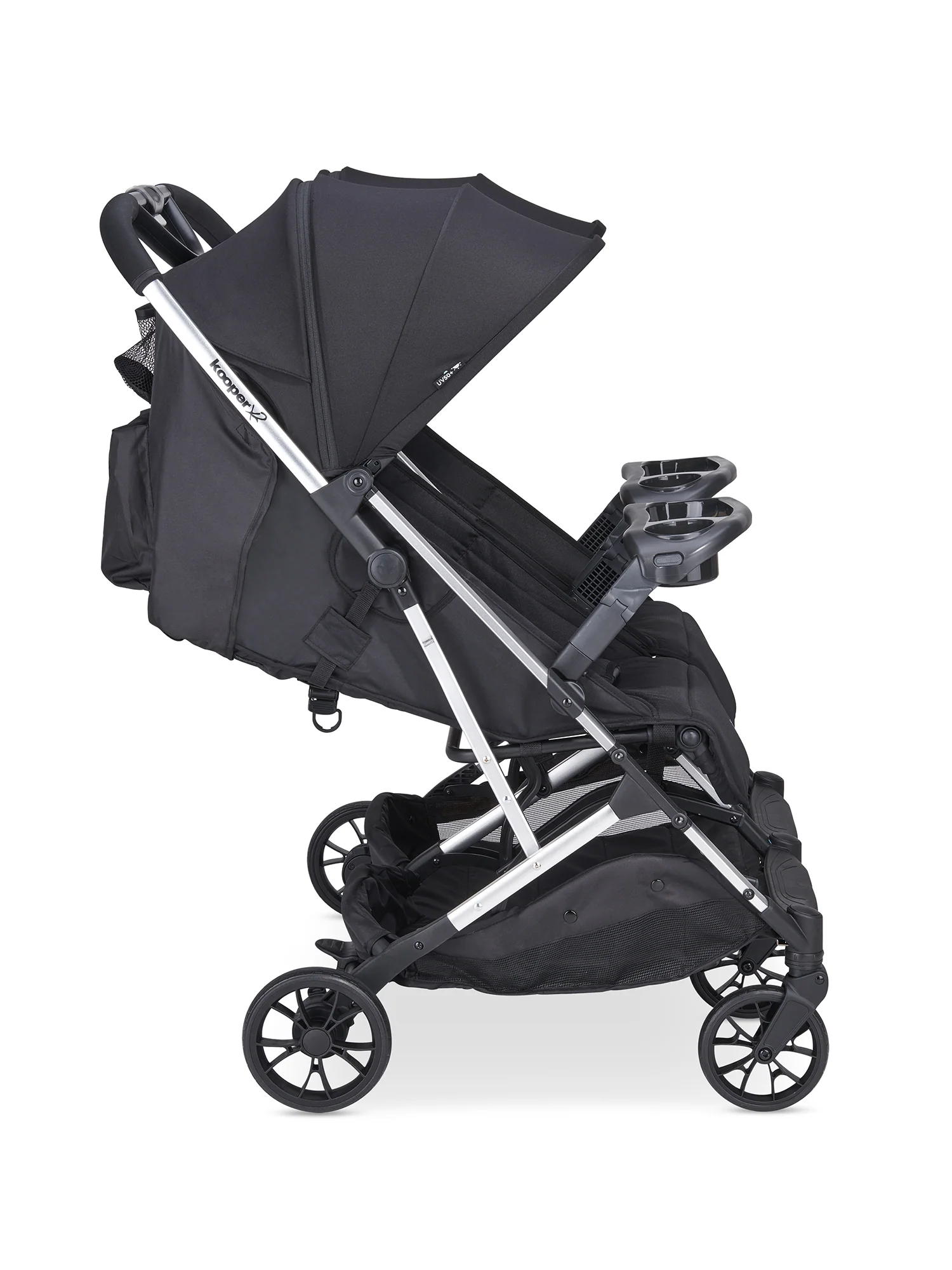 There are about a dozen tri-fold strollers out there, but none of them can compare to the awesomeness of the joovy Kooper X2. Housing seats for two kids weighing up to 50 lbs. each and a compact three-part fold that makes travel a breeze, this is the best compact double stroller you’ll ever buy.