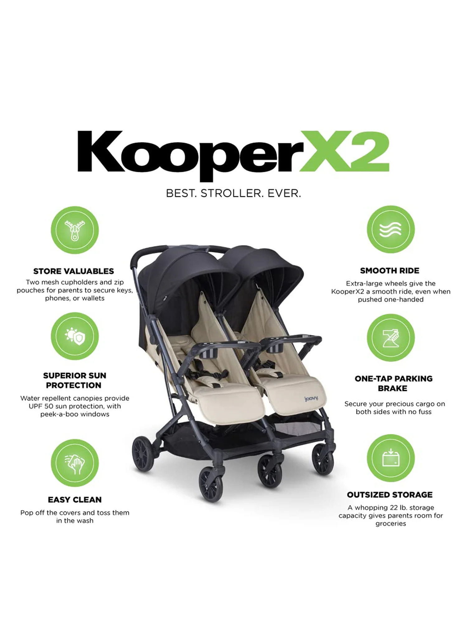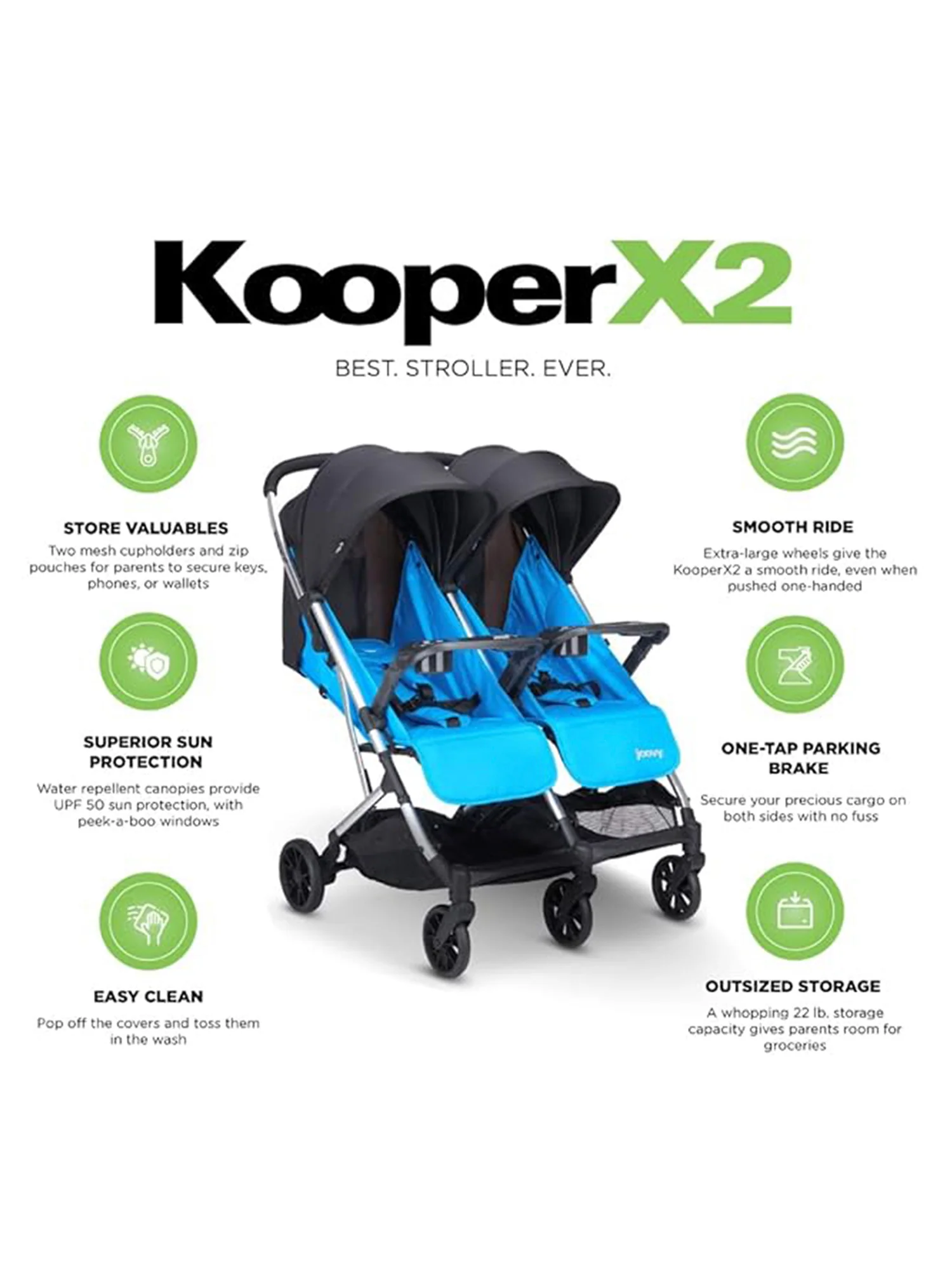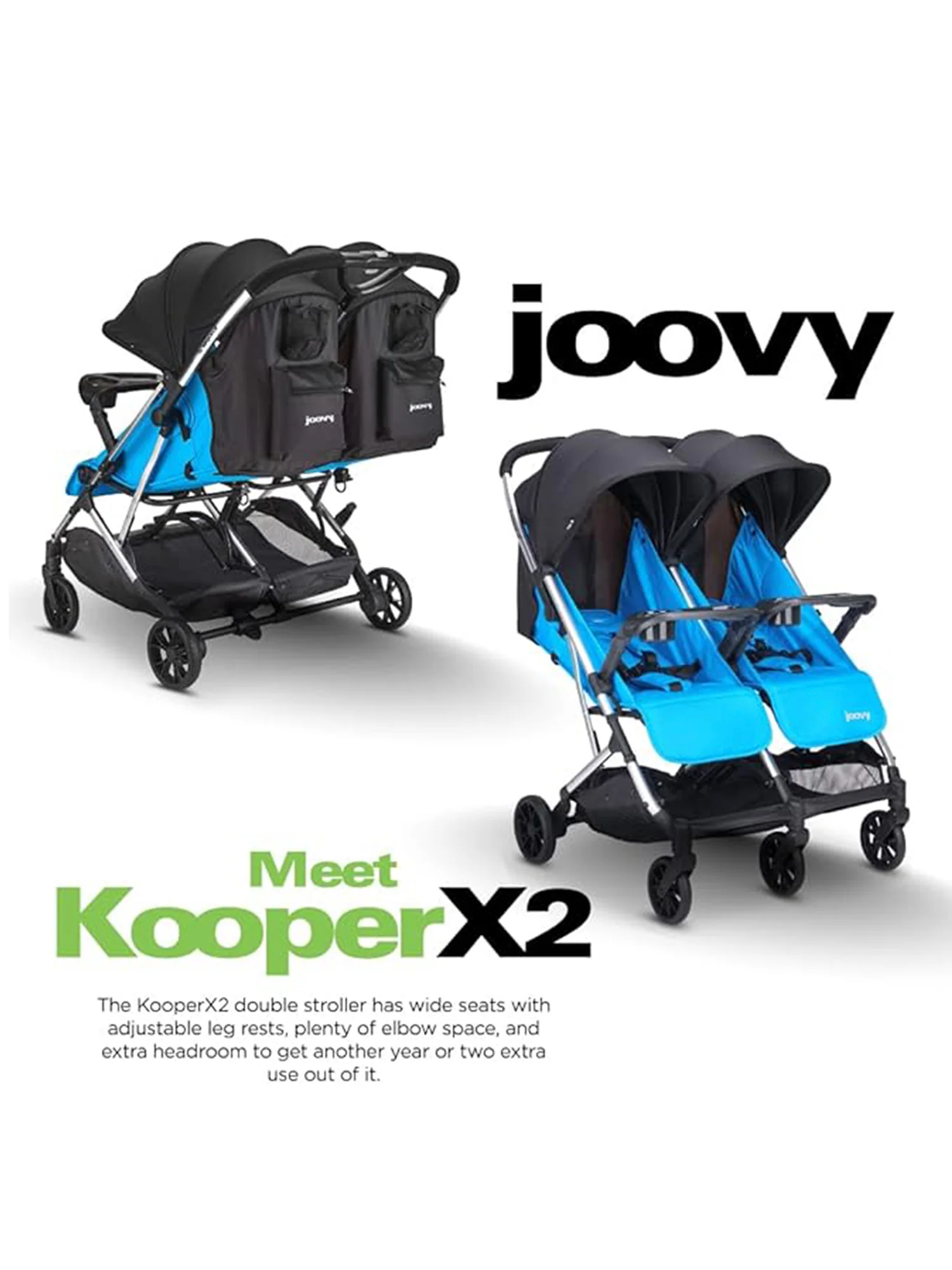 There are about a dozen tri-fold strollers out there, but none of them can compare to the awesomeness of the joovy Kooper X2. Housing seats for two kids weighing up to 50 lbs. each and a compact three-part fold that makes travel a breeze, this is the best compact double stroller you’ll ever buy.