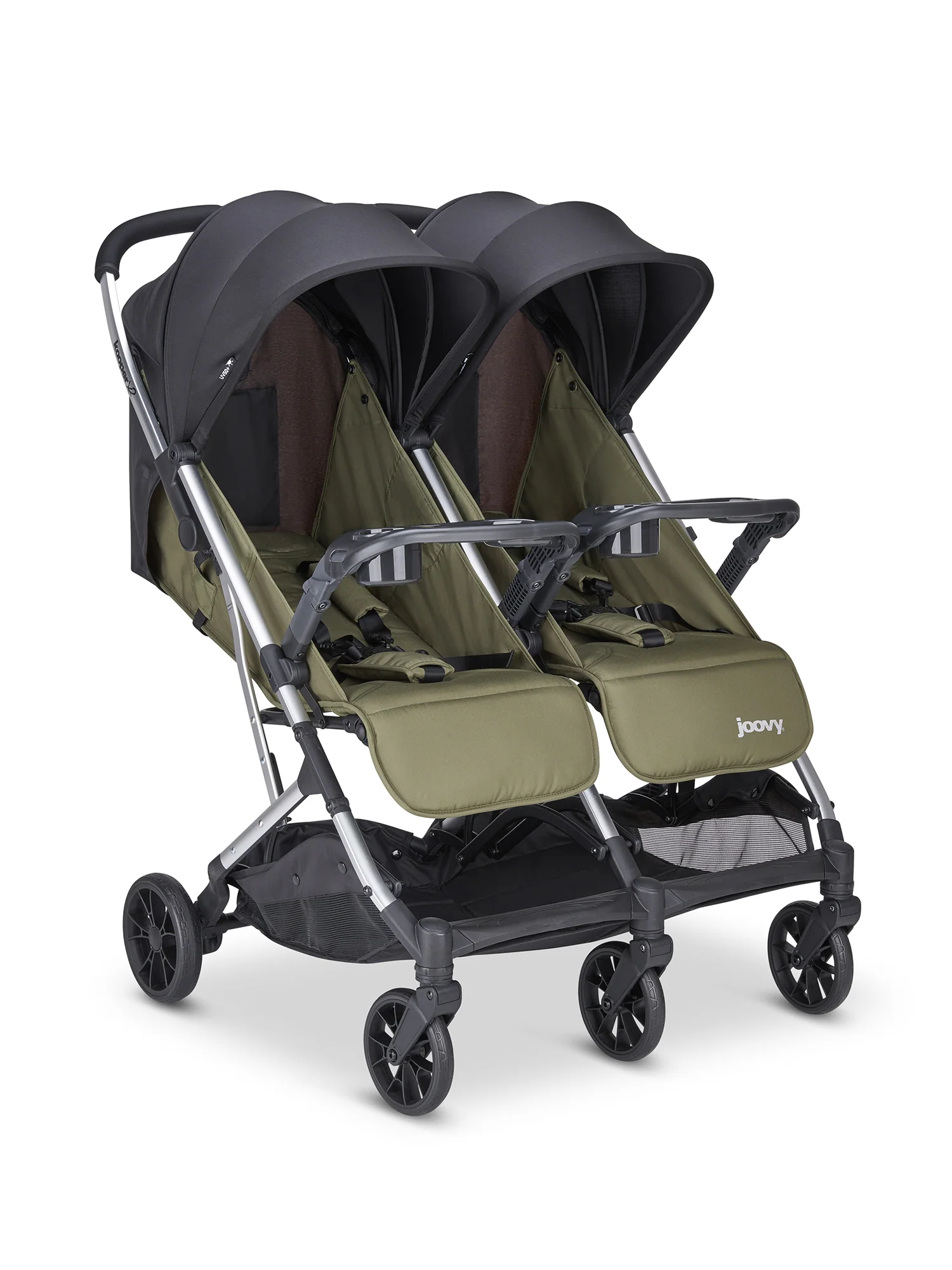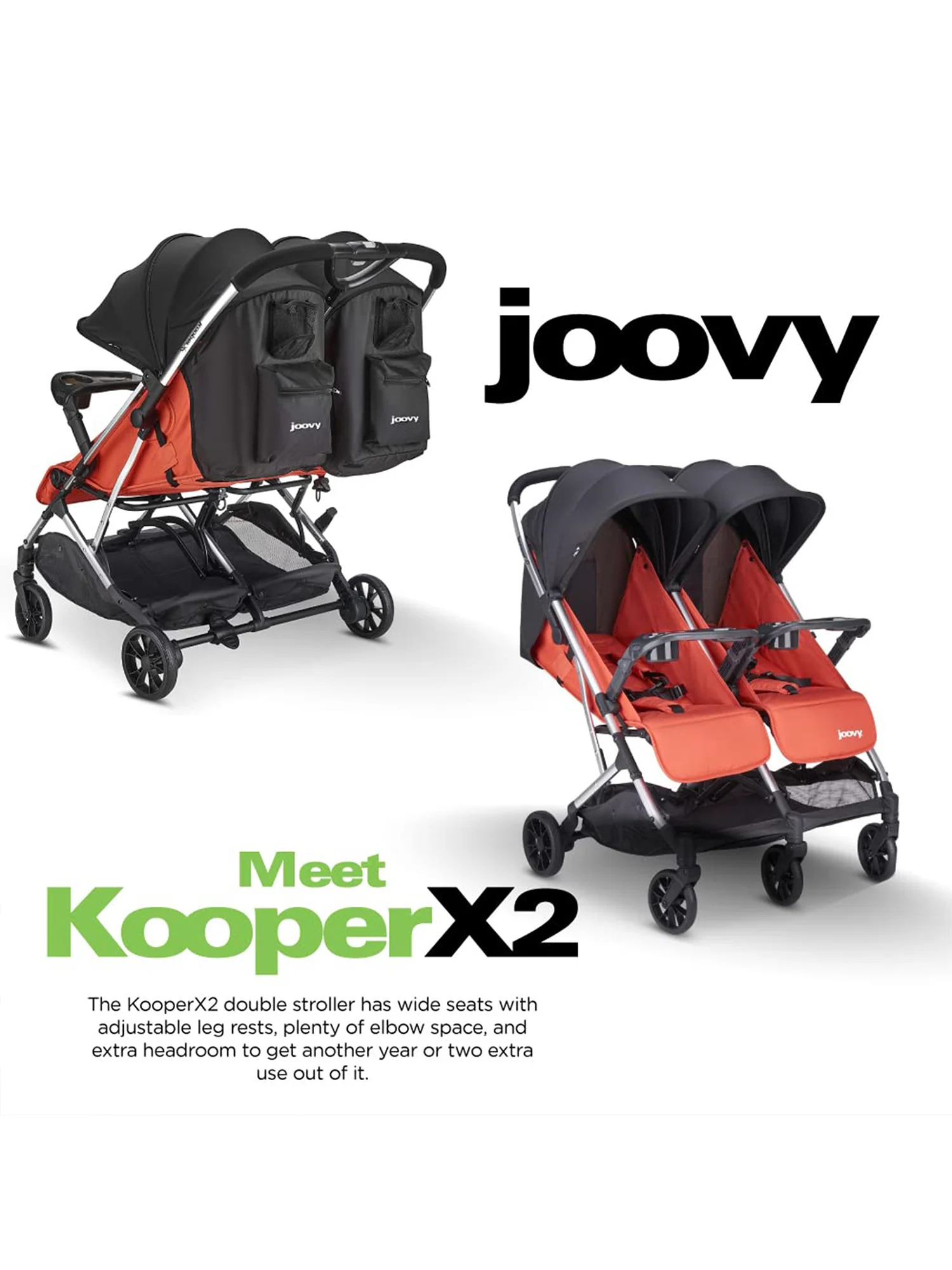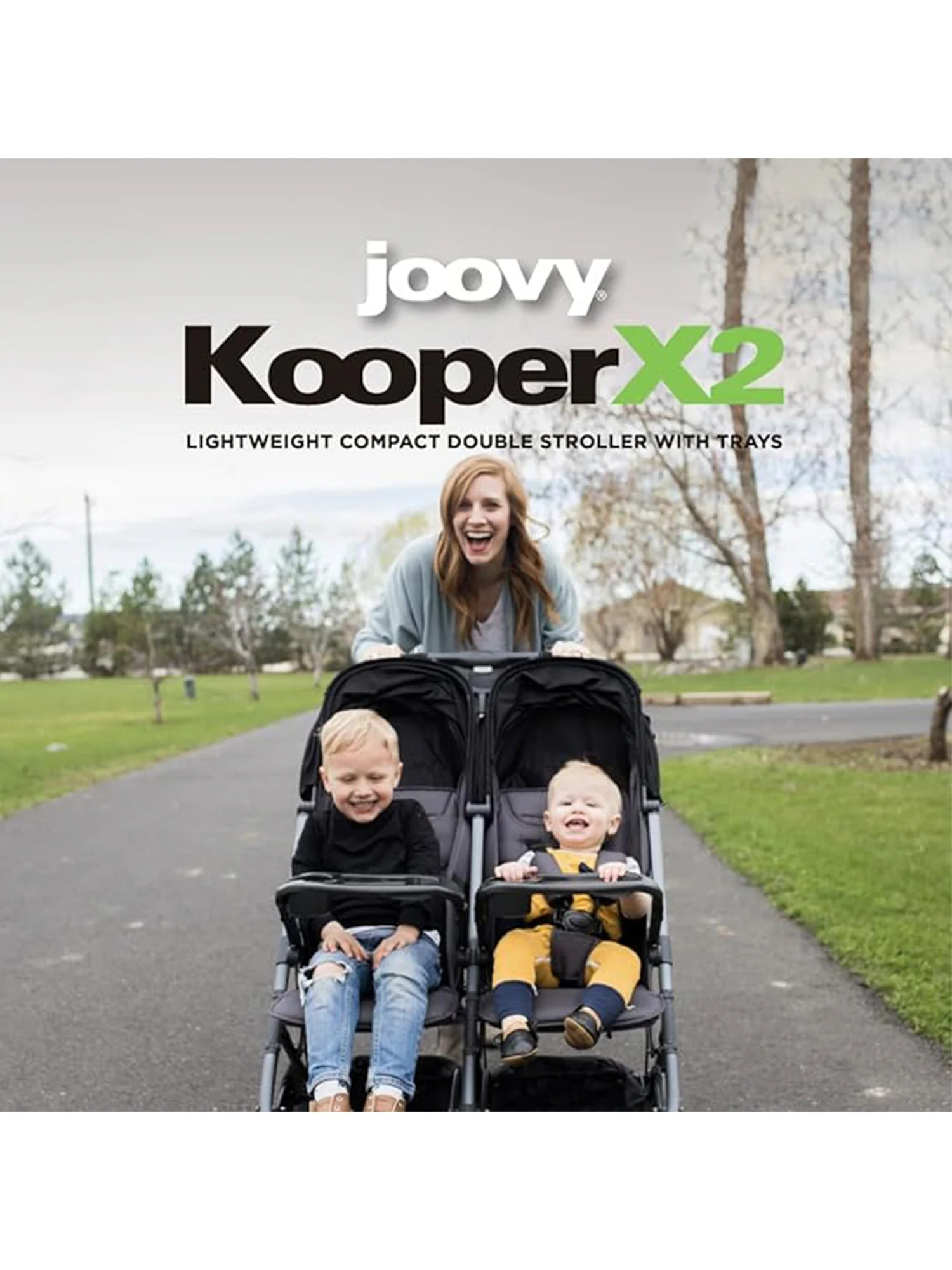 - The ONLY US compact double stroller with two trays that fold with it