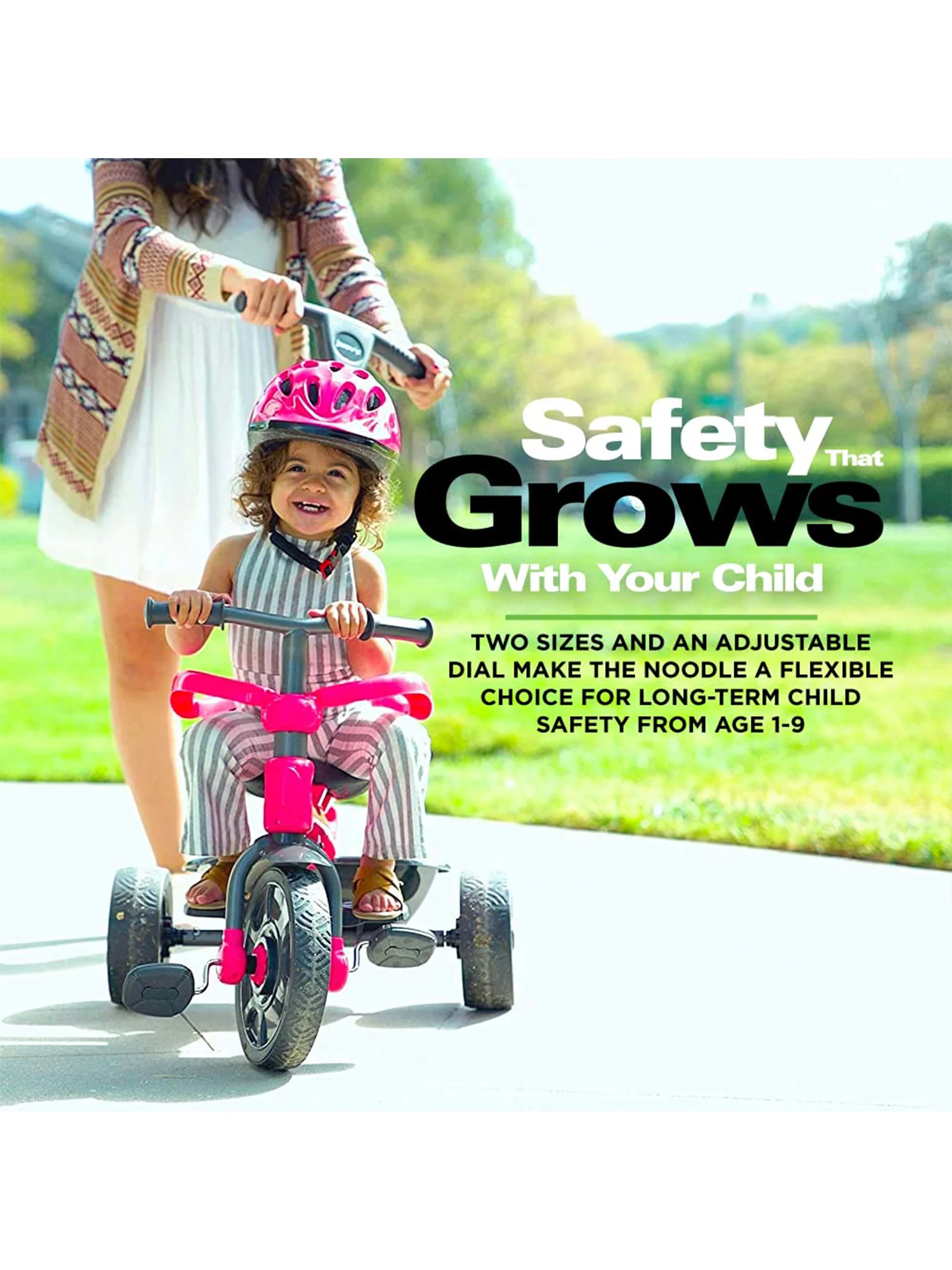 Our Noodle Kids Bicycle Helmet offers peace of mind to even the most fretful of parents, adhering to CPSC standards for safety. The helmet is easily adjusted using a sizing dial, allowing your little one to use it even as they grow.