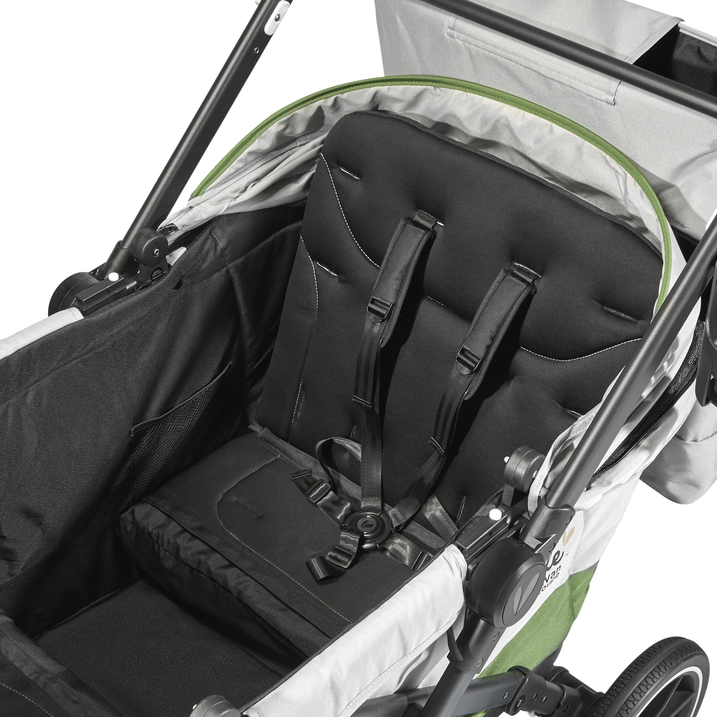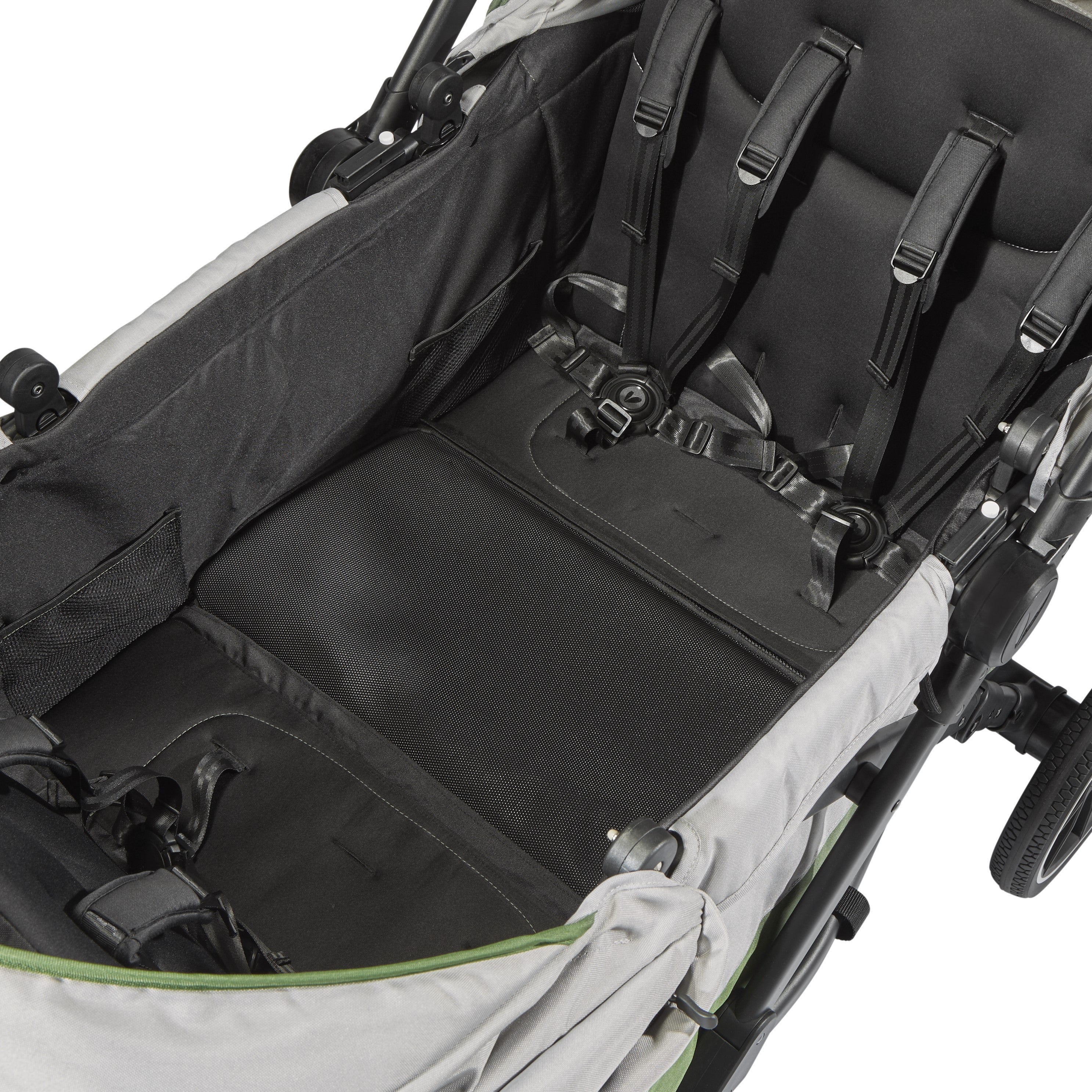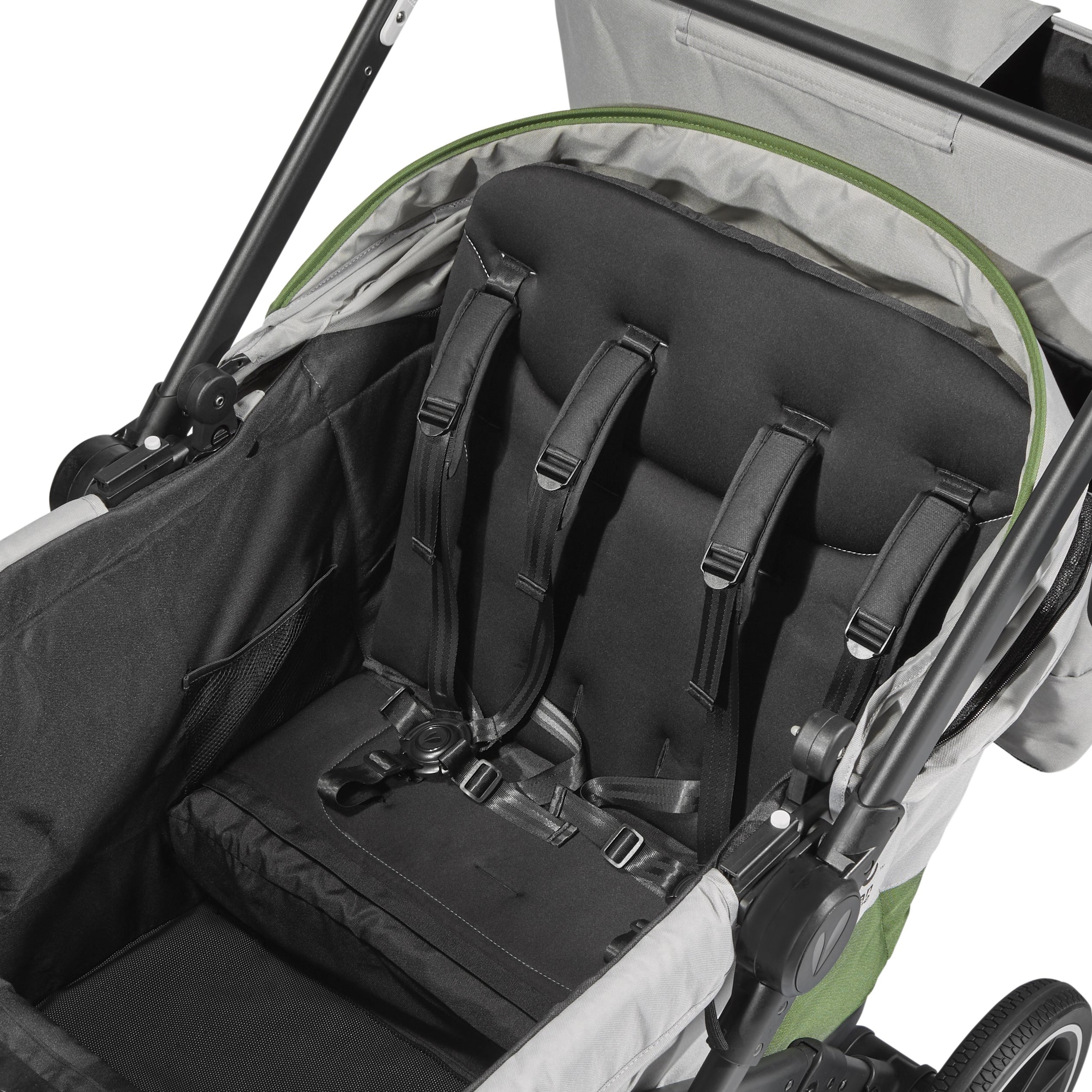 • Dual multi-position sun canopies each feature a zippered canopy extension with airflow panel, and a peek-a-boo window.
