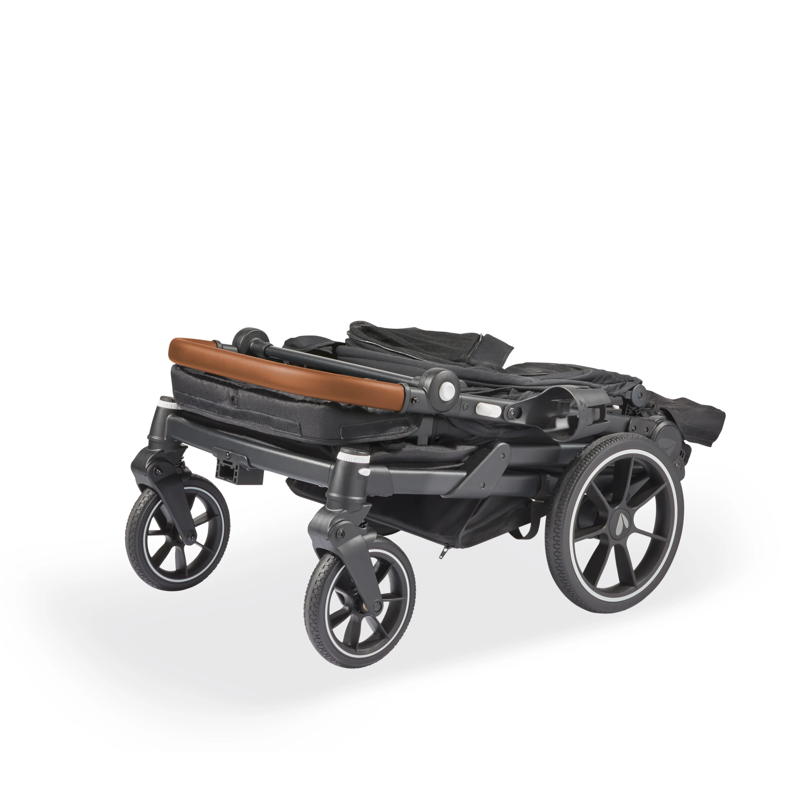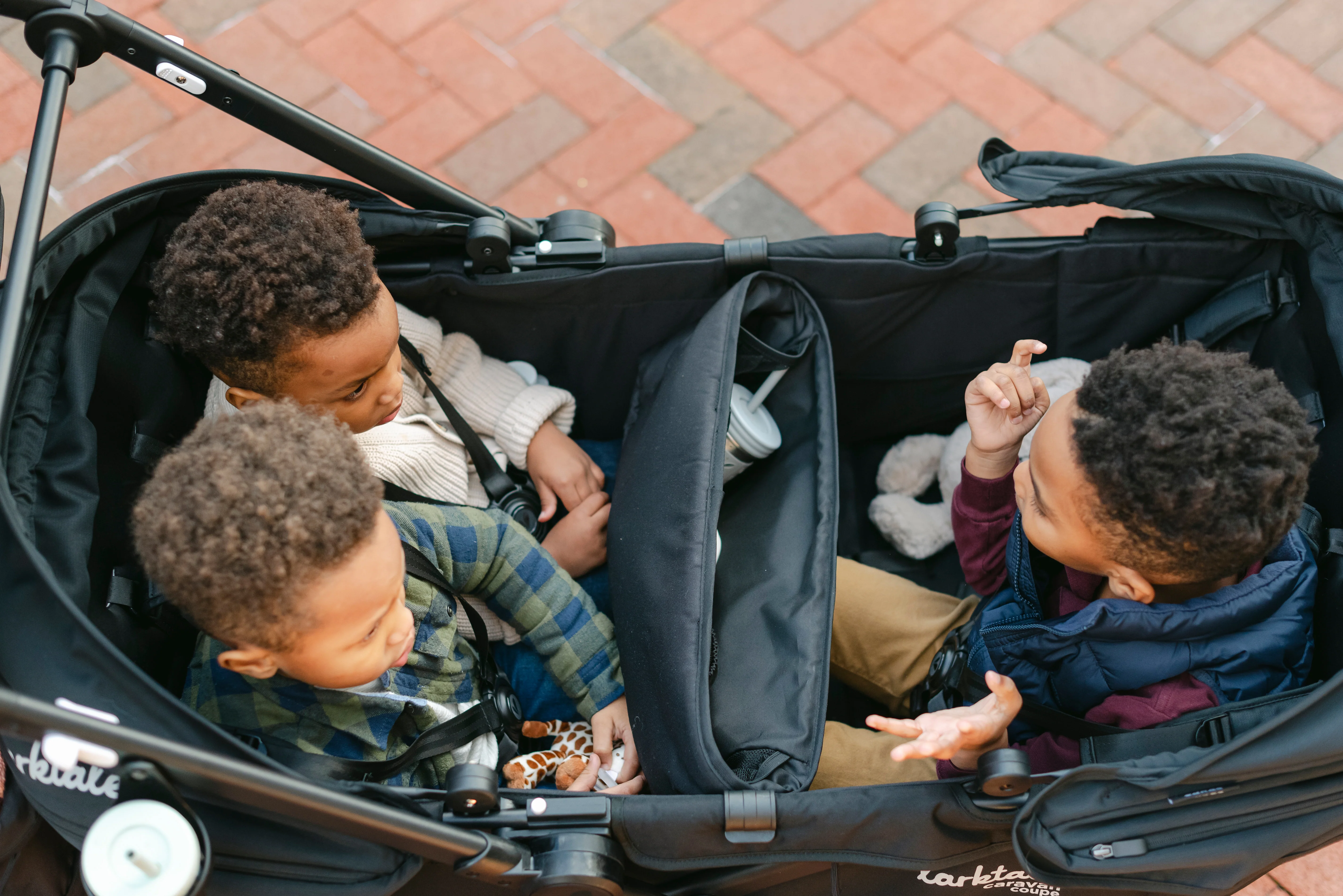 The Larktale caravan coupe Quad offers all the features of a large stroller/wagon, in a more nimble and compact package with an impressively small fold, all while maintaining the comfortable seating and higher weight capacity you crave for your growing kiddos. Suitable for children from 6 months to 48.5 lbs per seat, the caravan coupe will comfortably seat up to four growing kids with reclining seat backs and a shared drop-down footwell for comfortable stroller-style seating. The unique no-rethread harness system can be reconfigured to seat either one or two passengers per side and the roomy interior can safely accommodate a newborn using a caravan quad car seat adapter (sold separately). If you need space to haul cargo or let your little ones stretch their legs, you can securely invert the footwell to create a flat base interior to suit your needs. No tools are needed to complete the transition, making it easy for parents to change their strolling style on the fly. Parents will also love the dual adjustable sun canopies with air-flow panel and peek-a-boo window, seat recline, height-adjustable leatherette handlebar, included stroller organizer and self-leveling cup holder, and the all-wheel suspension system. The impressively compact fold of the caravan™ coupe Quad is a game changer for multi-kid families that need a stroller/wagon but are short on vehicle trunk space, or storage space in their homes.