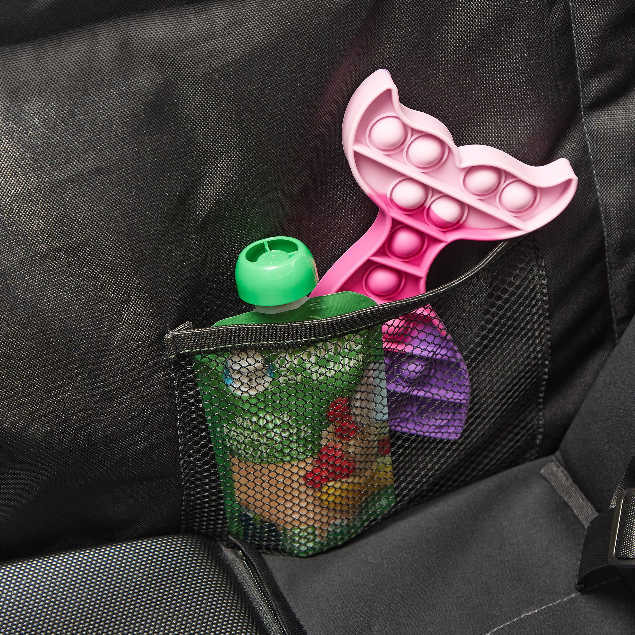 • Four mesh interior pockets keep your child’s snacks and toys within their reach.
