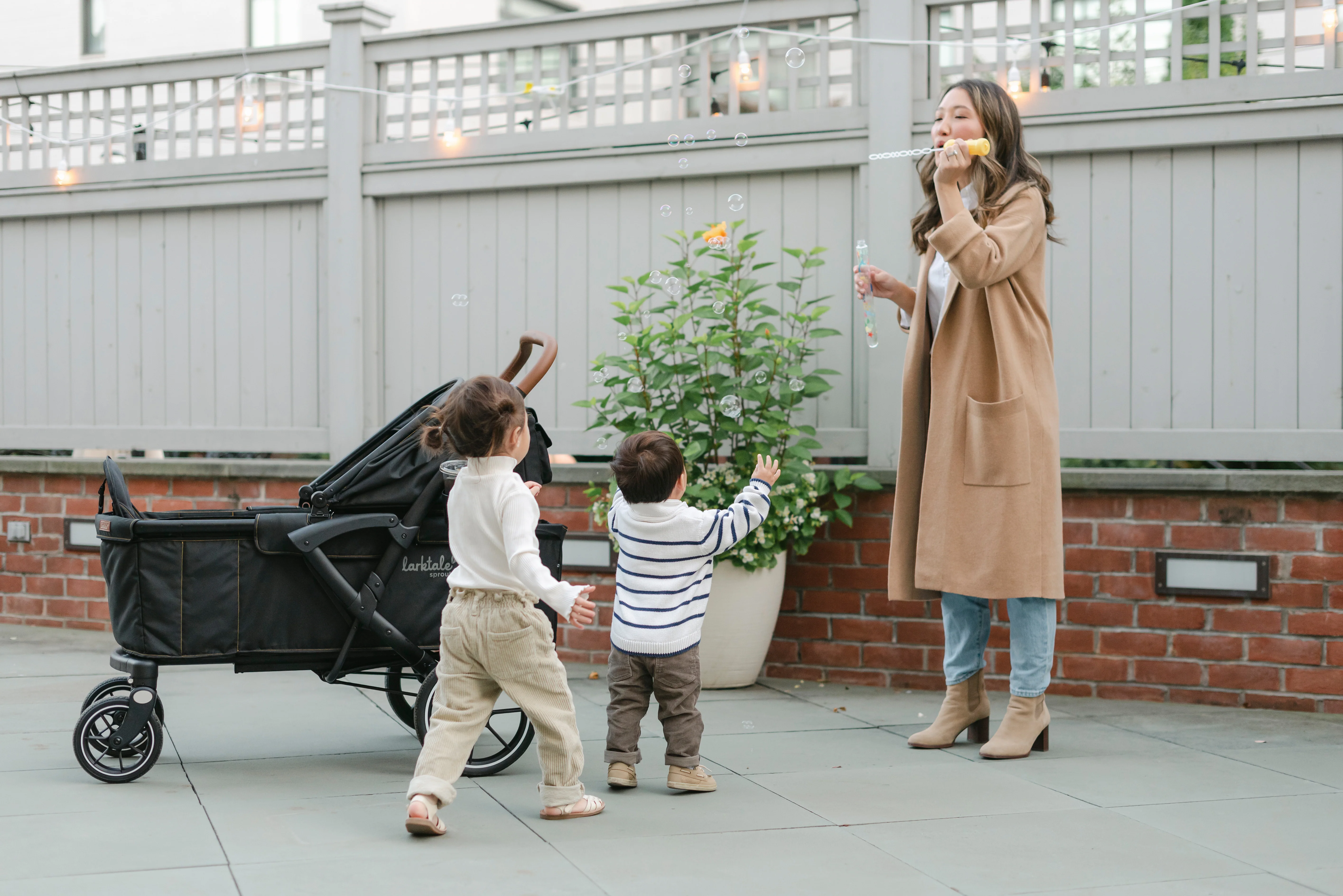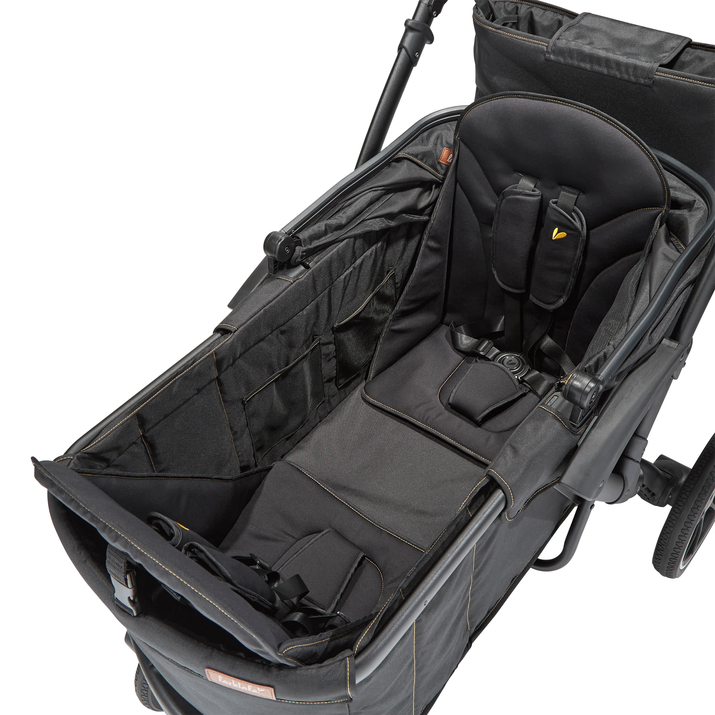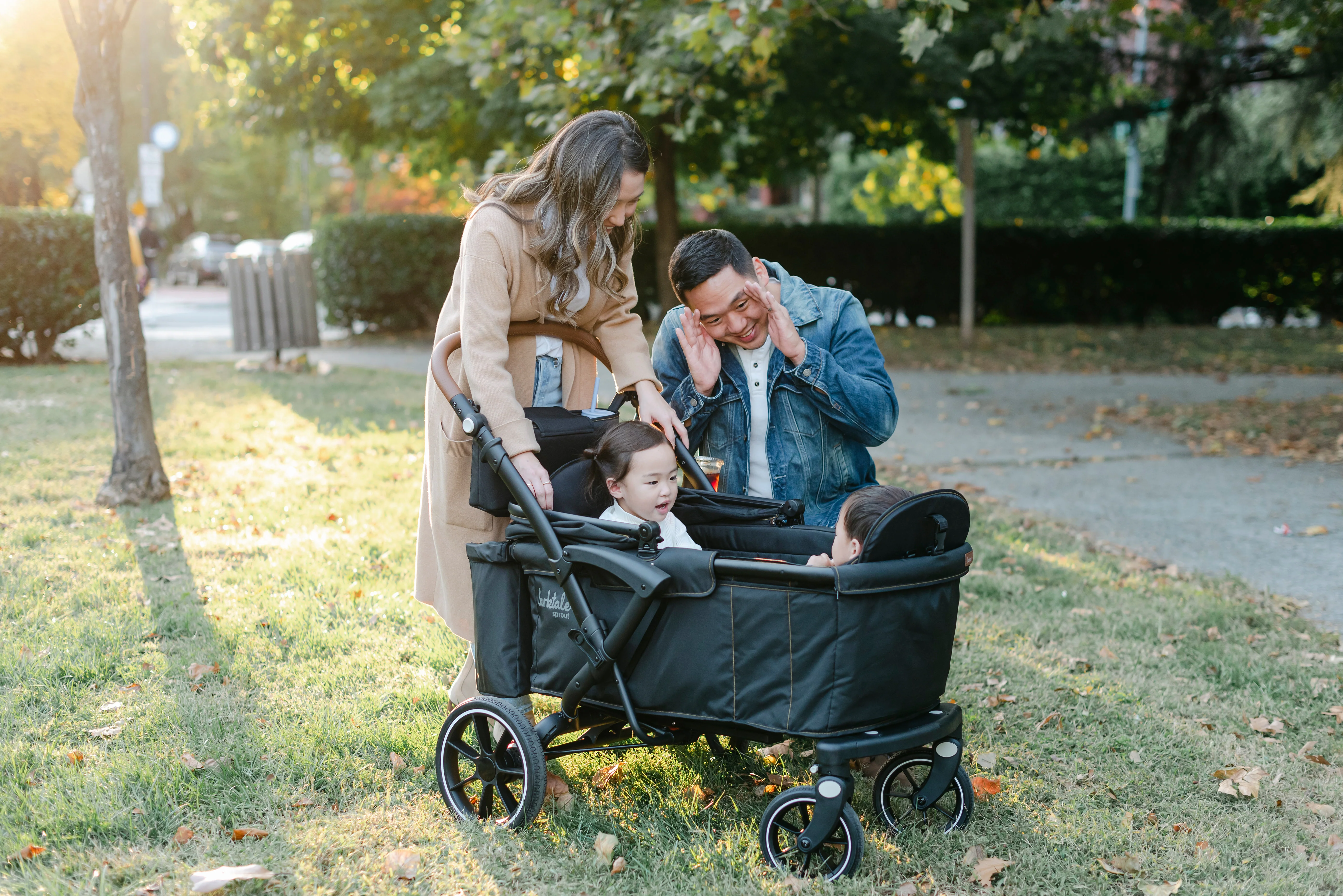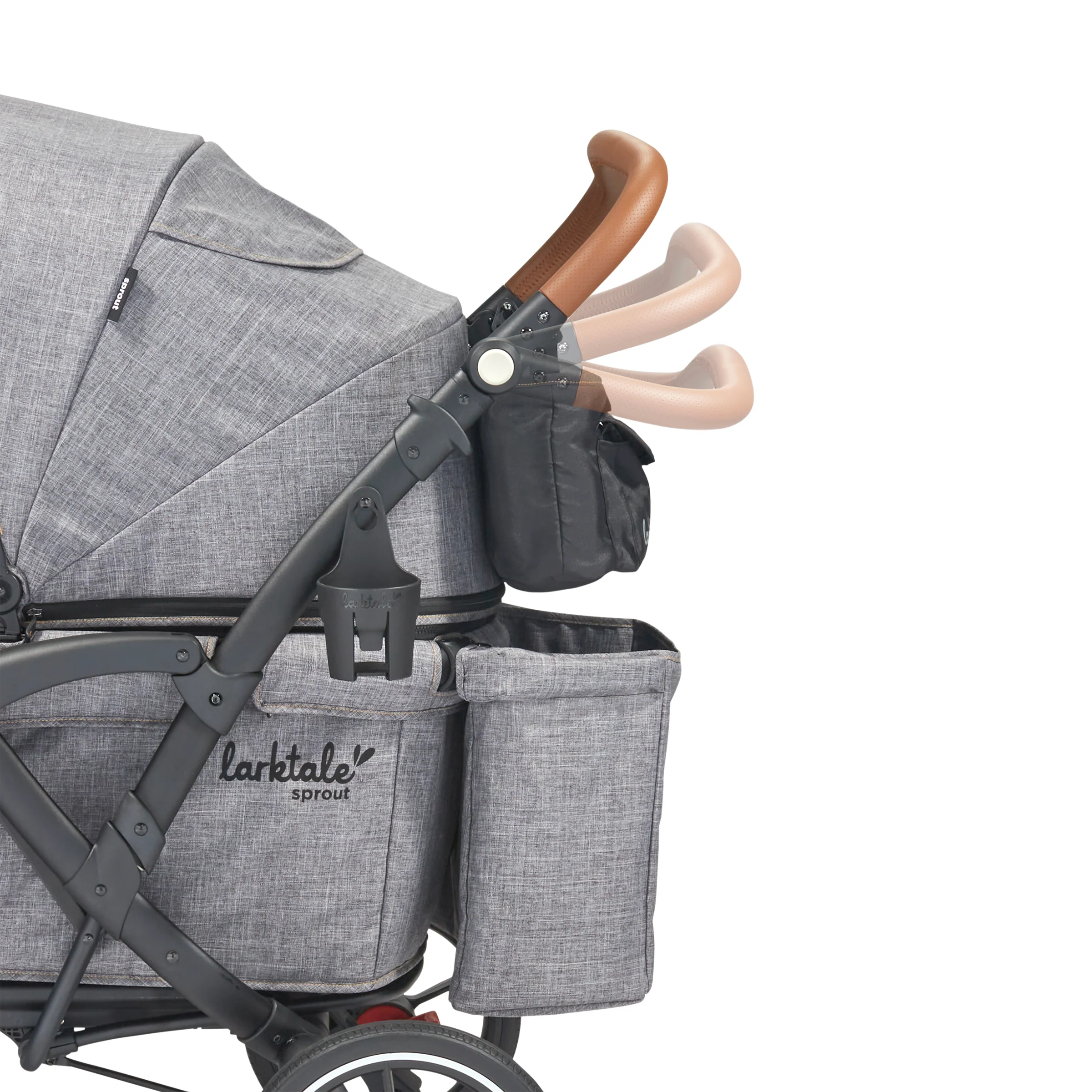 The Larktale sprout™ V2 Single-to-Double Stroller/Wagon is a stylish, first of its kind, size-adjustable wagon, designed for families living in metropolitan areas or have limited space in their home. The sprout is a compact single-seater wagon that parents can expand into a double-sized wagon with no tools or conversion kits needed. With the sprout, parents have the option to select the right size chassis for their activity: Need extra cargo space or to add a seat for an extra kid? Simply expand the sprout wagon chassis to make room for it all. Dropping off one kid at a playdate before running errands with the other? Shorten the sprout wagon chassis to make strolling with one kid a little more practical. All conversions can be completed in 5 seconds or less in this innovative stroller/wagon and everything you need is included. Beyond the innovative flexibility of the sprout, parents will also love the luxury styling, extra-large sun canopy with air-flow panel and peek-a-boo window, the large storage basket, cargo divider for when the second seat is not in use in double mode, included parent’s console, leatherette wrapped adjustable handlebar, and all-wheel suspension. Suitable for kids from 6 months to a combined kid/cargo weight of 120 lbs. The compact flat fold of the sprout allows the wagon to be easily stored and transported.