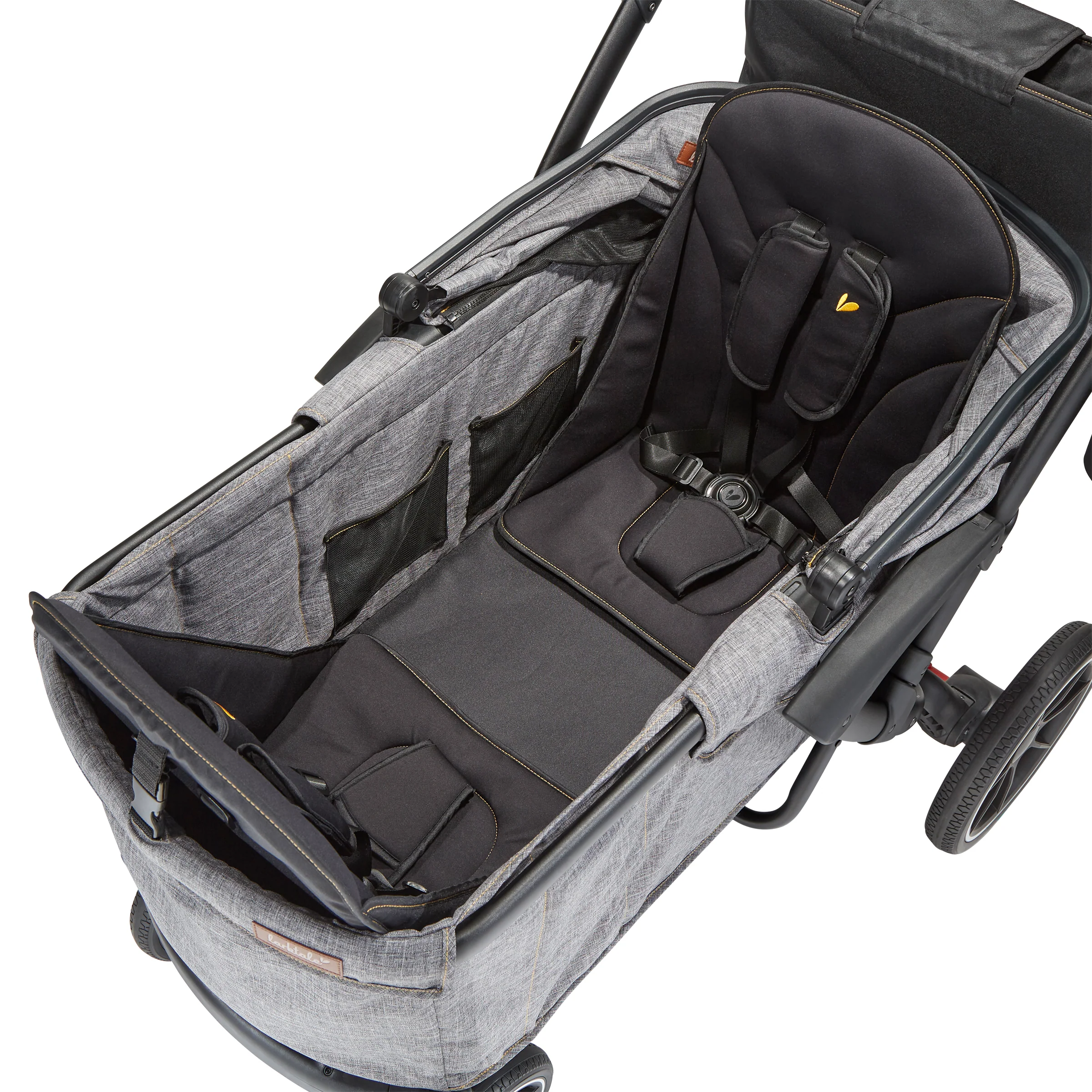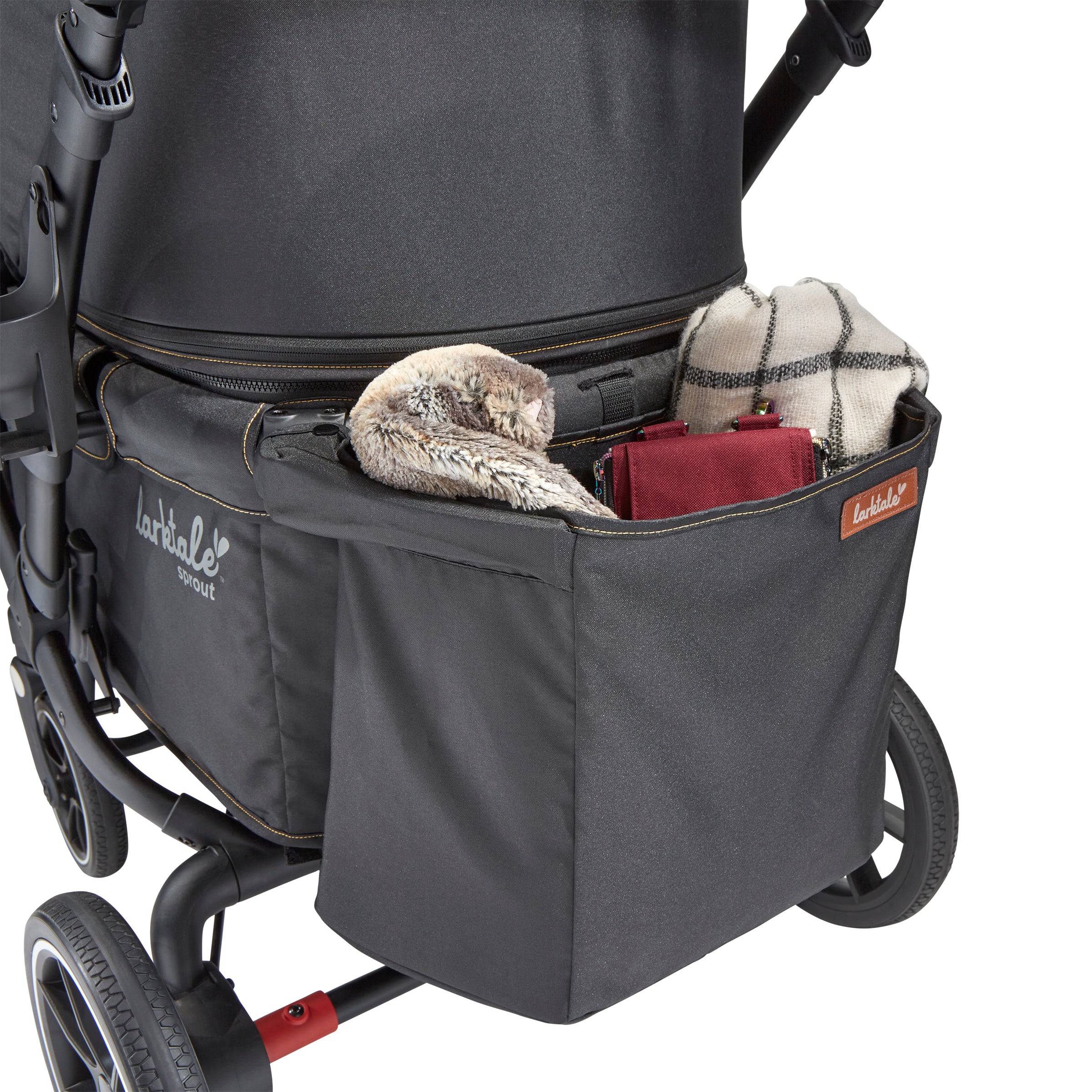 - Mesh cargo divider included to section off and hold groceries, bags, and other loose items when only one child is seated in the double wagon. Stows away on the sprout stroller/wagon when not in use.