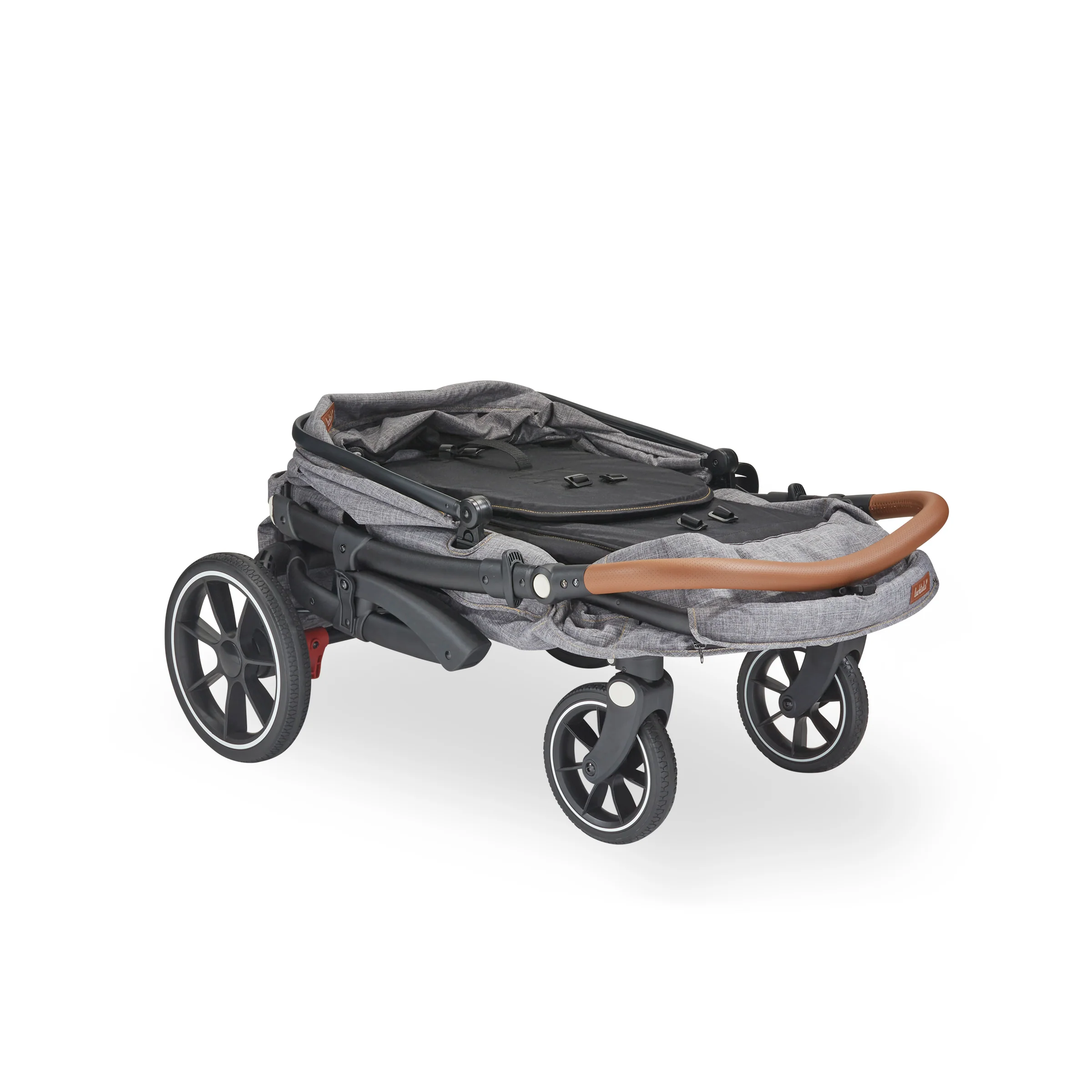 - Large non-flat rubber wheels and an all-wheel suspension system provide a smooth and comfortable ride.