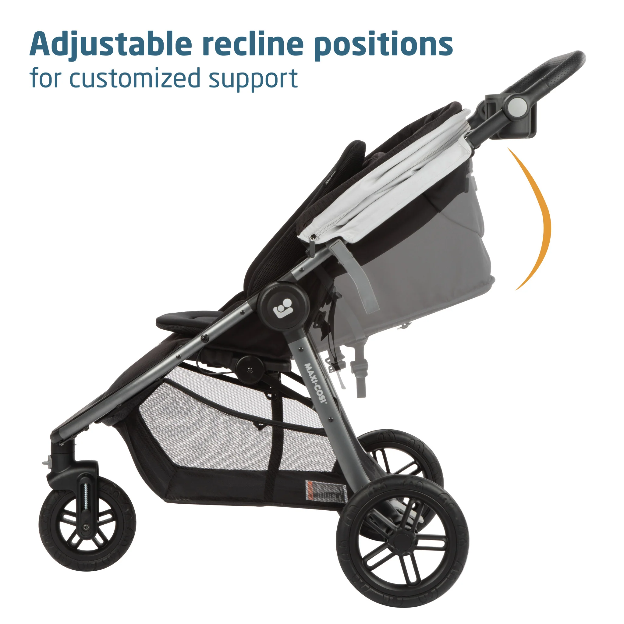 • Stroller features adjustable reclining positions for customized support and relaxation