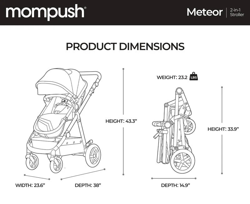 TheMompush Meteor is not just a stroller; it is a comprehensive solution designed to adapt to the changing needs of your growing baby. The Meteor's innovative 2-in-1 stroller design allows it to easily transition from a cozy bassinet to a comfortable seat, saving you the trouble of constantly switching baby essentials.