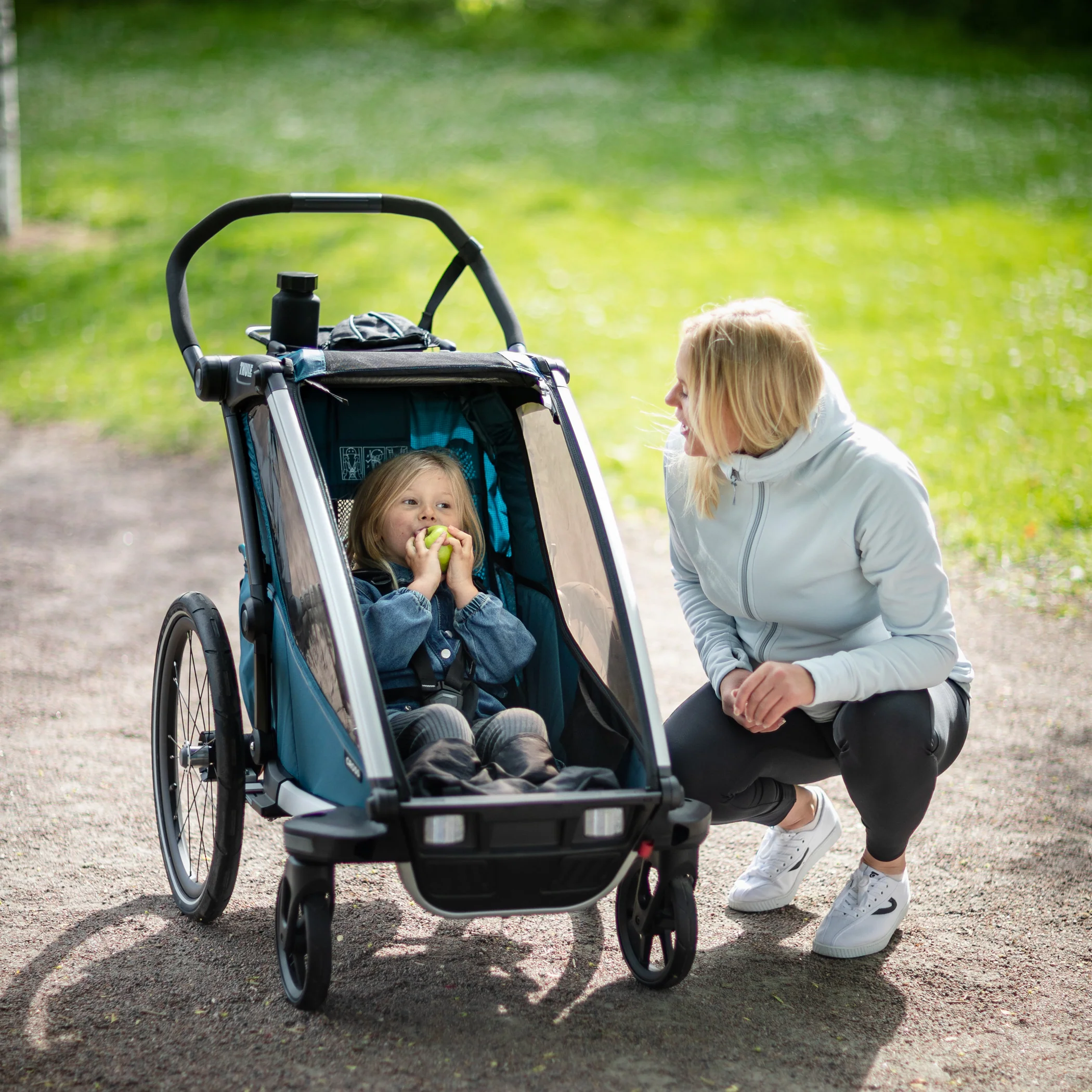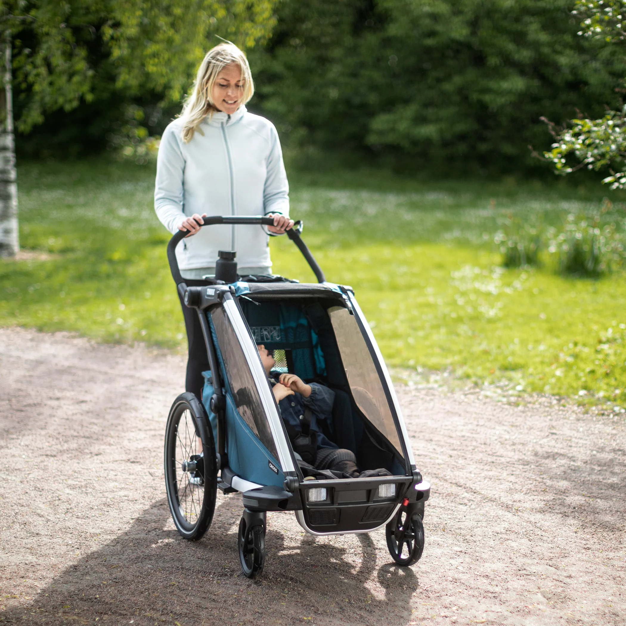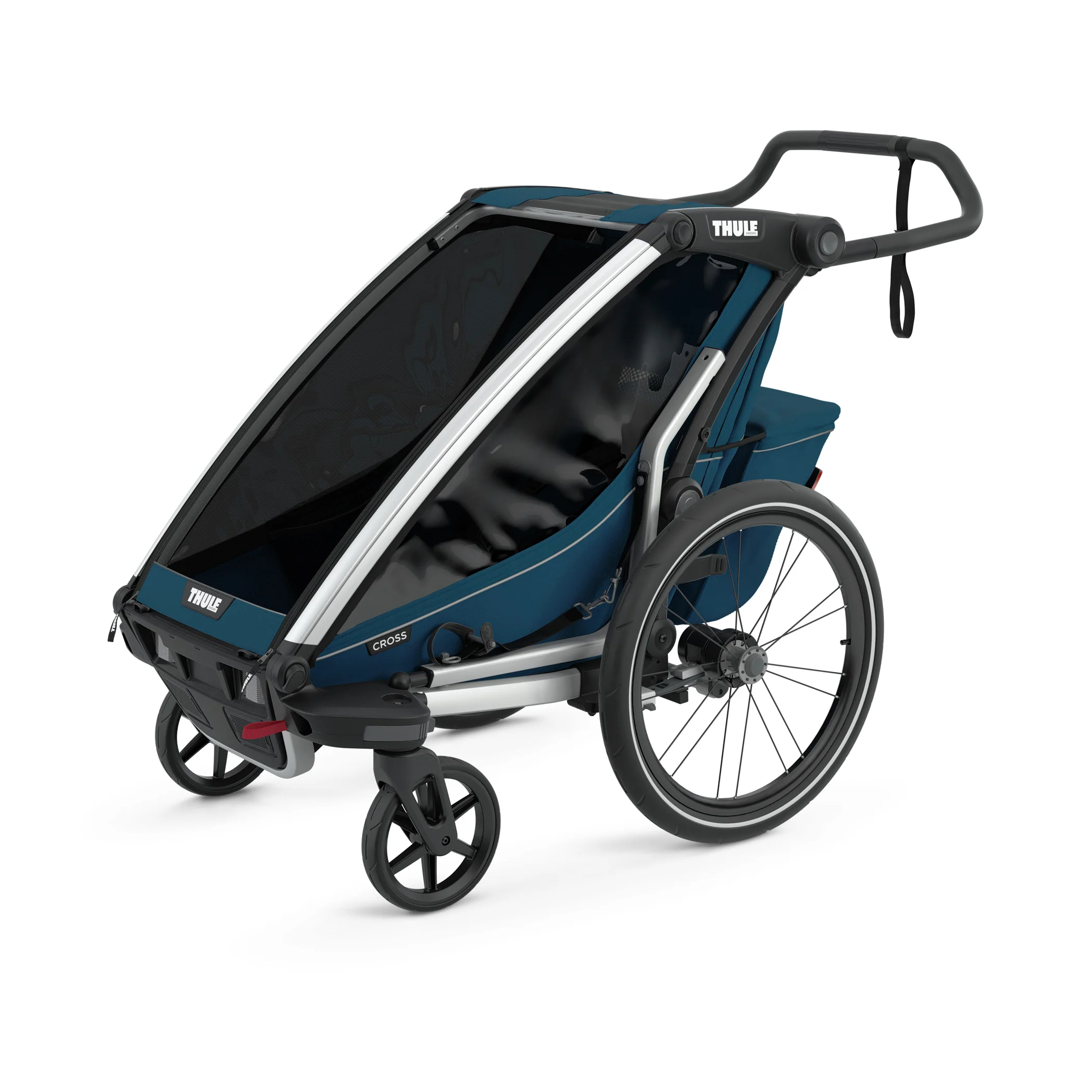 The Thule Chariot Cross 2 Multi-Sport Single Stroller is an all rounder bike and ski trailer, jogger, and stroller in one. Designed for use with up to 1 child, offering comfort and flexibility for families with an active lifestyle.