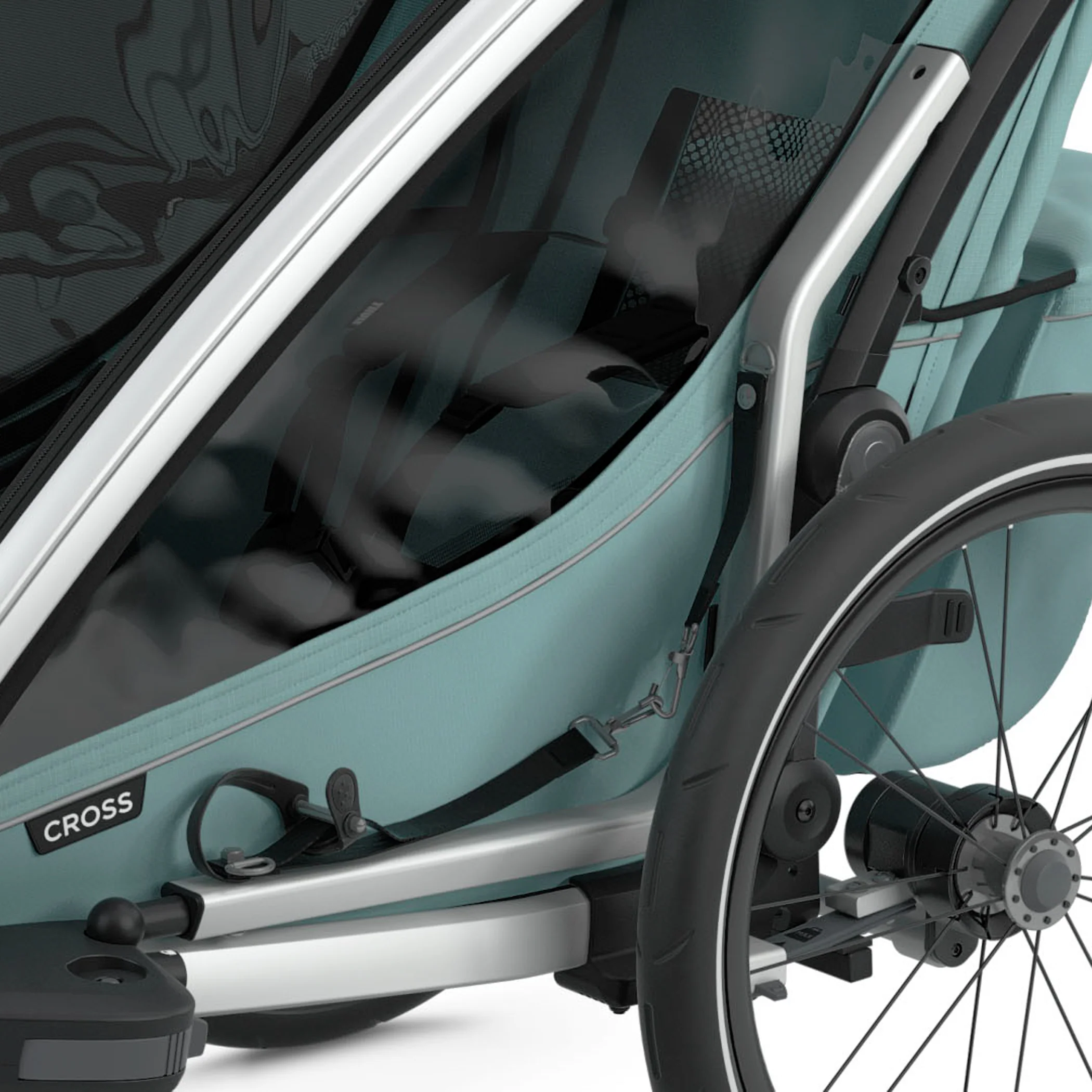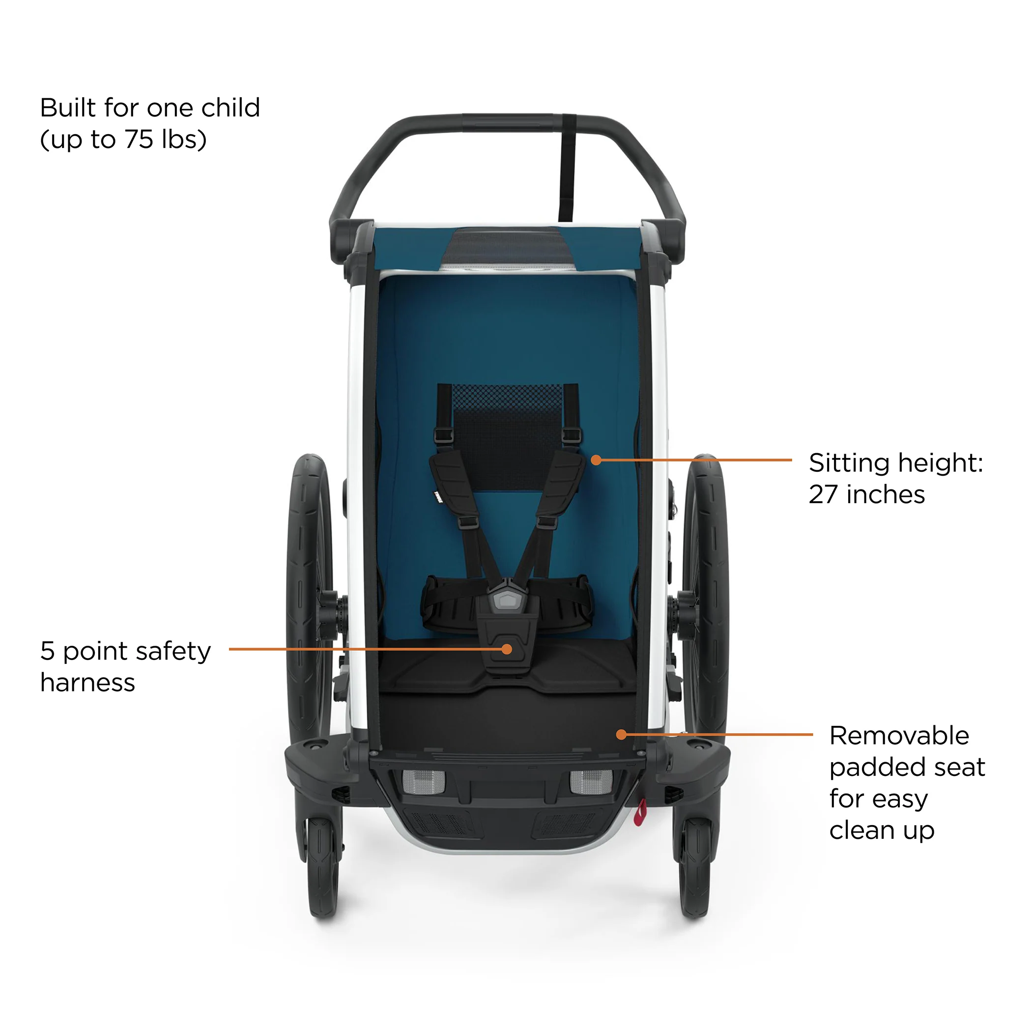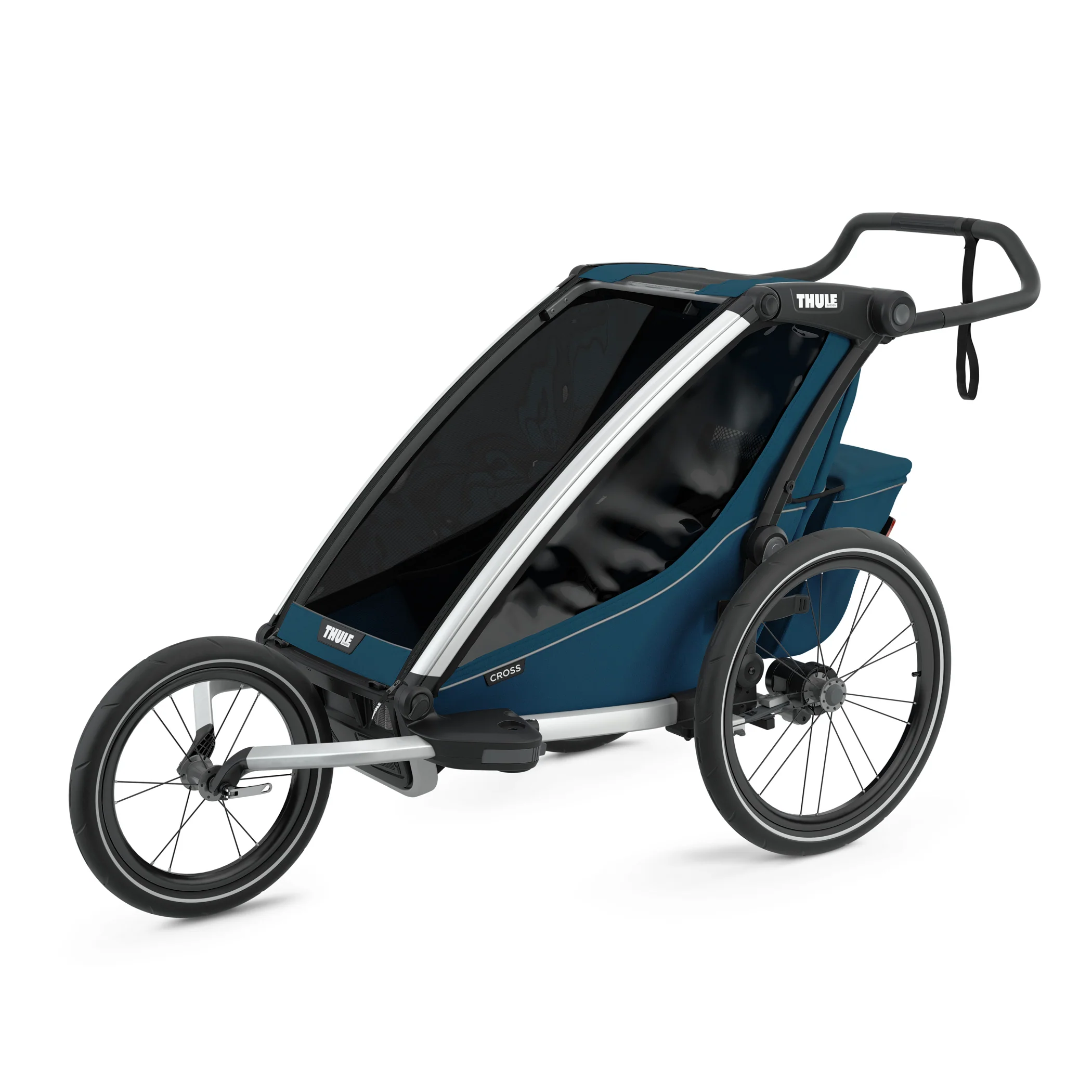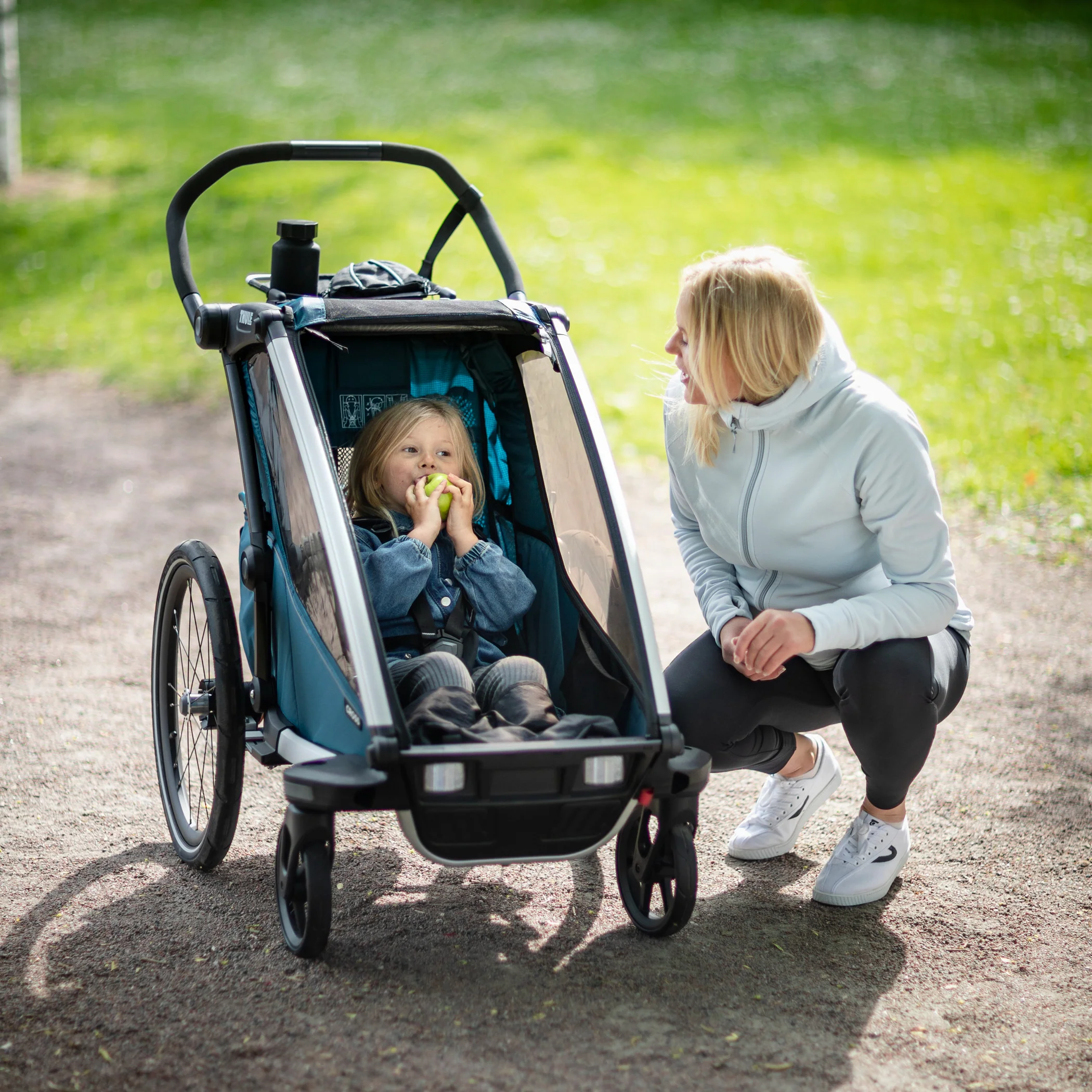 The Thule Chariot Cross 2 Multi-Sport Single Stroller is an all rounder bike and ski trailer, jogger, and stroller in one. Designed for use with up to 1 child, offering comfort and flexibility for families with an active lifestyle.