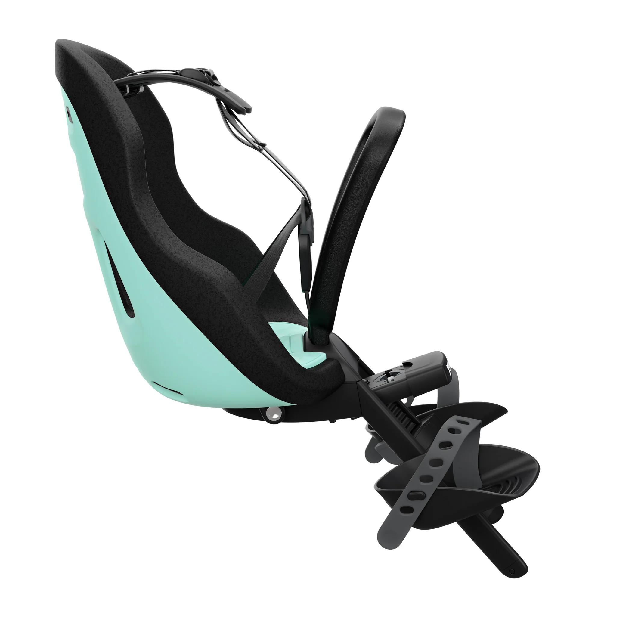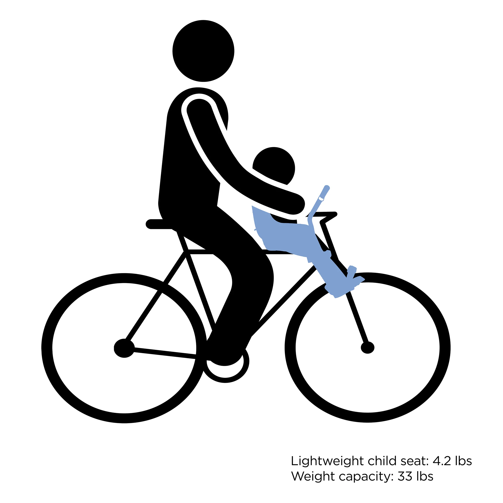 Light-weight and stylish front-mounted child bike seat with smart design for rides around town.