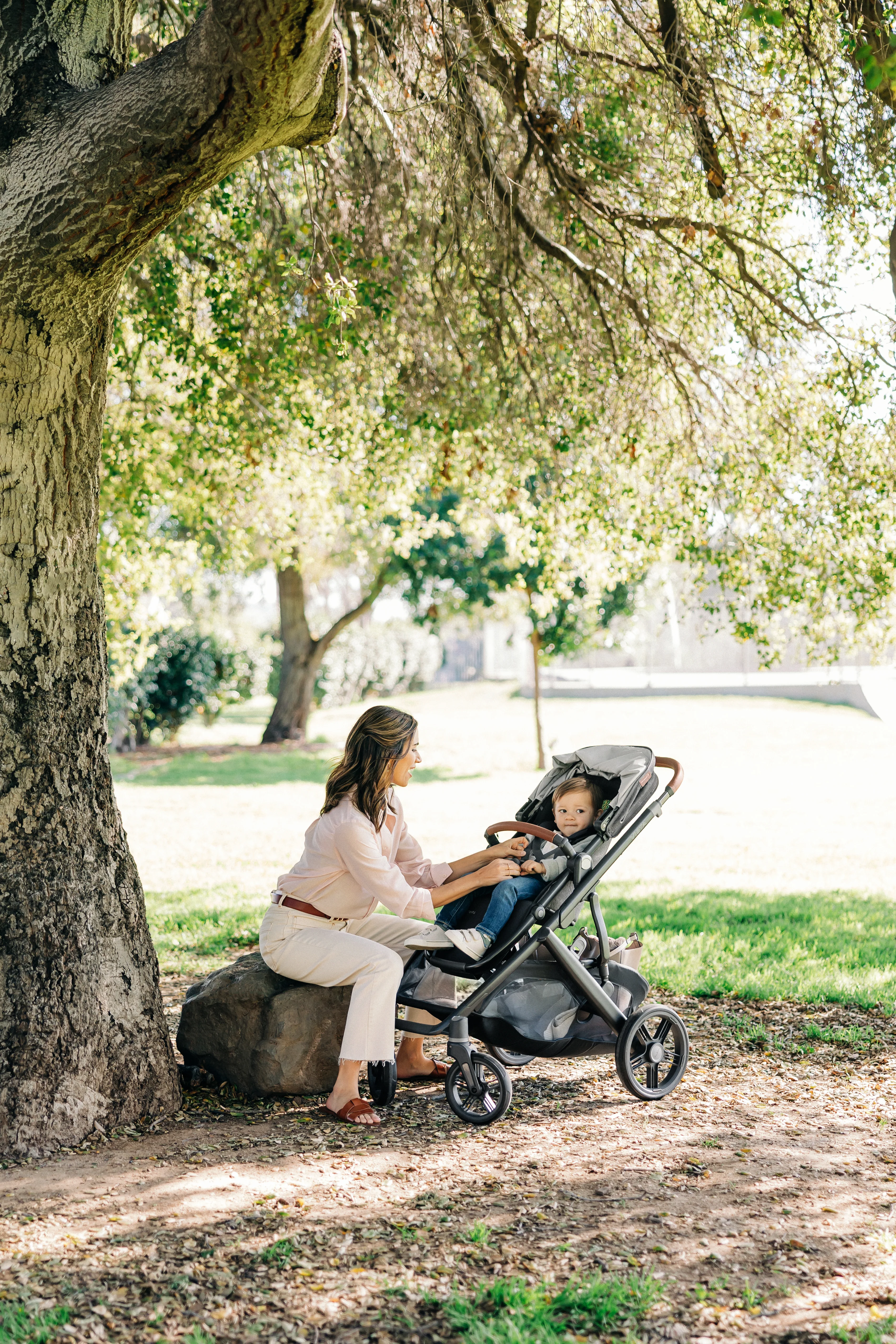 • Never flat tires and enhanced dual-spring FlexRide Suspension allow for a smooth stroll no matter the terrain.
