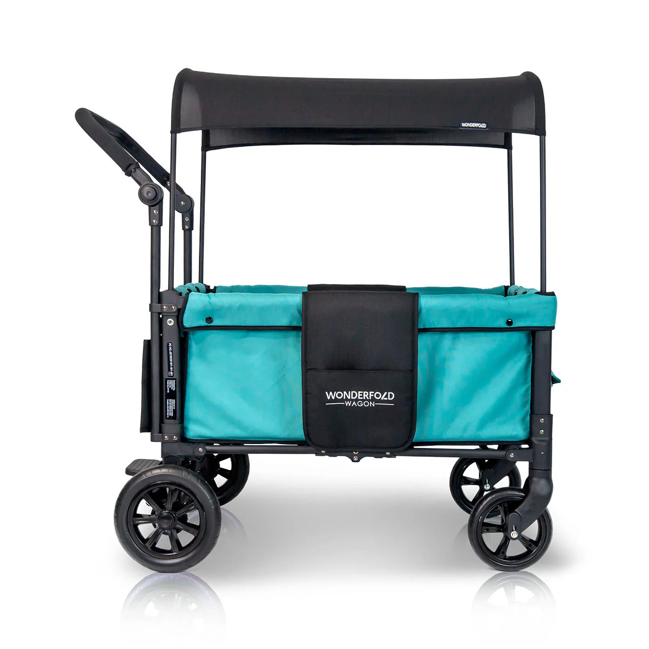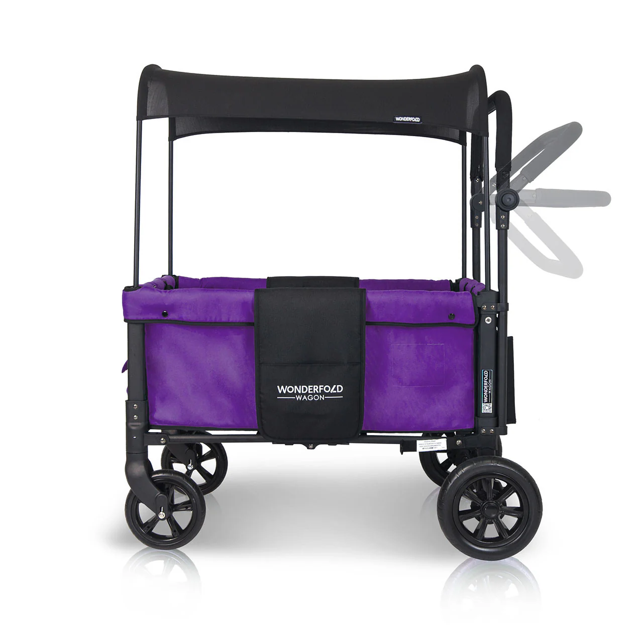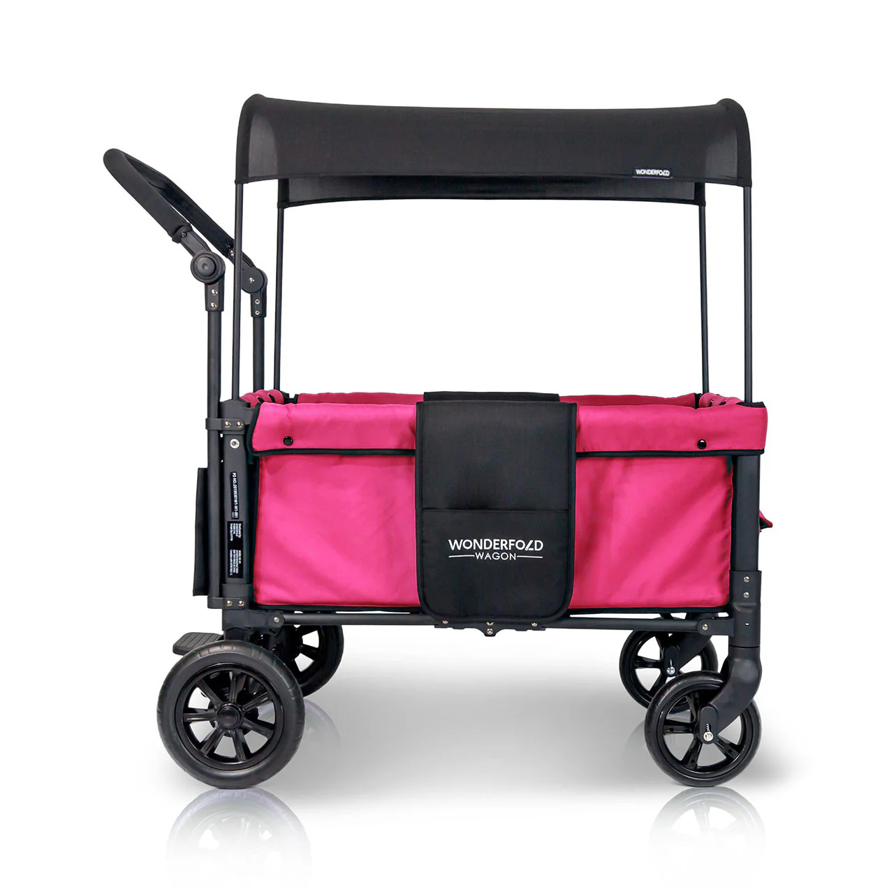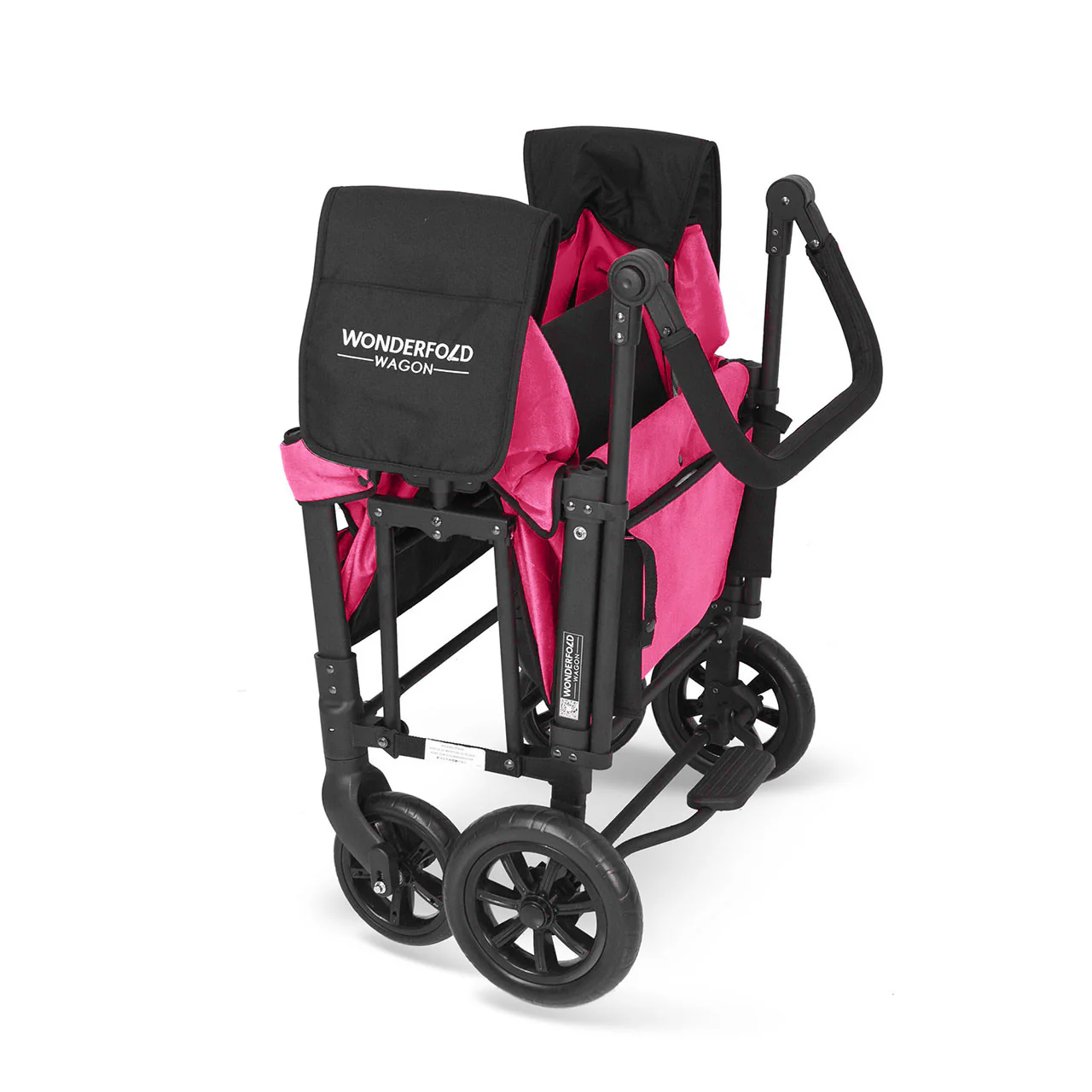 The convenient WonderFold Wagon W1 Double Stroller Wagon has facing seats with built-in seat belts, adjustable handlebar for easy maneuverability, plus a sliding canopy for varied coverage. Folds for storage and can double as a utility wagon.
