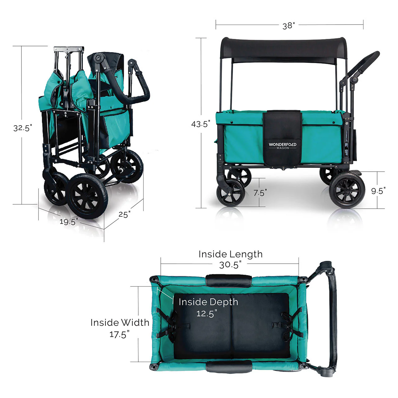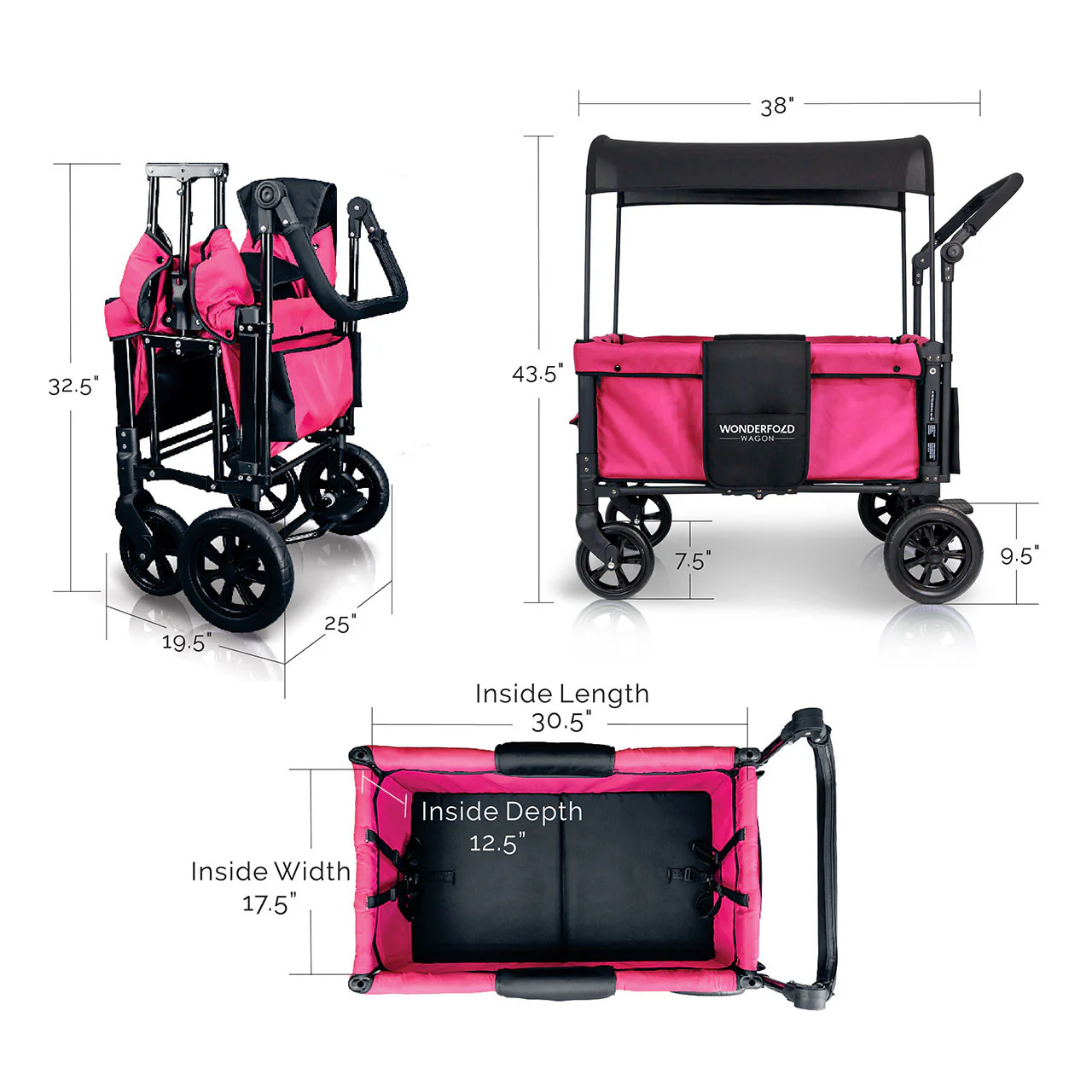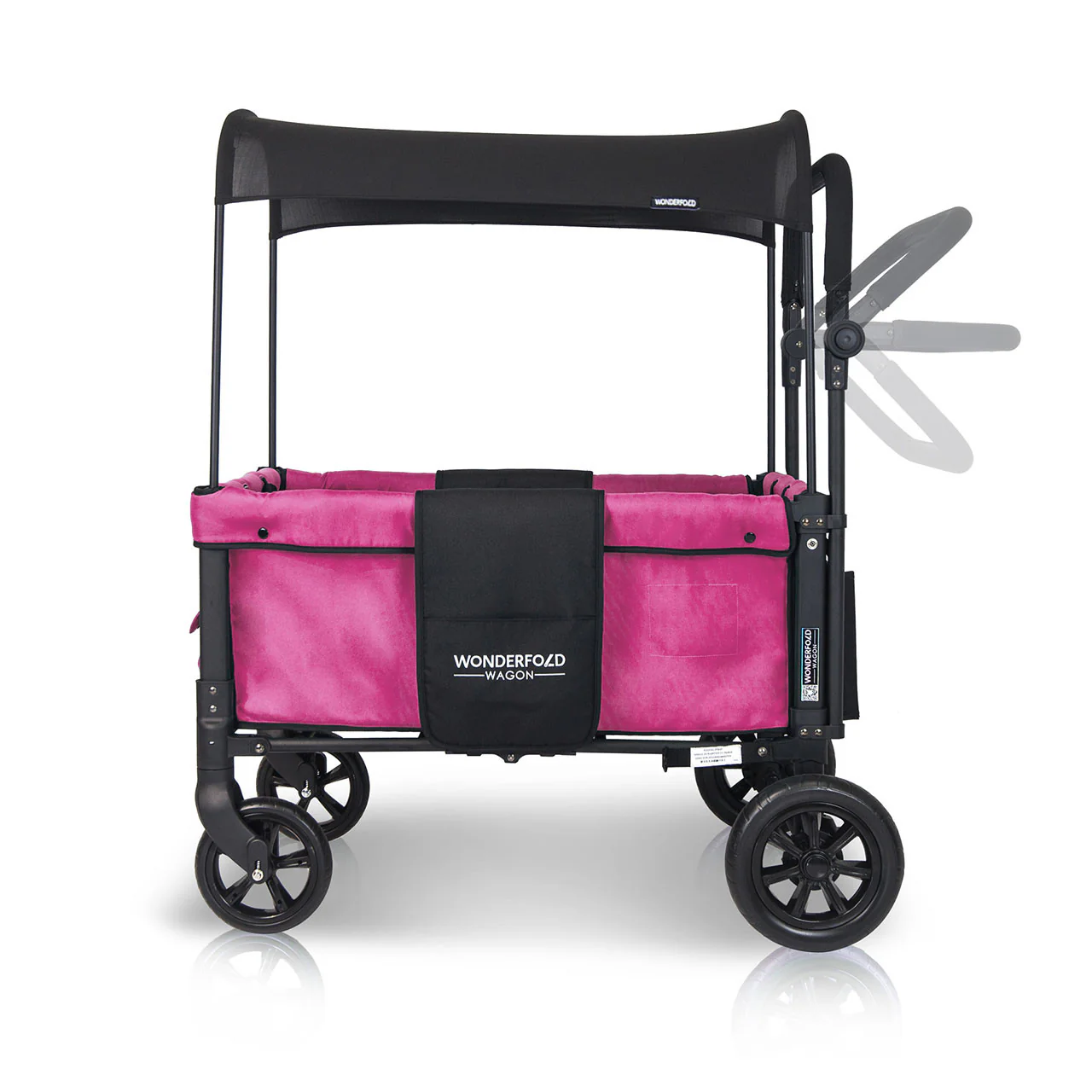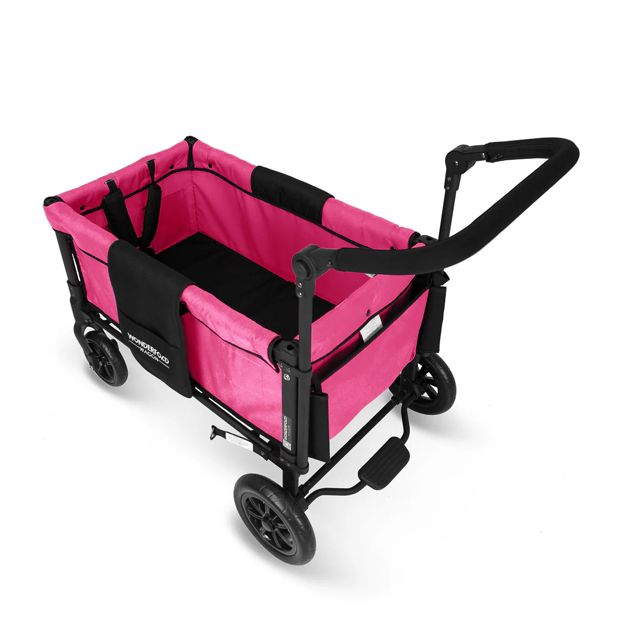 The convenient WonderFold Wagon W1 Double Stroller Wagon has facing seats with built-in seat belts, adjustable handlebar for easy maneuverability, plus a sliding canopy for varied coverage. Folds for storage and can double as a utility wagon.