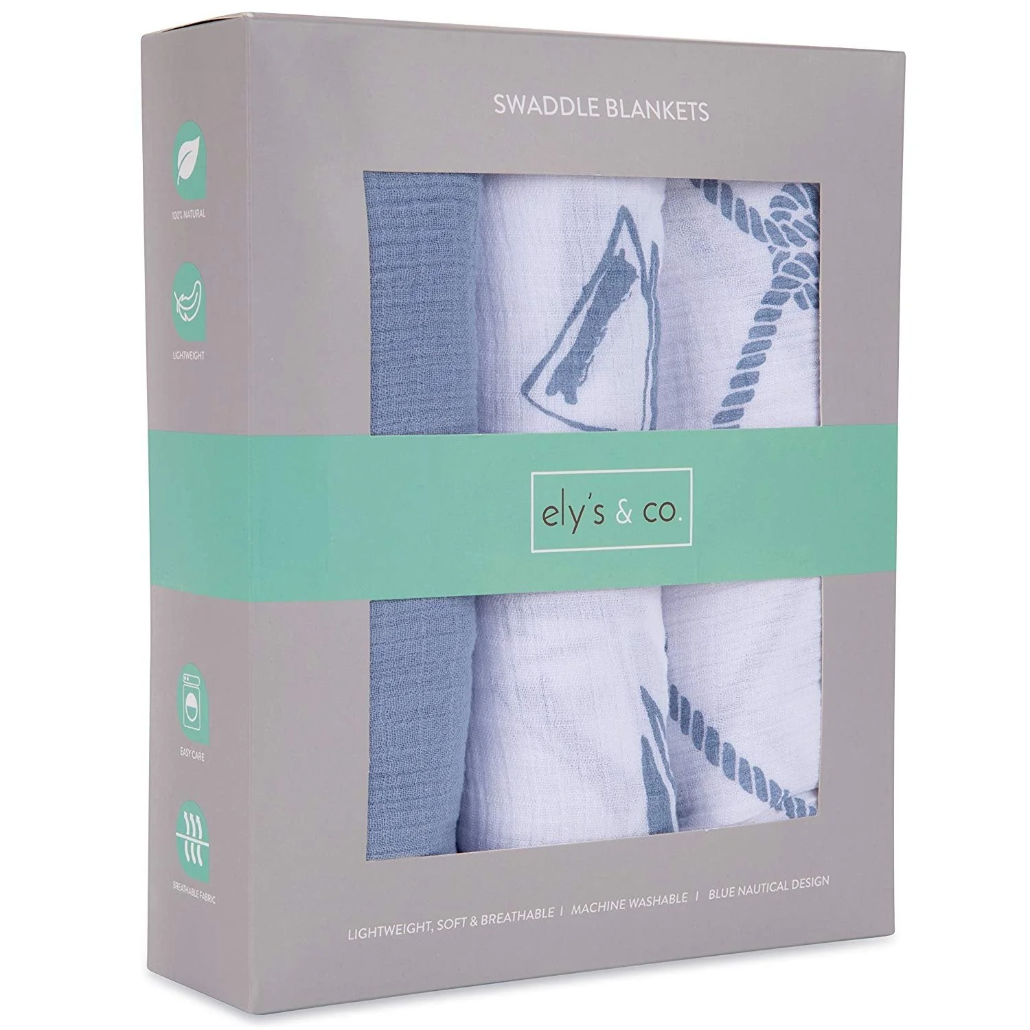 - Includes: 3 pre-washed 47" x 47" (120cm x 120cm) 100% cotton muslin swaddles with 3 Unique nautical designs