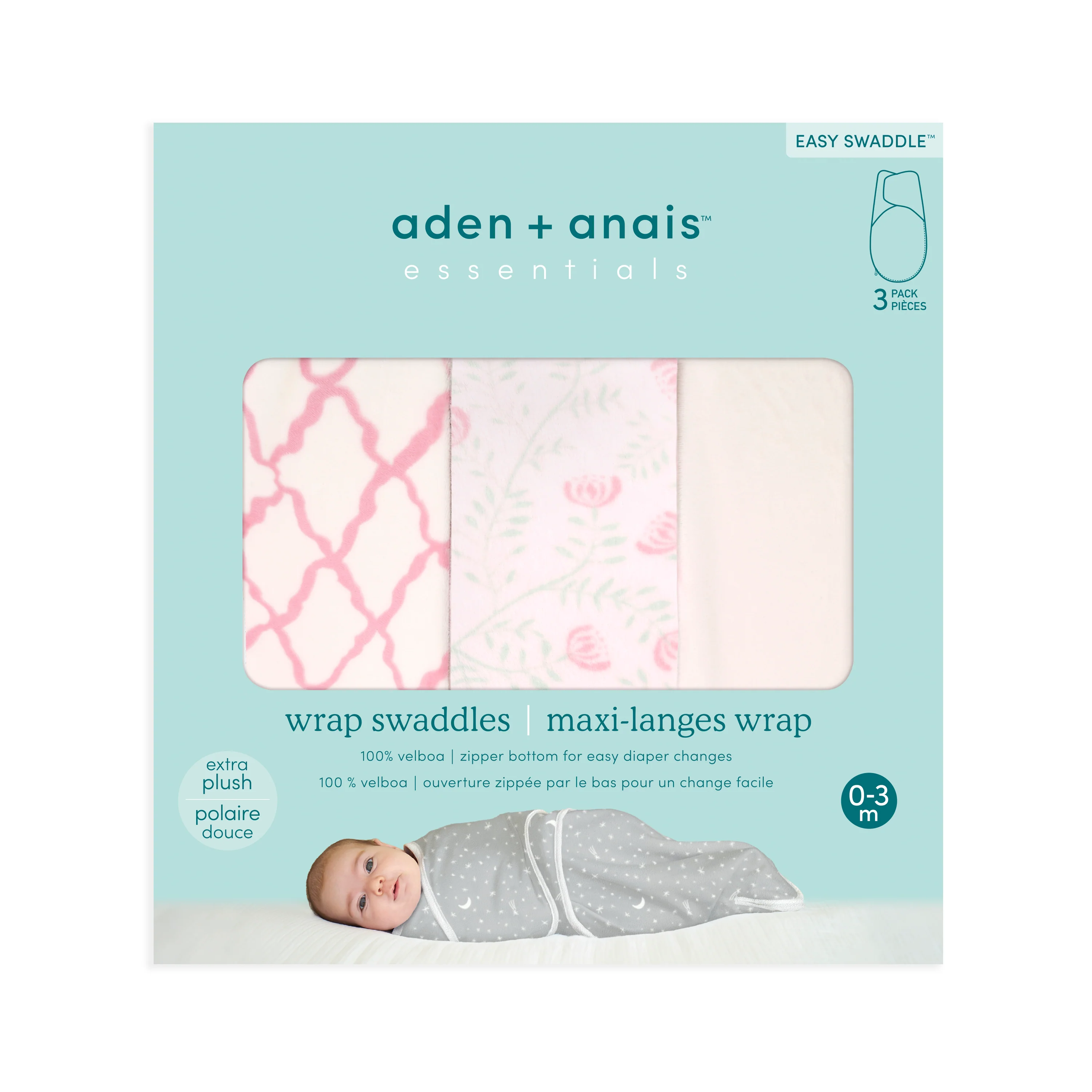 Keep your baby snug in these aden + anais essentials Easy Wrap Swaddle Wraps. Made of cotton, they adjust with your growing baby thanks to their hook and loop closures and their zip bottom seams let you change diapers without unwrapping your baby.