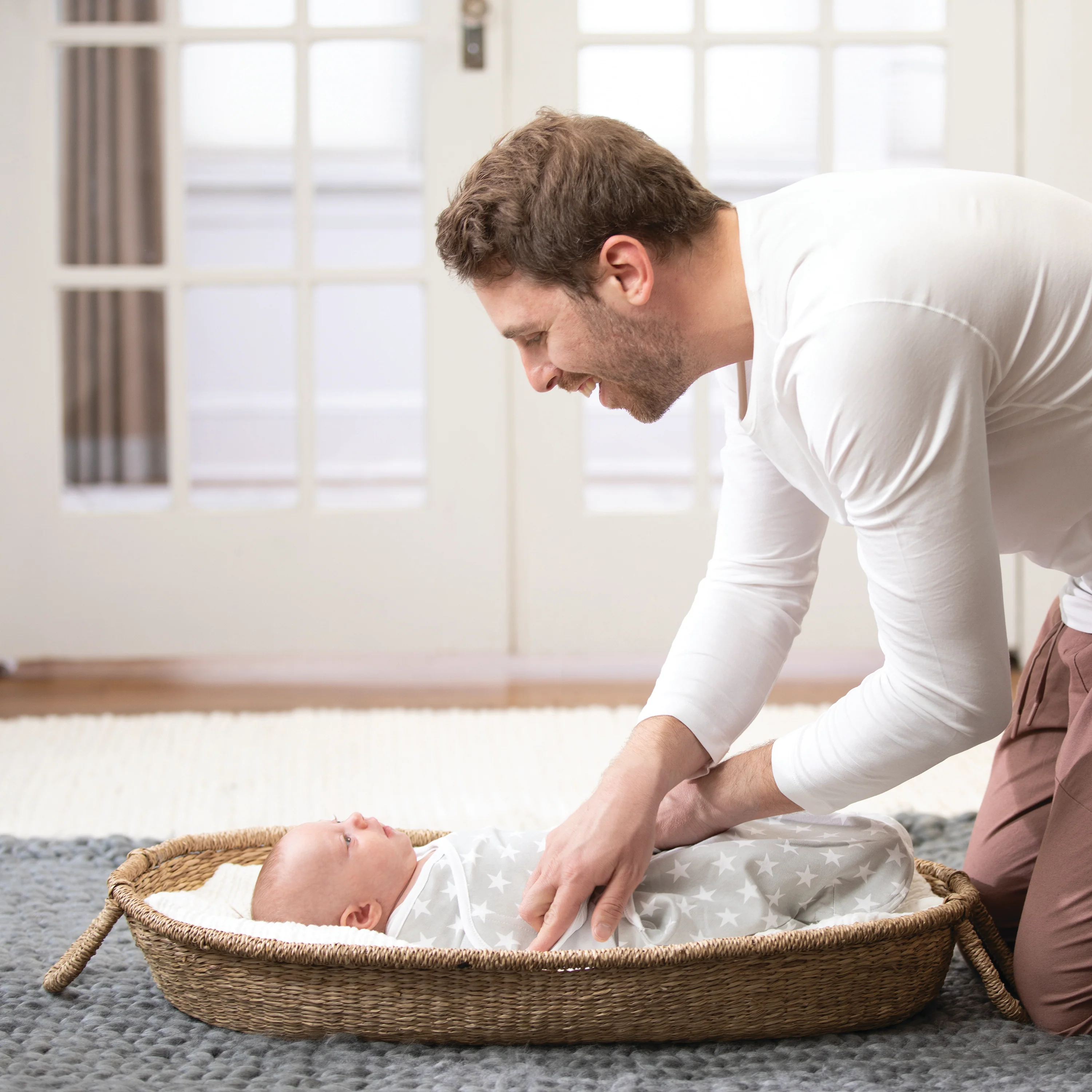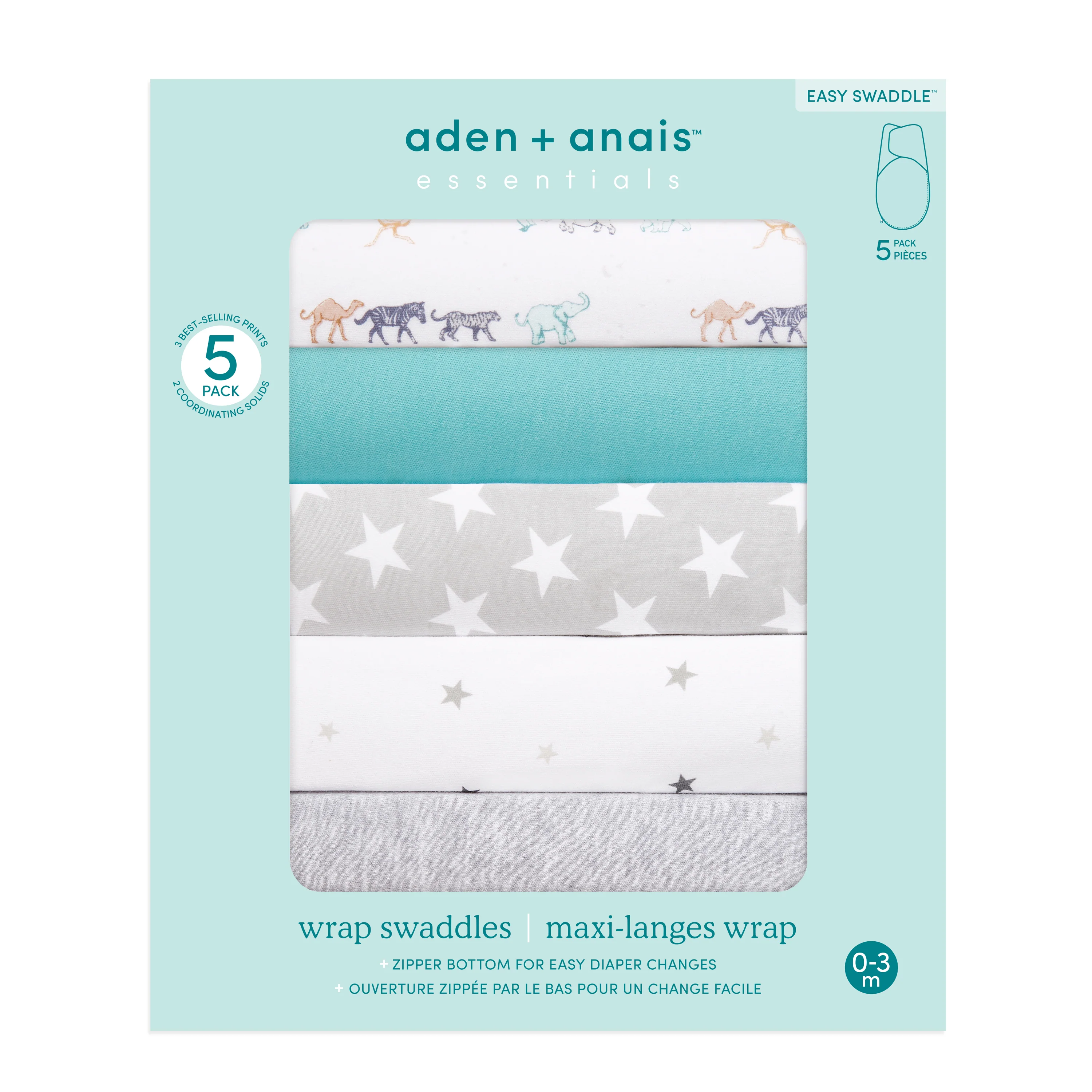 Keep your baby snug in these aden + anais essentials Easy Wrap Swaddle Wraps. Made of cotton, they adjust with your growing baby thanks to their hook and loop closures, and their zip bottom seams let you change diapers without unwrapping your baby.