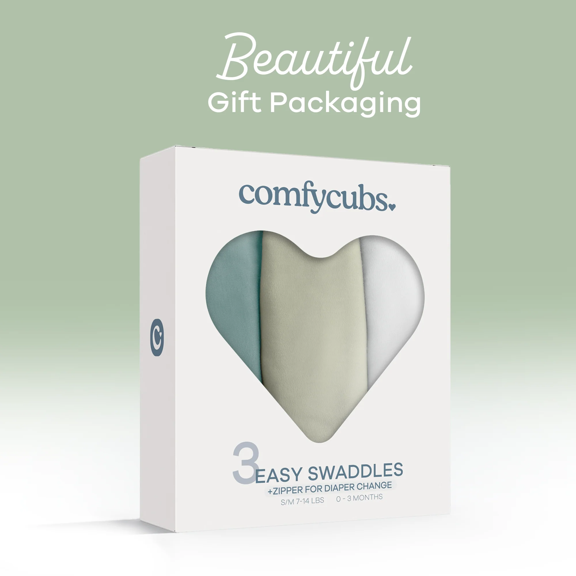 Comfy Cubs Easy Swaddle Blankets with Zipper - Stone, Sage, Azul