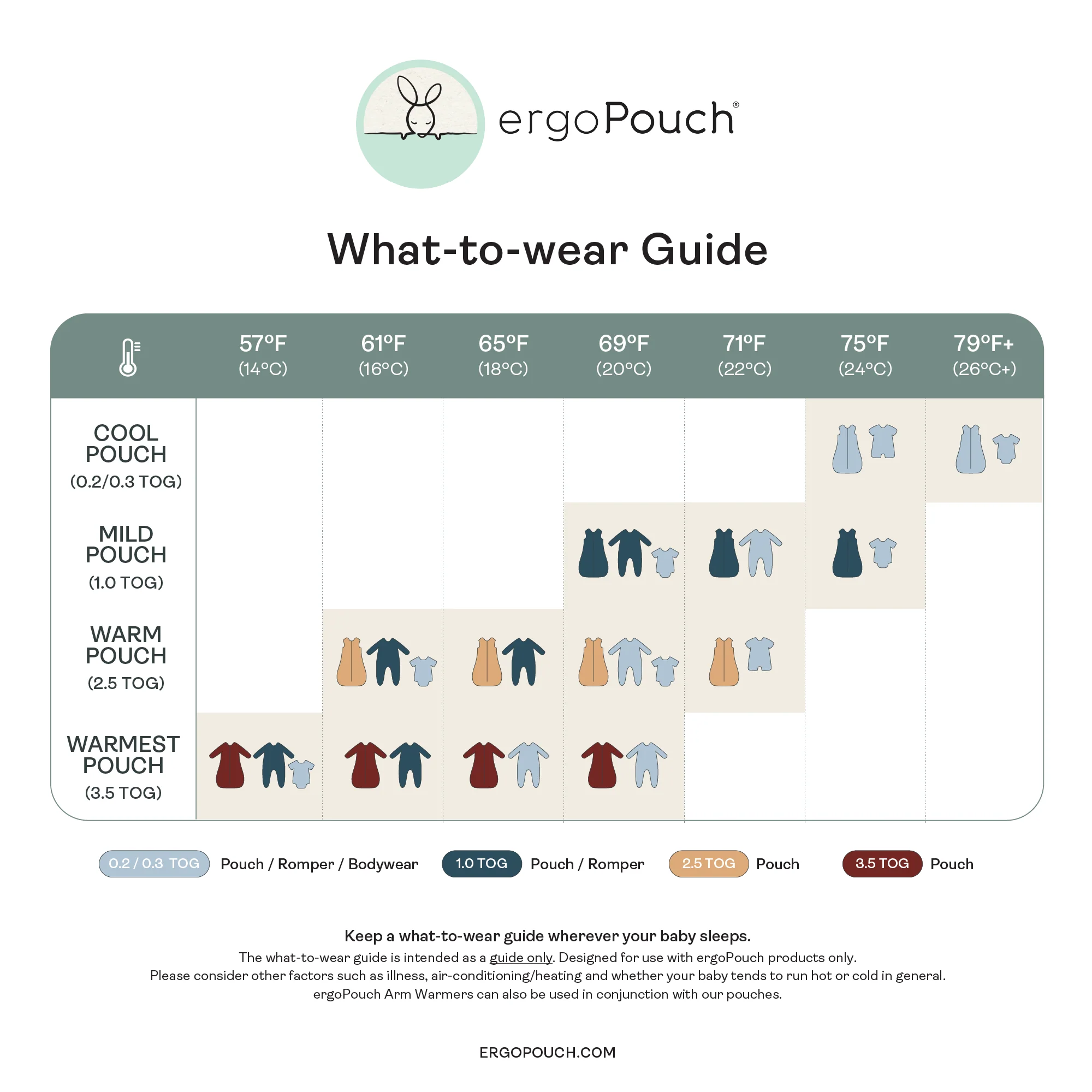 The 1.0 TOG Jersey Sleeping Bag has sleeves for extra warmth, making it the perfect year-round bag for keeping a child warm overnight. Suitable for room temperatures of 21-24 degrees Celsius / 70-75 degrees Fahrenheit. The TOG rating means that there is no need for additional blankets in the cot when using this product, making it a safe-sleep option. Parents can be rest assured that the breathable organic and natural fibers will help regulate their child's temperature and prevent overheating. Parents can follow the FREE room thermometer and What to Wear guide provided with the product, to layer appropriately underneath to keep their child warm. We recommend pairing this pouch with one of our TOG-rated Layers or Bodywear underneath.