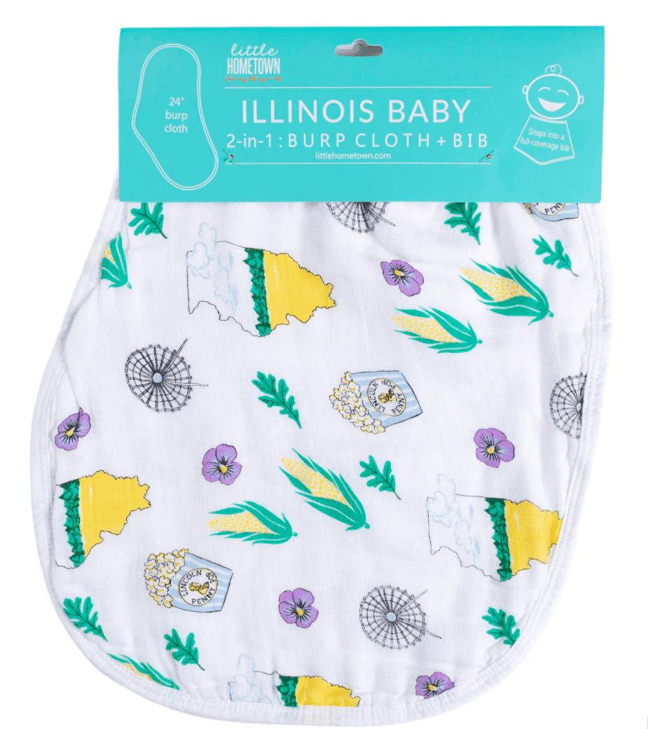 - Perfect transitional item. It can be used as a burp cloth in the early months, and then it snaps to convert into a full coverage bib once solid foods are introduced.