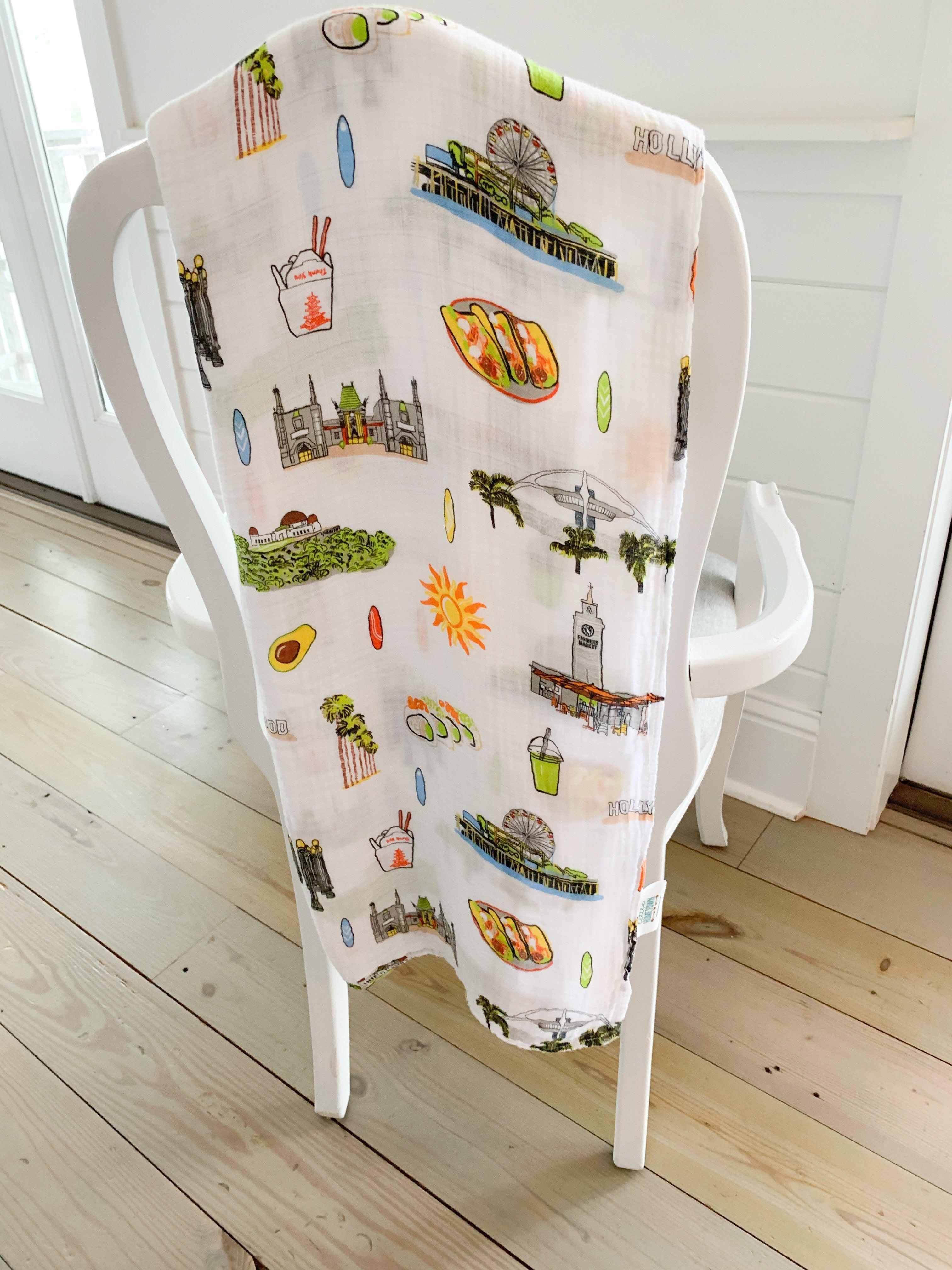 Save 10% when you order the beautiful Los Angeles Swaddle and Burp Cloth/Bib together as a gift set!