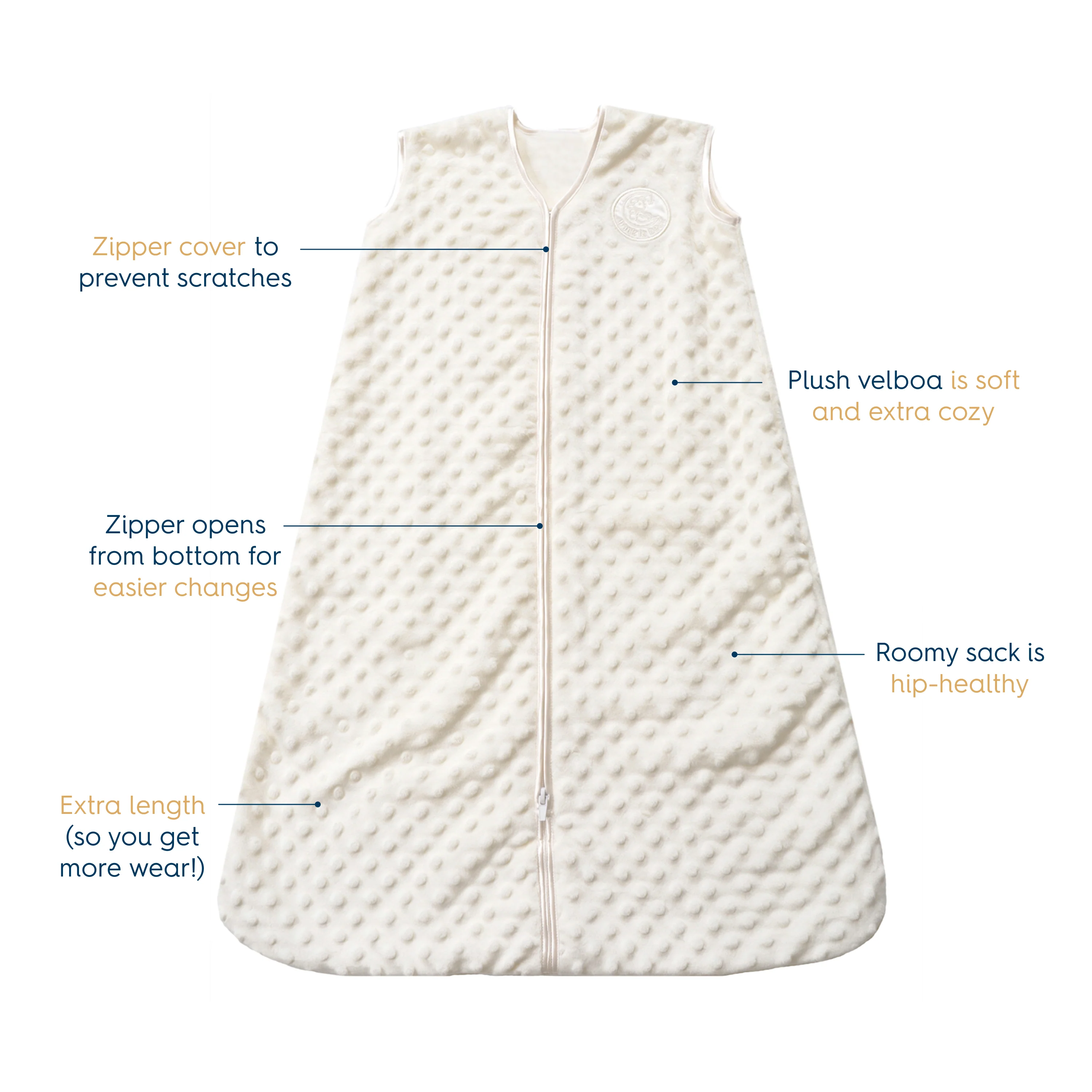 Replace loose blankets in your baby's crib with the comfort of the HALO SleepSack Wearable Blanket. This cozy wearable blanket cannot be kicked off throughout the night but can easily be unzipped by mom or dad for late night diaper changes. Product Care: Turn inside out and close zipper before laundering. Machine wash warm with like colors on gentle cycle. Tumble dry low. Do not bleach, iron or dry clean