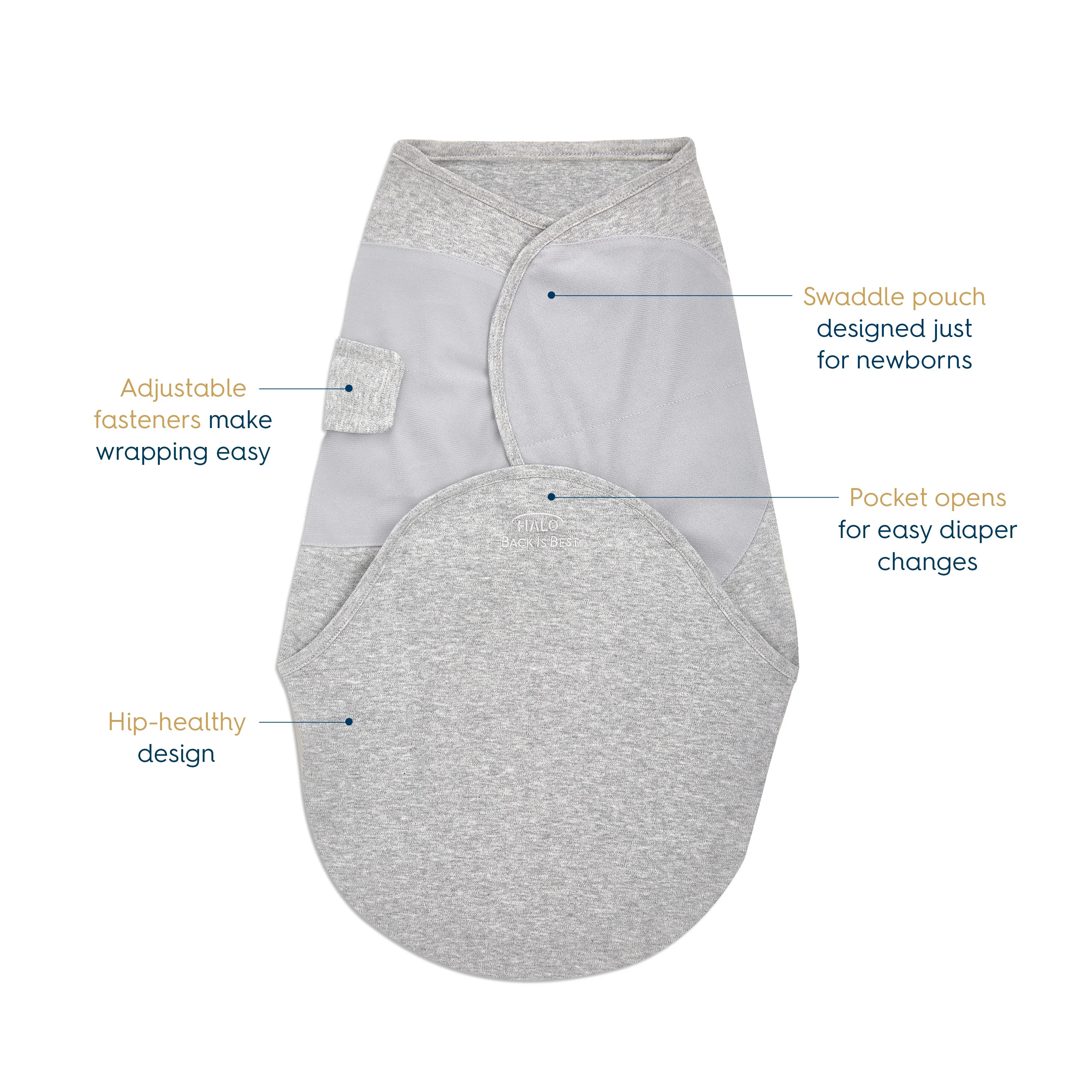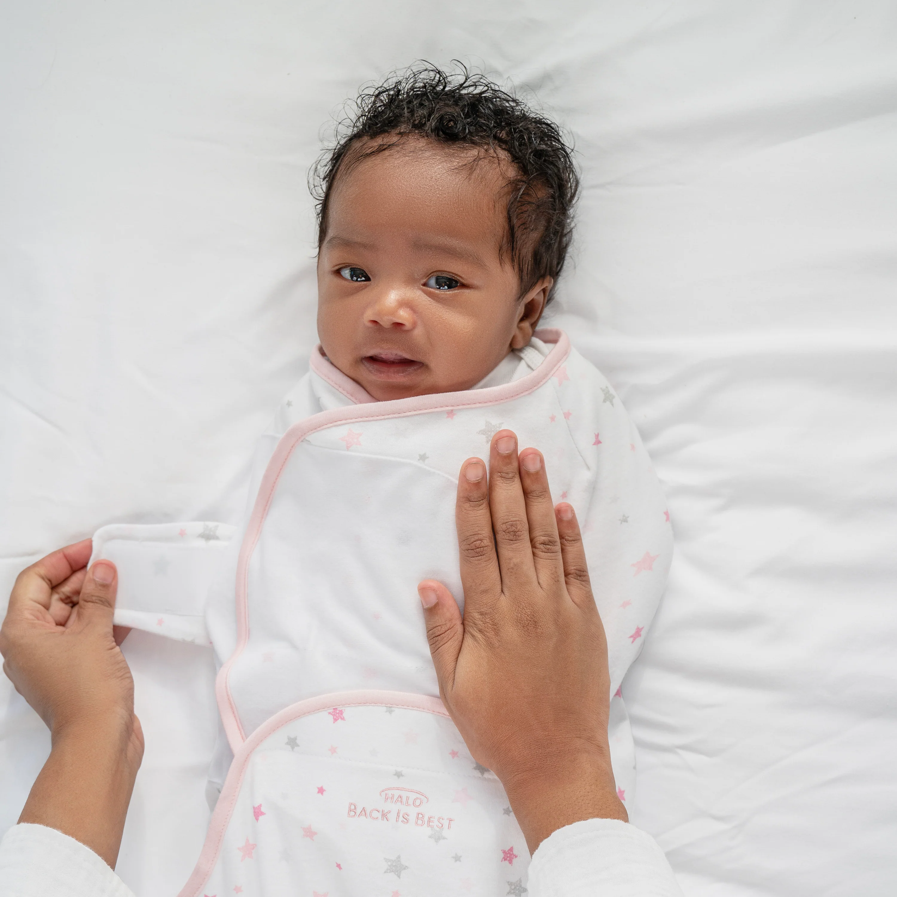 Help your baby sleep better (and longer!) from day one. HALO Swaddle Sure is designed just for newborns and offers cozy compression, just like the womb. The snug baby swaddle pouch design helps to prevent the startle reflex, so they can sleep soundly. Like all HALO products, Swaddle Sure is designed for safe sleep and keeps them warm without loose blankets. Swaddle Sure's hook and loop fasteners make it easy to wrap your baby snuggly in an arms-in position. (Bonus: they also accommodate your newborn's rapid growth!) The bottom pouch pocket opens for easy changes without unswaddling. Endorsed by the International Hip Dysplasia Institute as promoting healthy hip development.