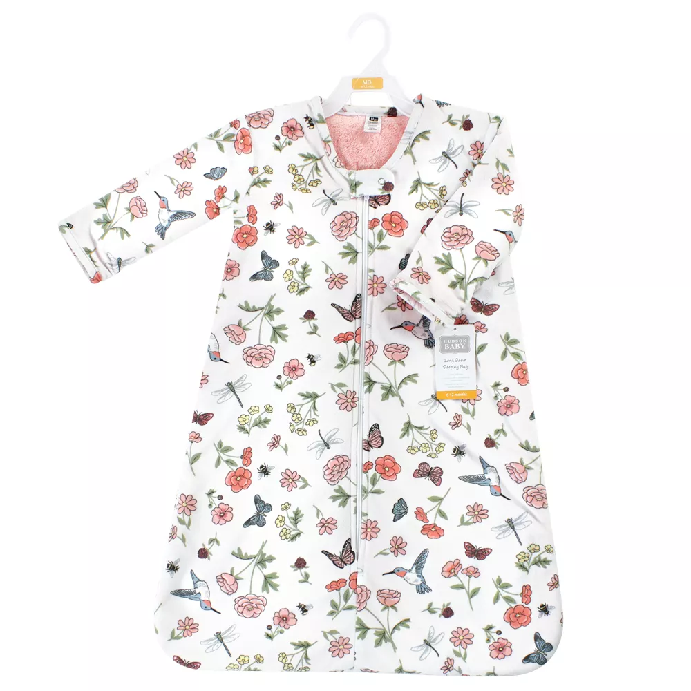 Hudson Baby Long Sleeve Plush Faux Fur Wearable Blanket, Hummingbird Garden