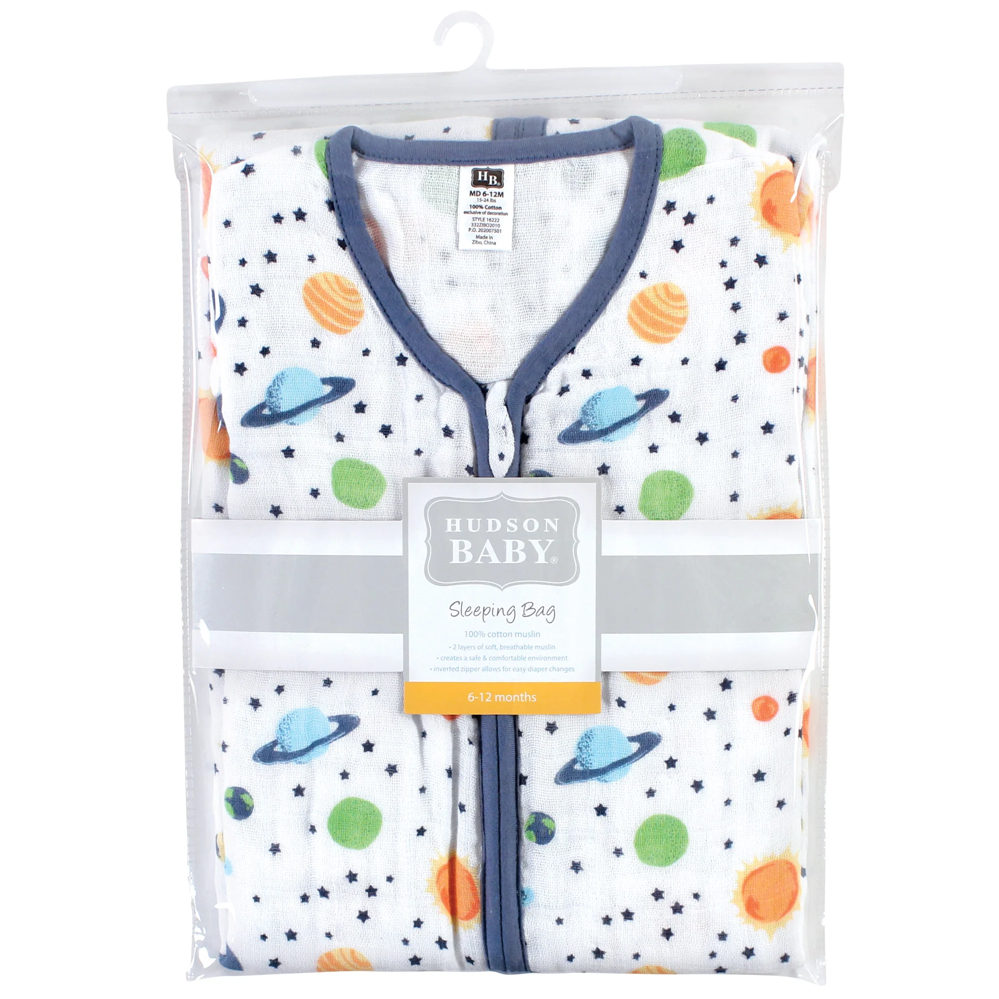 The Hudson Baby Space Wearable Blanket provides out-of-this-world comfort for your tot. This sleeping bag-style blanket features a sleeveless design with two layers of sumptuous muslin cotton to keep baby cozy and content on warm and cold nights.