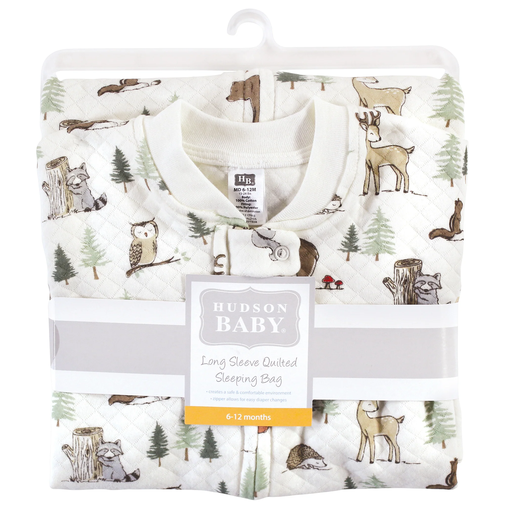 Hudson Baby premium quilted cotton sleeping bag and wearable blanket is the perfect safe sleep blanket for your little one to have a warm, cozy, comfortable and safe night of sleep. Our quilted fabric is made of soft, delightful cotton with polyester filling. Our wearable blanket is designed long-sleeve because it is made with a light cotton material, providing the perfect balance of keeping baby warm while still keeping baby safe from overheating. Our zipper closure makes for easy on and off dressing, which is especially convenient for nighttime diaper changes. Our sleep sack will replace loose blankets in the crib and will keep your little one cozy, warm and secure throughout the night. Our sleep sacks, wearable blankets and sleeping bags are always intended to be worn over children's sleepwear.
