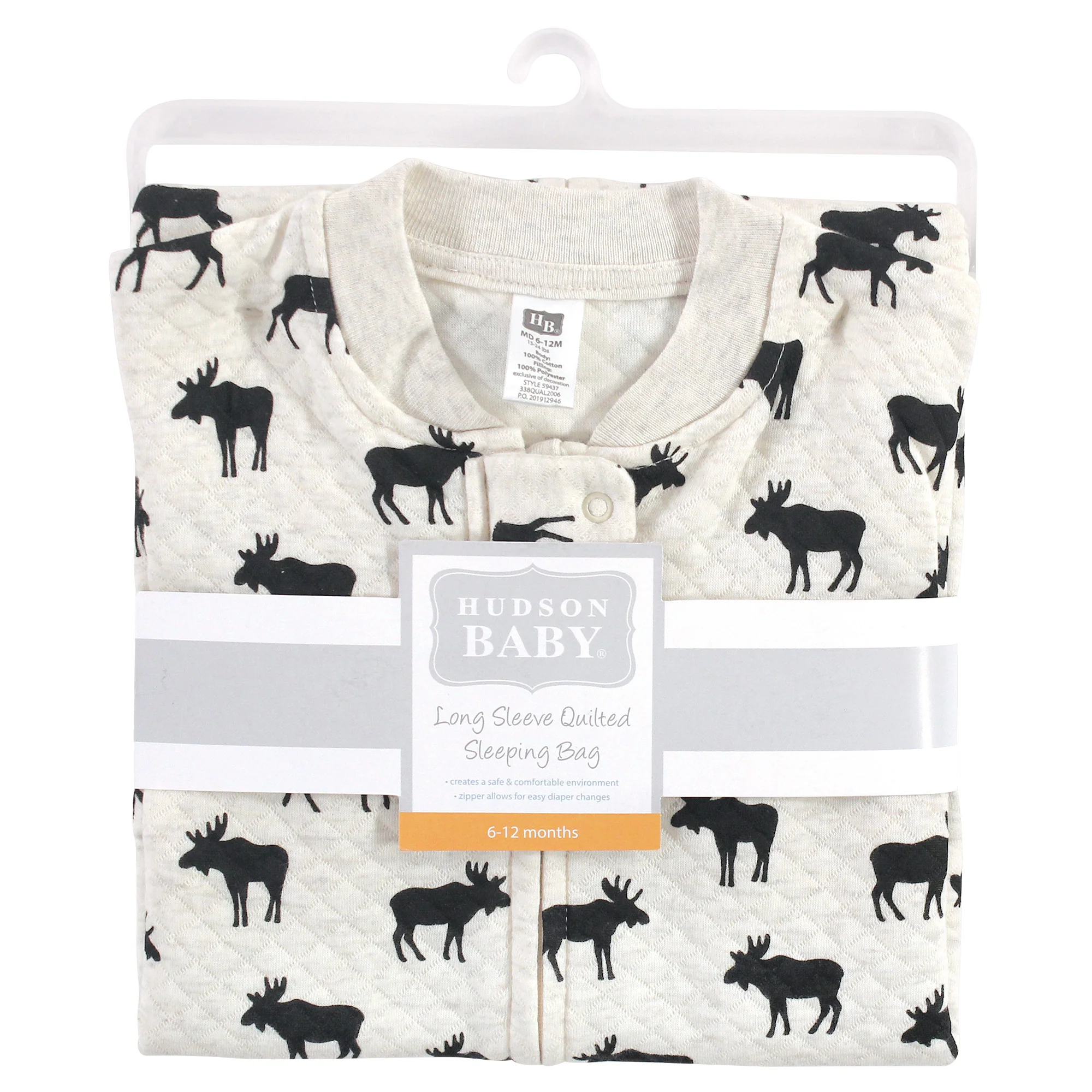 Provide your baby comfort and security with the Hudson Baby Moose Wearable Blanket. Crafted of lightweight cotton and designed with long sleeves to keep baby cozy while preventing overheating. Zip closures make on/off easy.