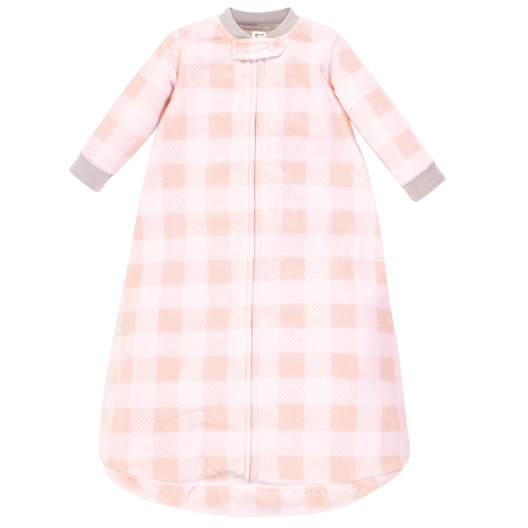 Hudson Baby Infant Girl Long-Sleeve Fleece Sleeping Bag, Gray Pink Snowflake, 0-9 Months