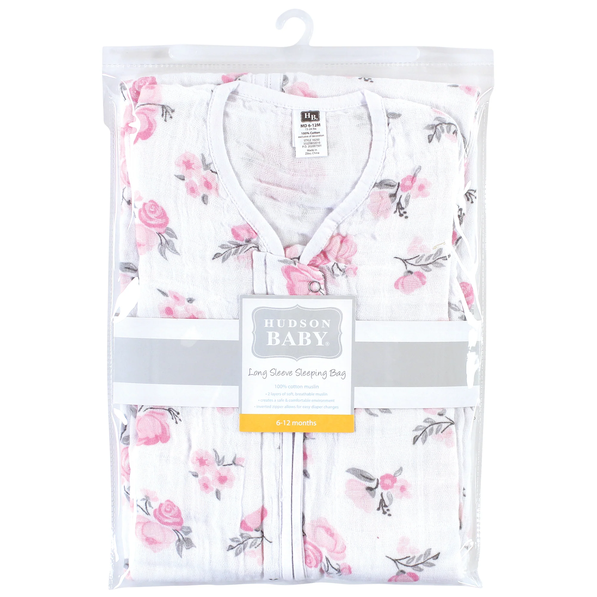 Hudson Baby Long Sleeve Muslin Wearable Blanket, Pink Floral