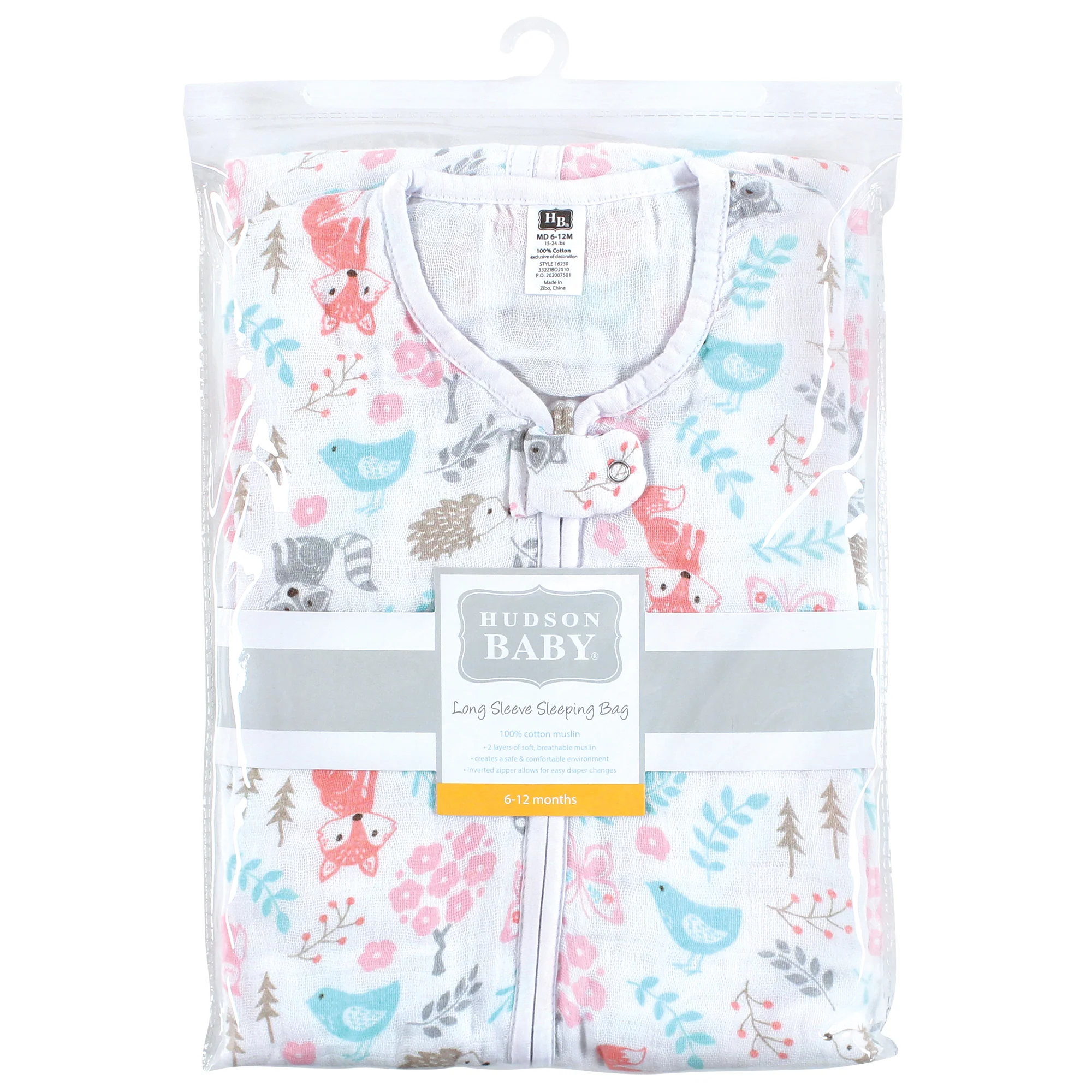 Hudson Baby muslin long-sleeve sleeping bag, wearable blanket, sleep sack is a great bedtime blanket for your little one. Made with 100% cotton, our wearable blanket will keep your little one feeling cozy, comfortable and secure through the night. Our long-sleeve, lightweight sleep sack is optimal for keeping your little one warm and comfortable but preventing overheating.
