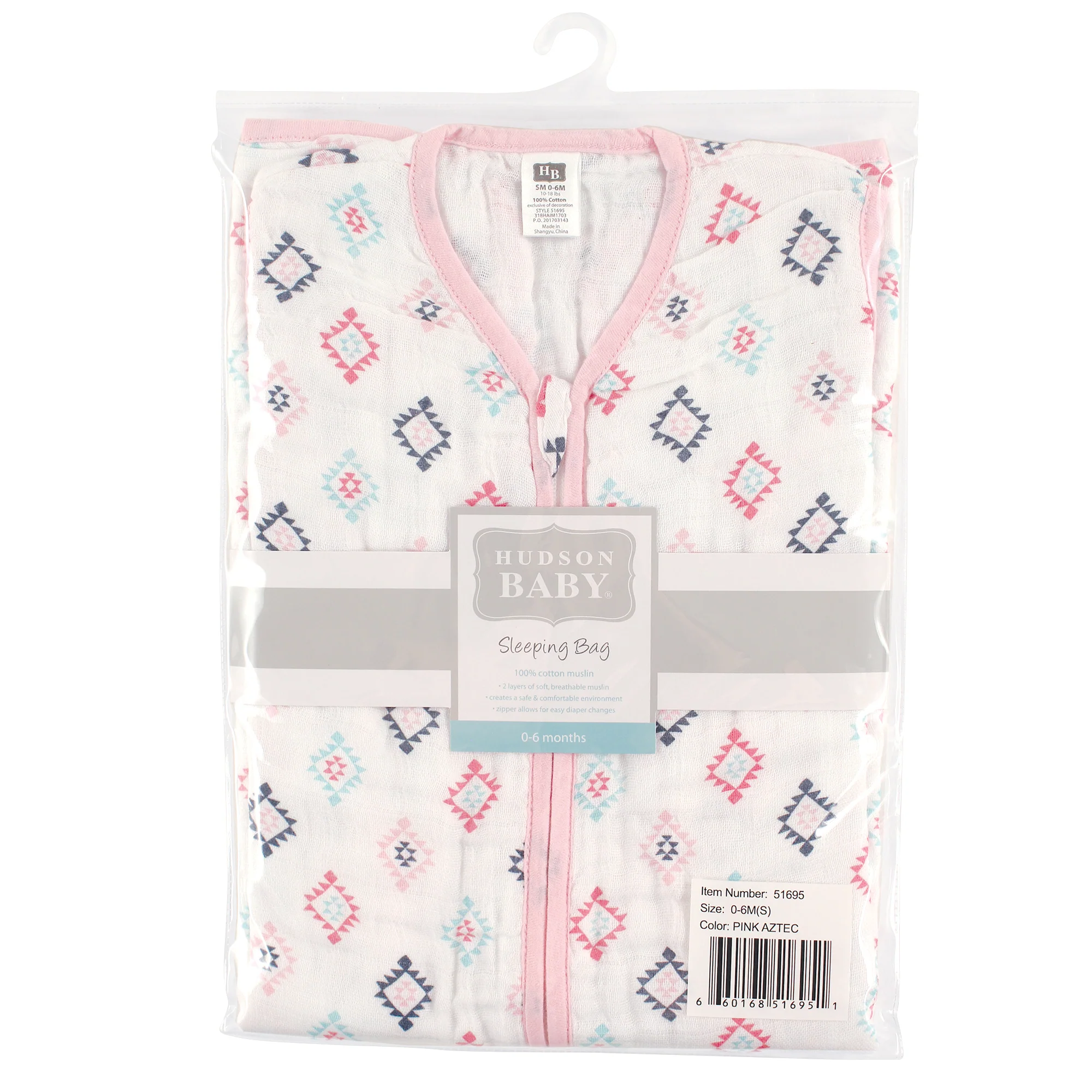 Hudson Baby Infant Girl Muslin Cotton Sleeveless Wearable Blanket, Pink Aztec