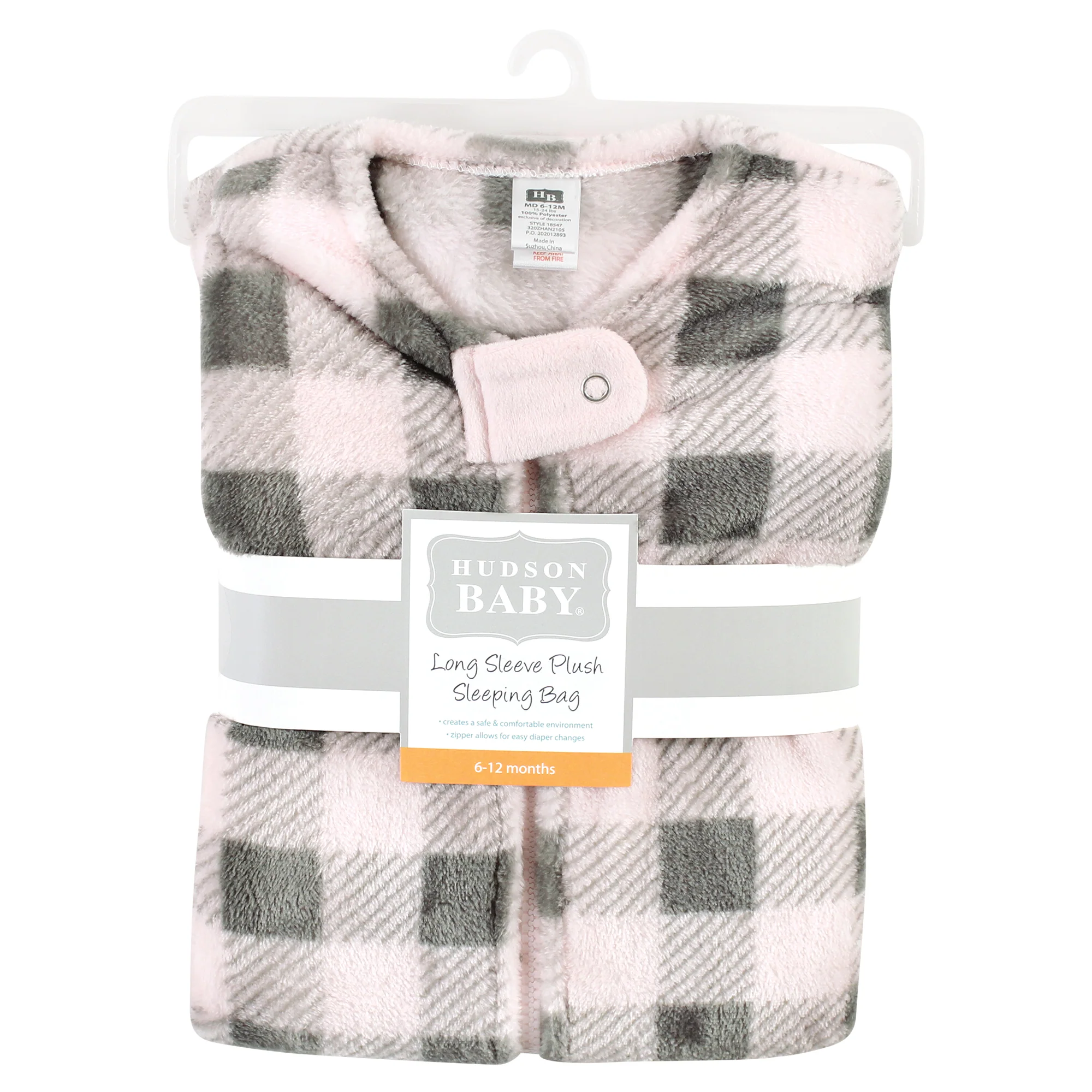 Hudson Baby Infant Girl Plush Long-Sleeve Sleeping Bag, Sack, Blanket, Pink Gray Plaid