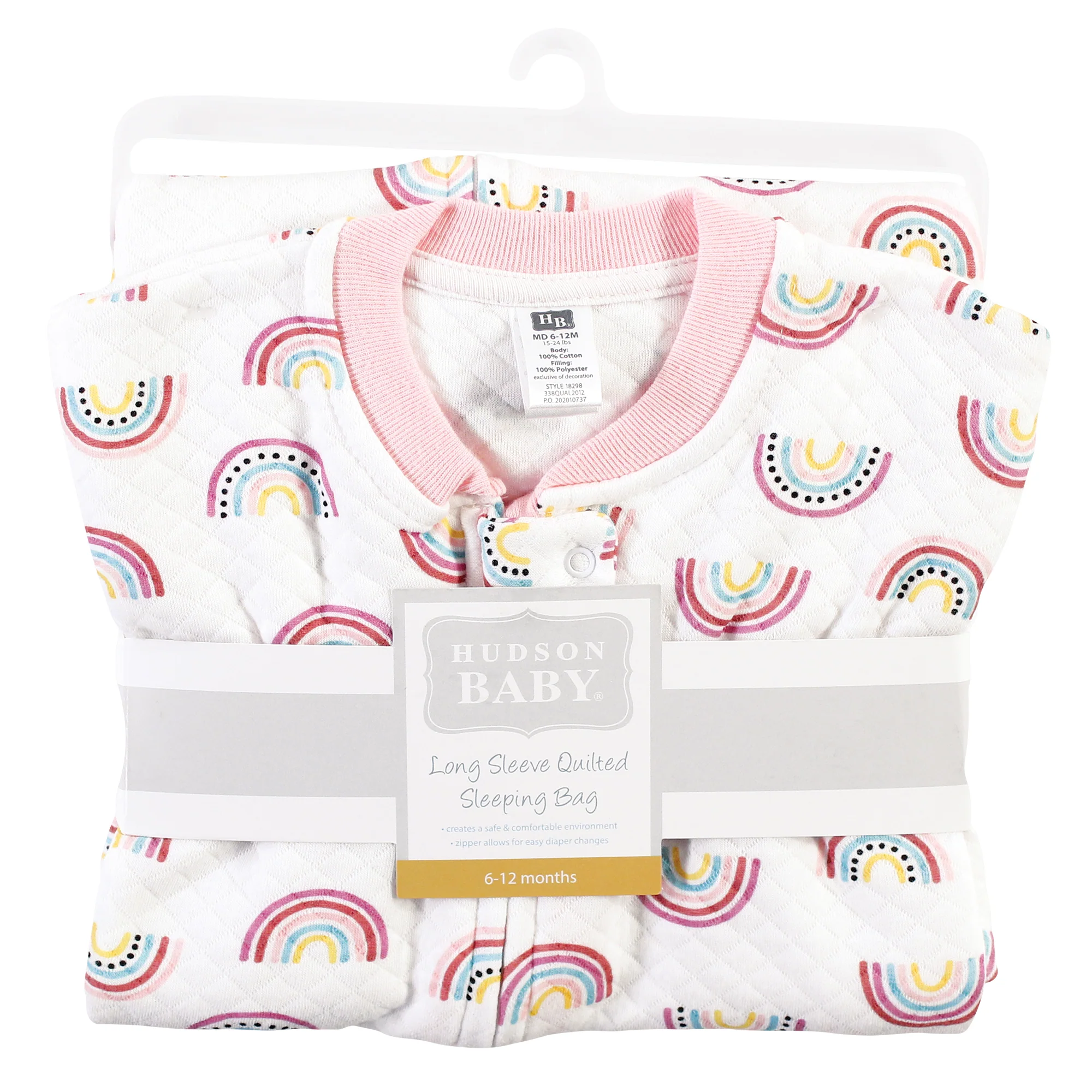 The Hudson Baby Rainbow Wearable Blanket offers colorful comfort for your tot. Lightweight blanket features a long sleeve design with an easy zipper closure for quick dressing and hassle-free diaper changes during your baby's daily routine.